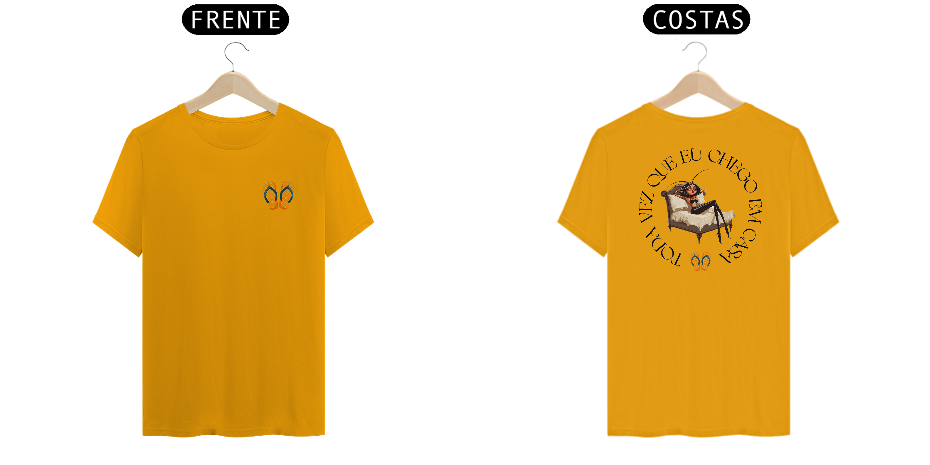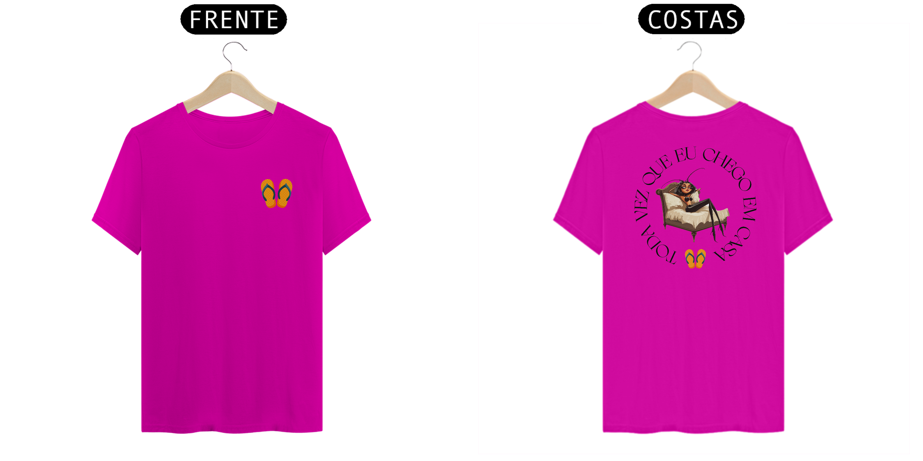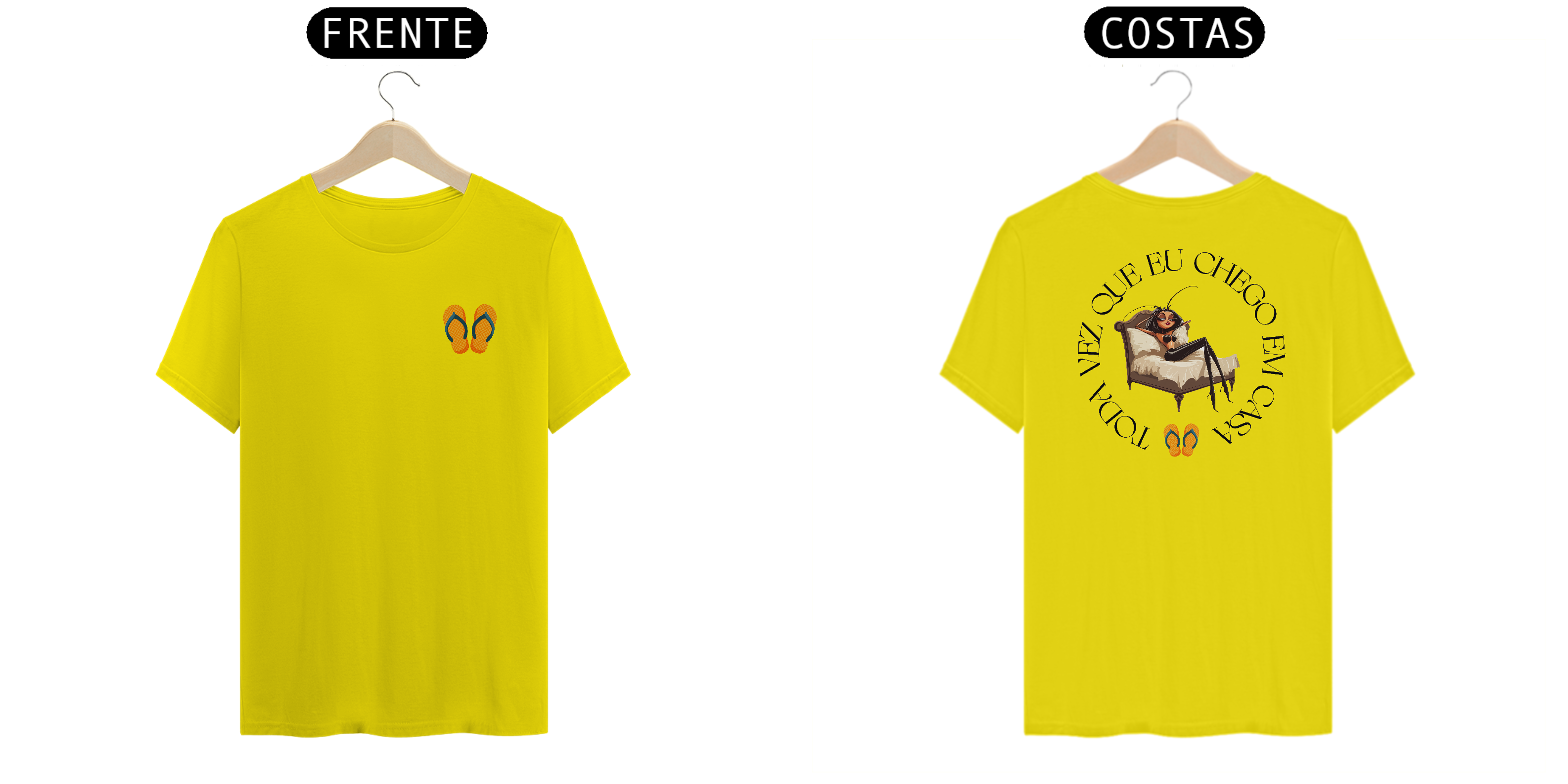 Com detalhes divertidos, como os chinelos estrategicamente posicionados, essa camiseta é a escolha perfeita para quem quer combinar nostalgia, estilo e bom humor neste verão.