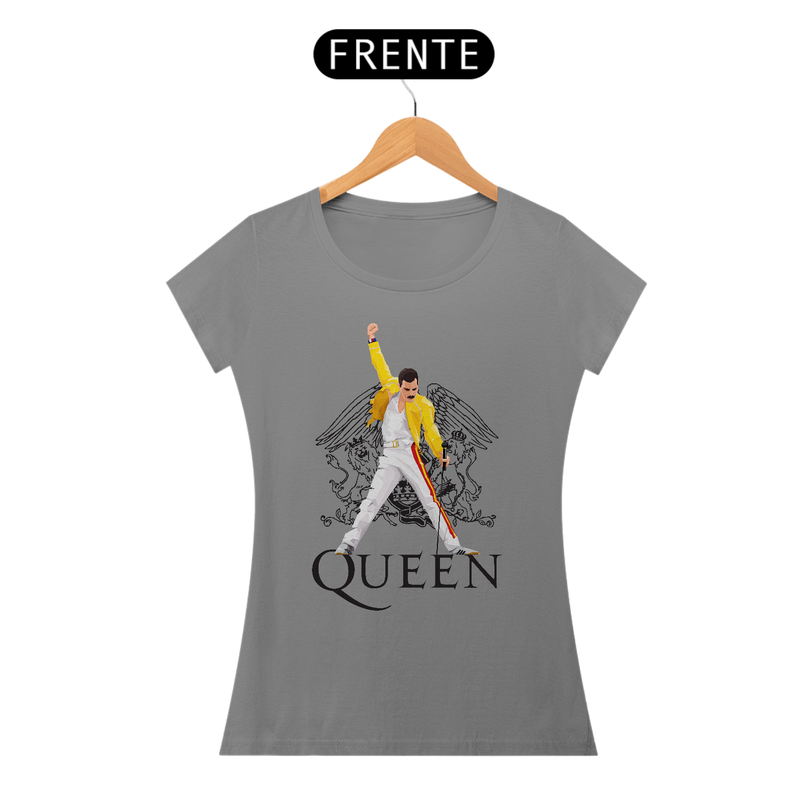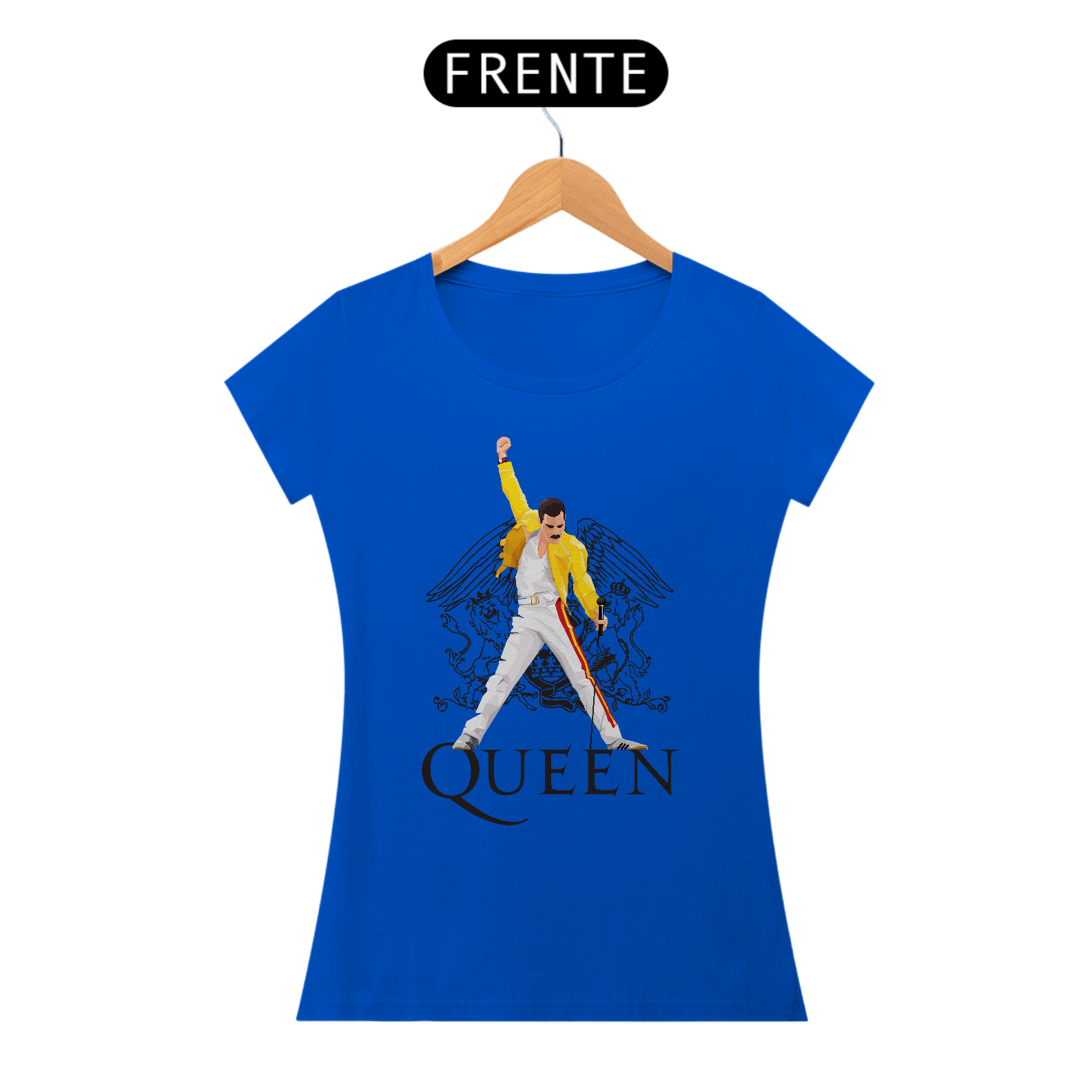 Vista a realeza do rock com nossa camisa feminina exclusiva da Queen! Conforto e estilo se unem para fãs que querem expressar sua paixão pela banda lendária. Celebre a música e o legado de Freddie Mercury em cada detalhe. Não perca a chance de ter um ícone do rock no seu guarda-roupa. Adquira a sua agora e brilhe intensamente!