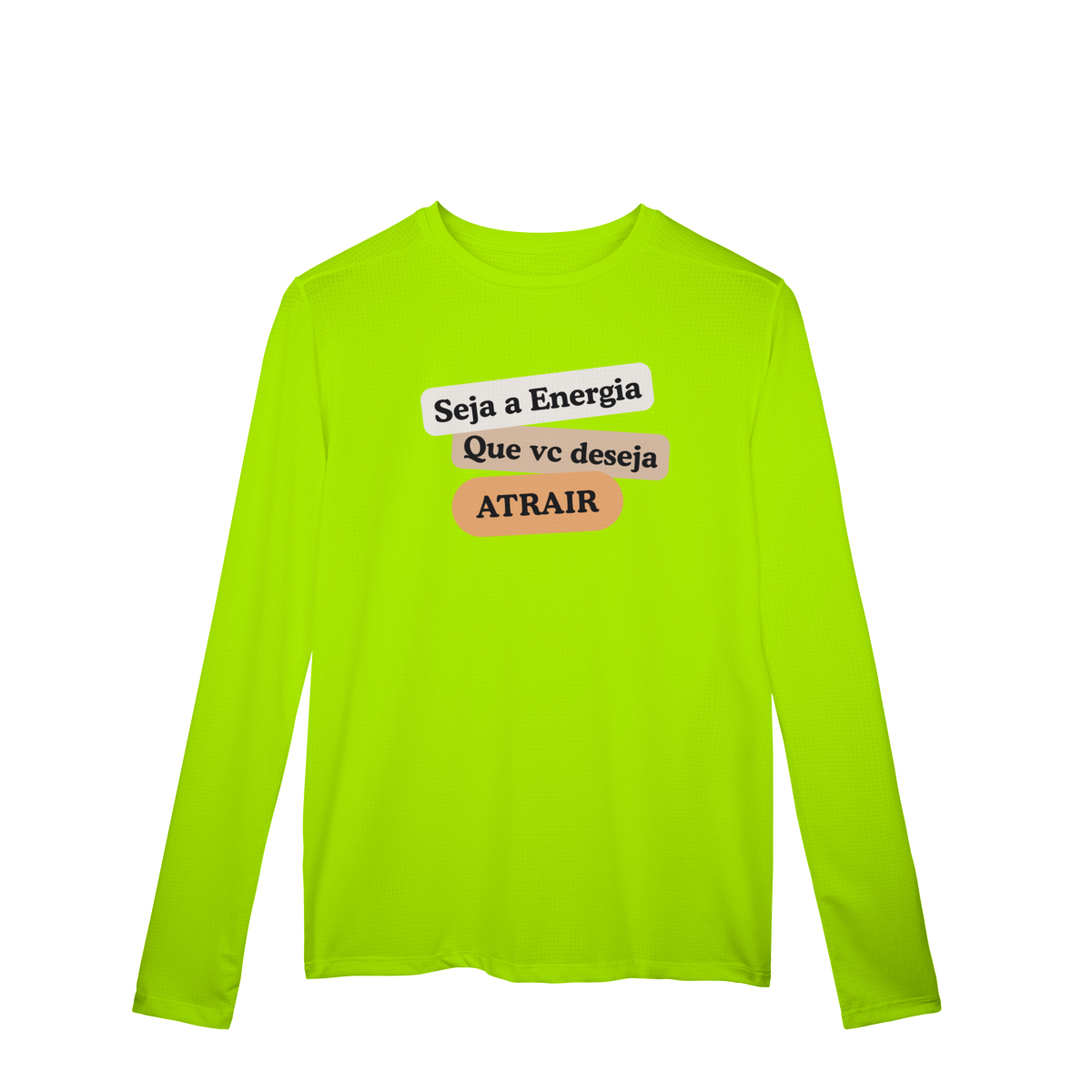 A camiseta Manga Longa Sport Dry UV “Seja Energia” é um convite para expressar sua energia de criação.