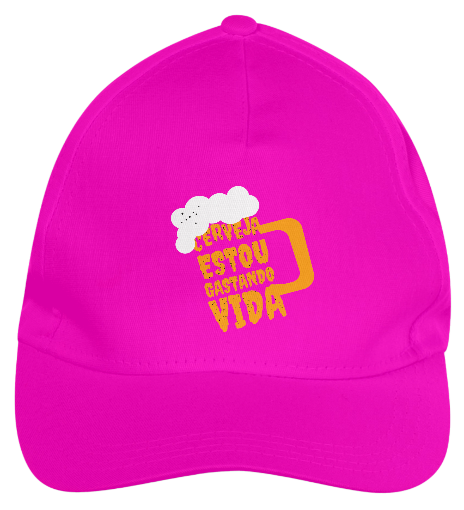 Boné americano com transfer frontal em alta qualidade, aba curva e fecho em tira totalmente regulável com pinos. O modelo veste tamanho "único".