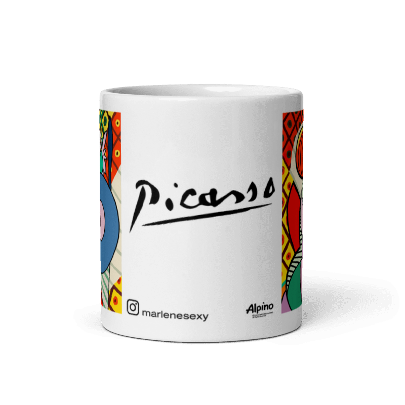 Imagine se a Marlene tivesse sido retratada pelo artista Pablo Picasso (1881-1973). Nosso estúdio tornou isso possível criando esta caneca com a técnica do famoso artista espanhol do Cubismo.