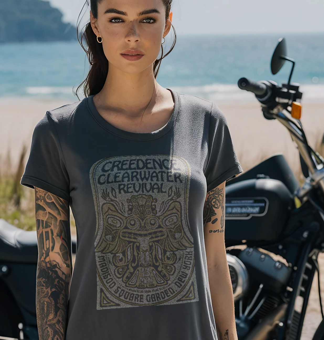 BABY-LONG ESTONADA CREEDENCE - Diferenças nas tonalidades das camisetas e estampas é normal, as referências das fotos não reproduzem necessariamente a fidelidade de cada estampa e cor do tecido da camiseta.