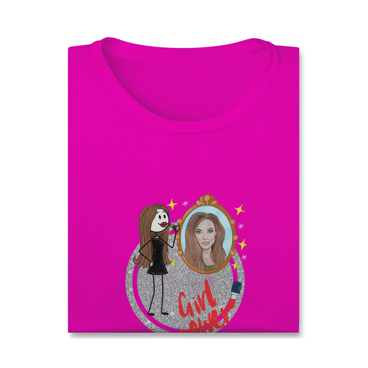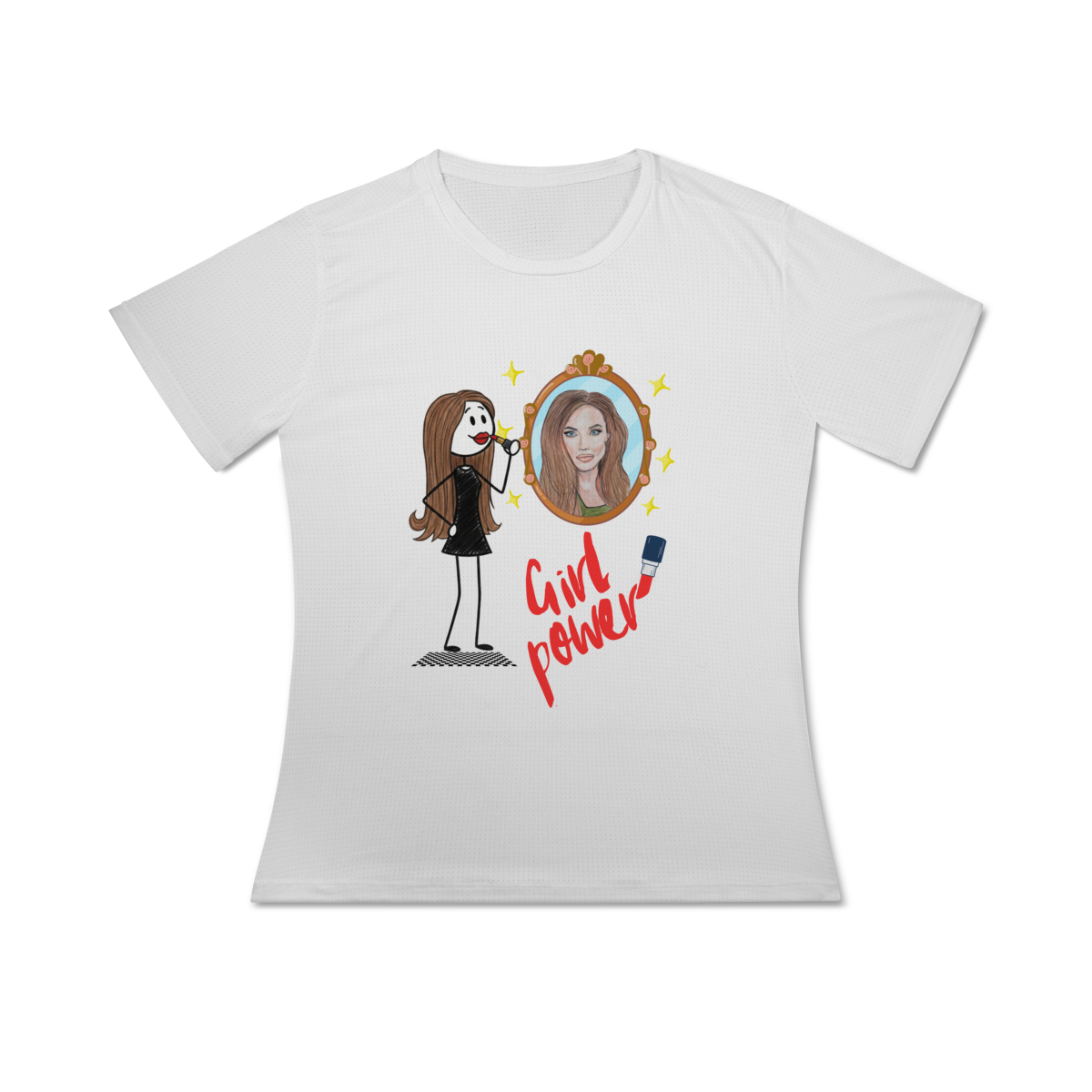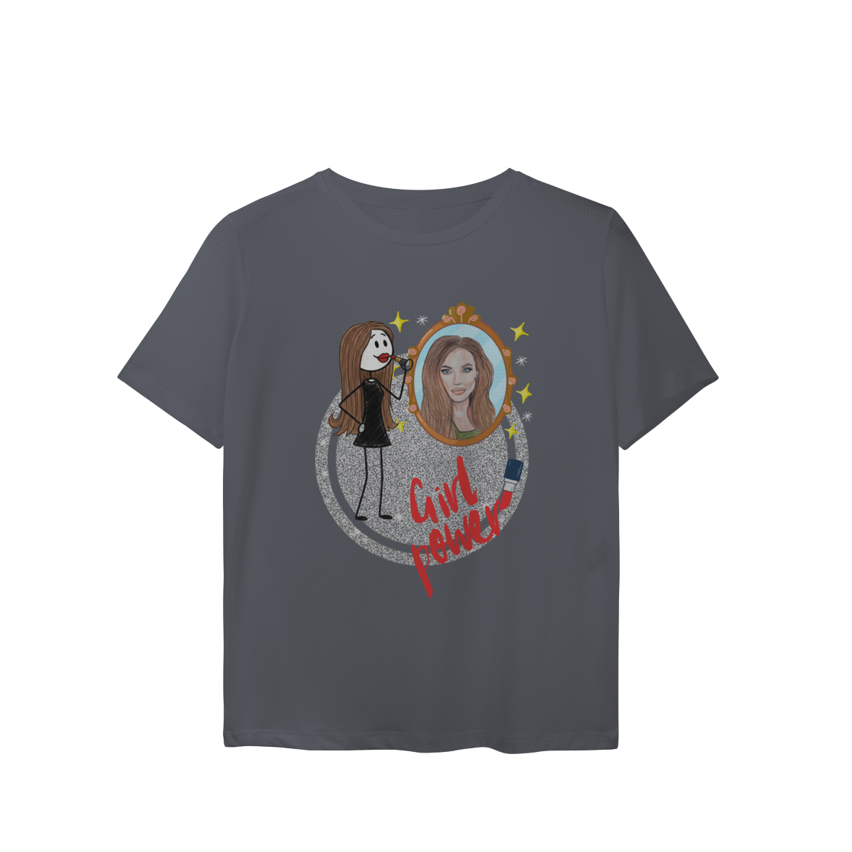 Uma camiseta funcional e cheia de personalidade, feita para mulheres que brilham por dentro e por fora.