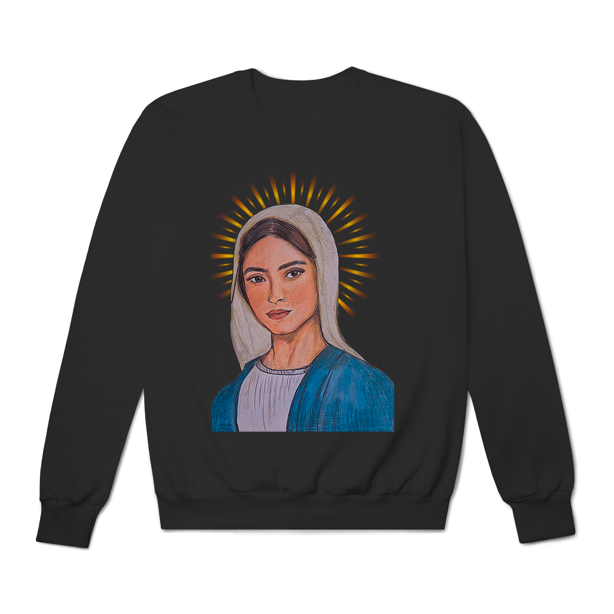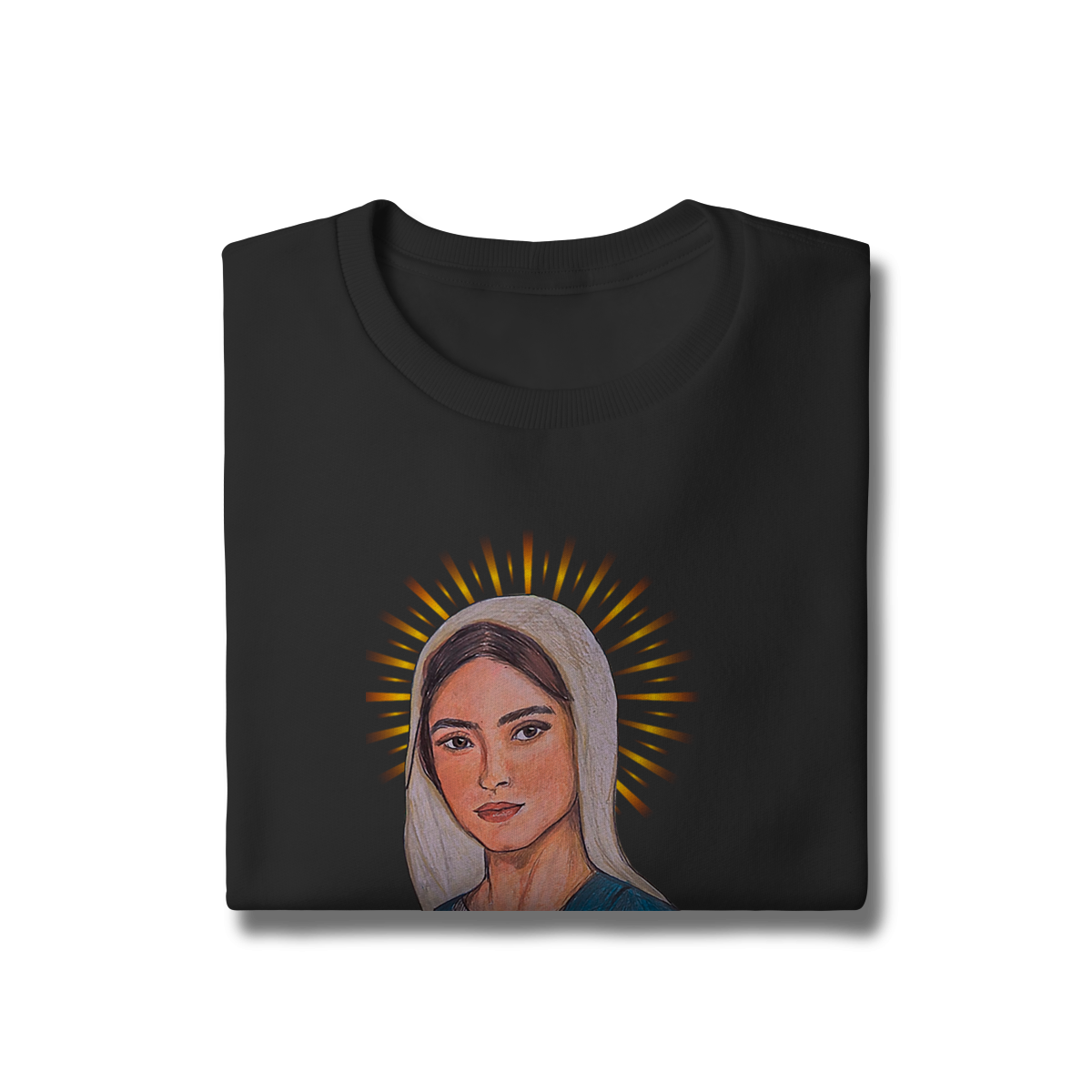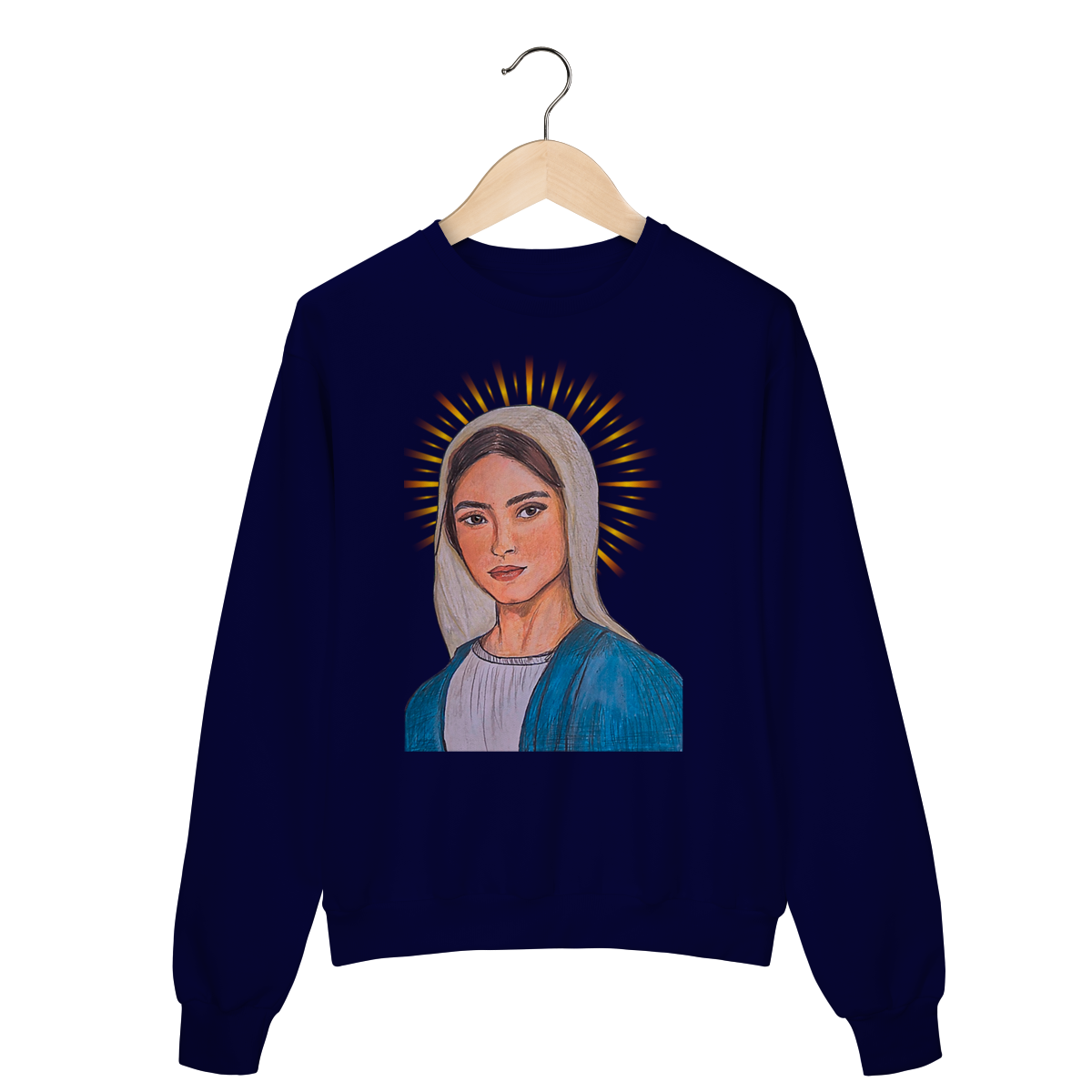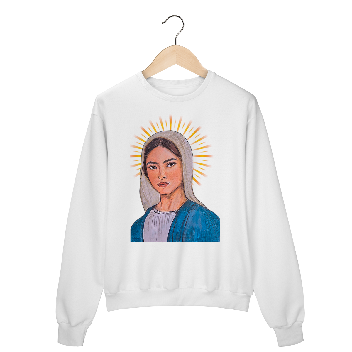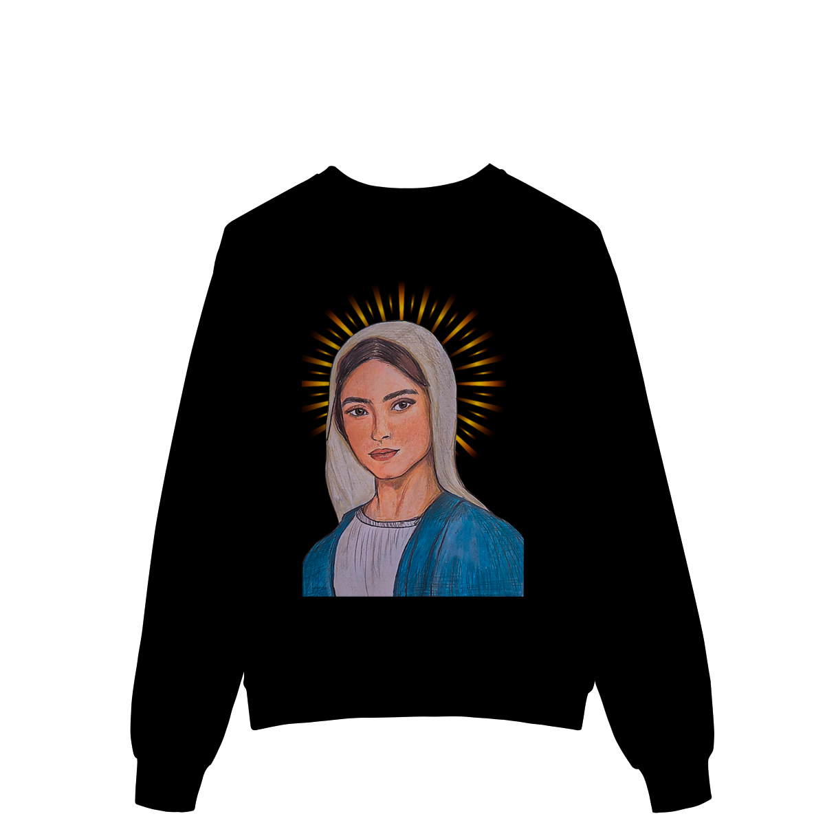 Produzido em tecido premium, o moletom oferece toque macio, caimento confortável e excelente durabilidade. A impressão de alta definição valoriza cada detalhe da arte, tornando a peça perfeita para quem deseja unir estilo, espiritualidade e elegância no dia a dia.