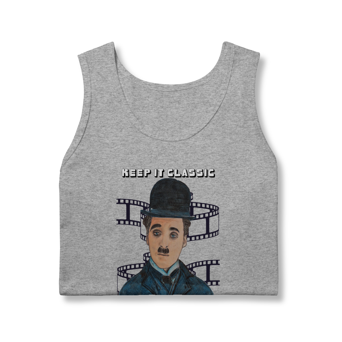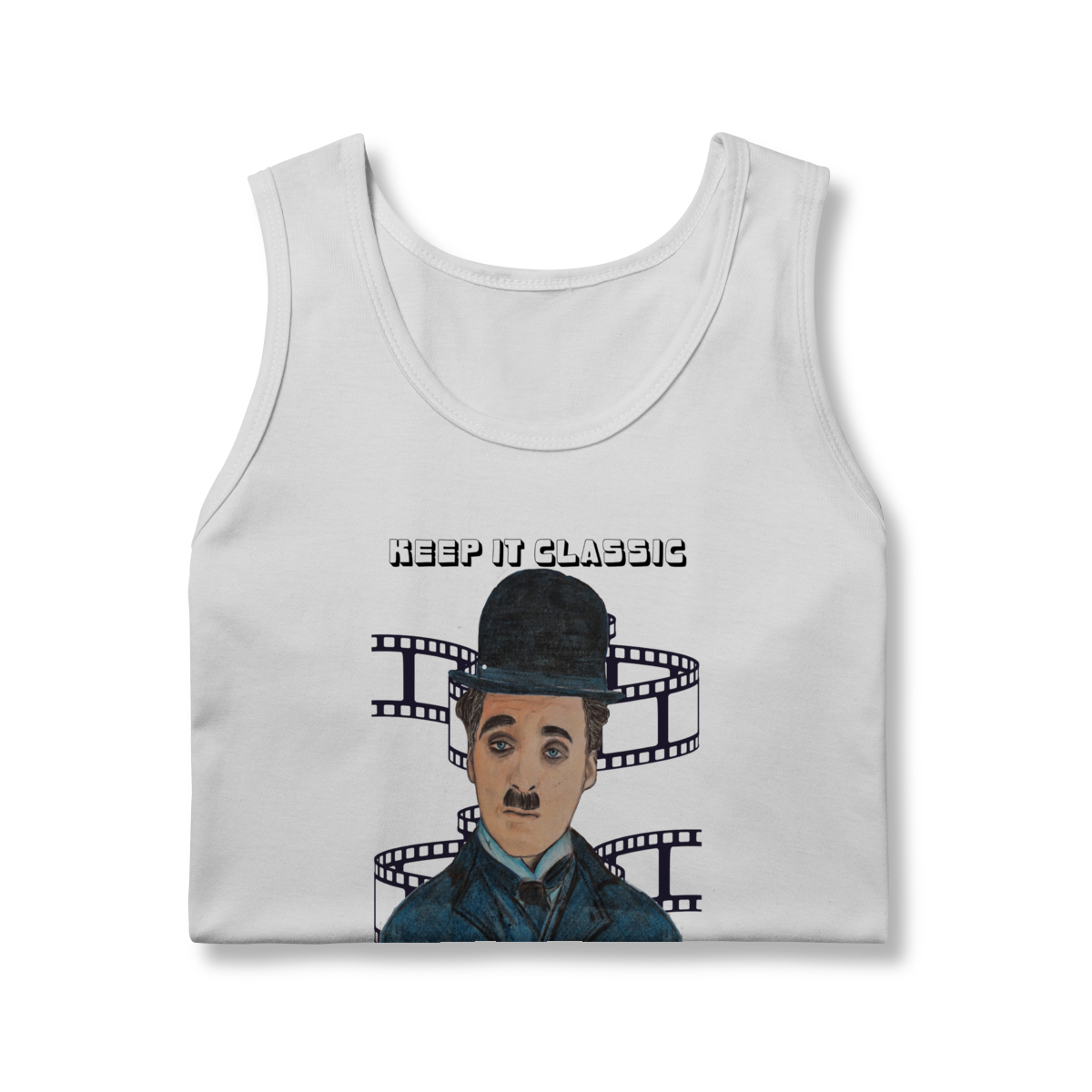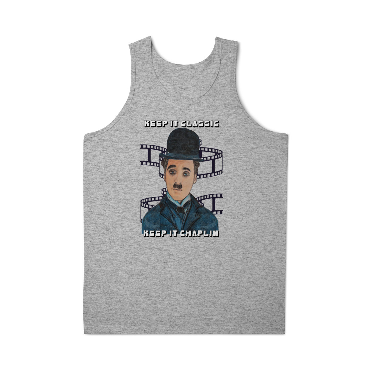 A Regata Masculina Quality – Keep It Classic, Keep It Chaplin traz estilo e personalidade com uma estampa inspirada no charme clássico de Chaplin. O design destaca o personagem em traços artísticos, acompanhado da frase marcante que celebra o cinema atemporal.