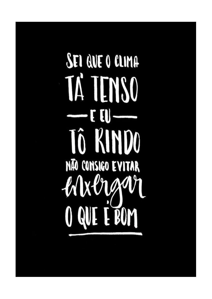 Um "simples" trecho da musica sol da manha da banda supercombo: "sei que o clima ta tenso e eu tô rindo, não consigo evitar enxergar oque é bom".