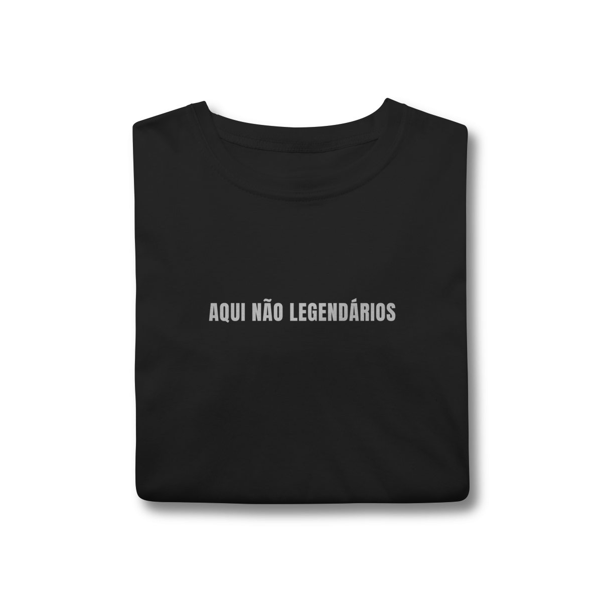 A camiseta minimalista com a frase “AQUI NÃO LEGENDÁRIOS” aposta no humor seco, direto e propositalmente estranho — aquele tipo de frase que parece simples, mas provoca interpretação, dúvida e identificação.