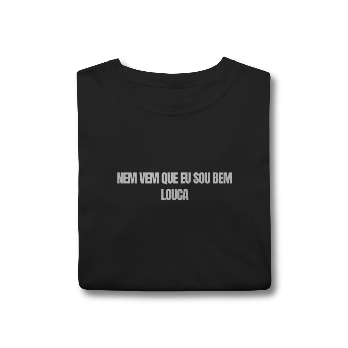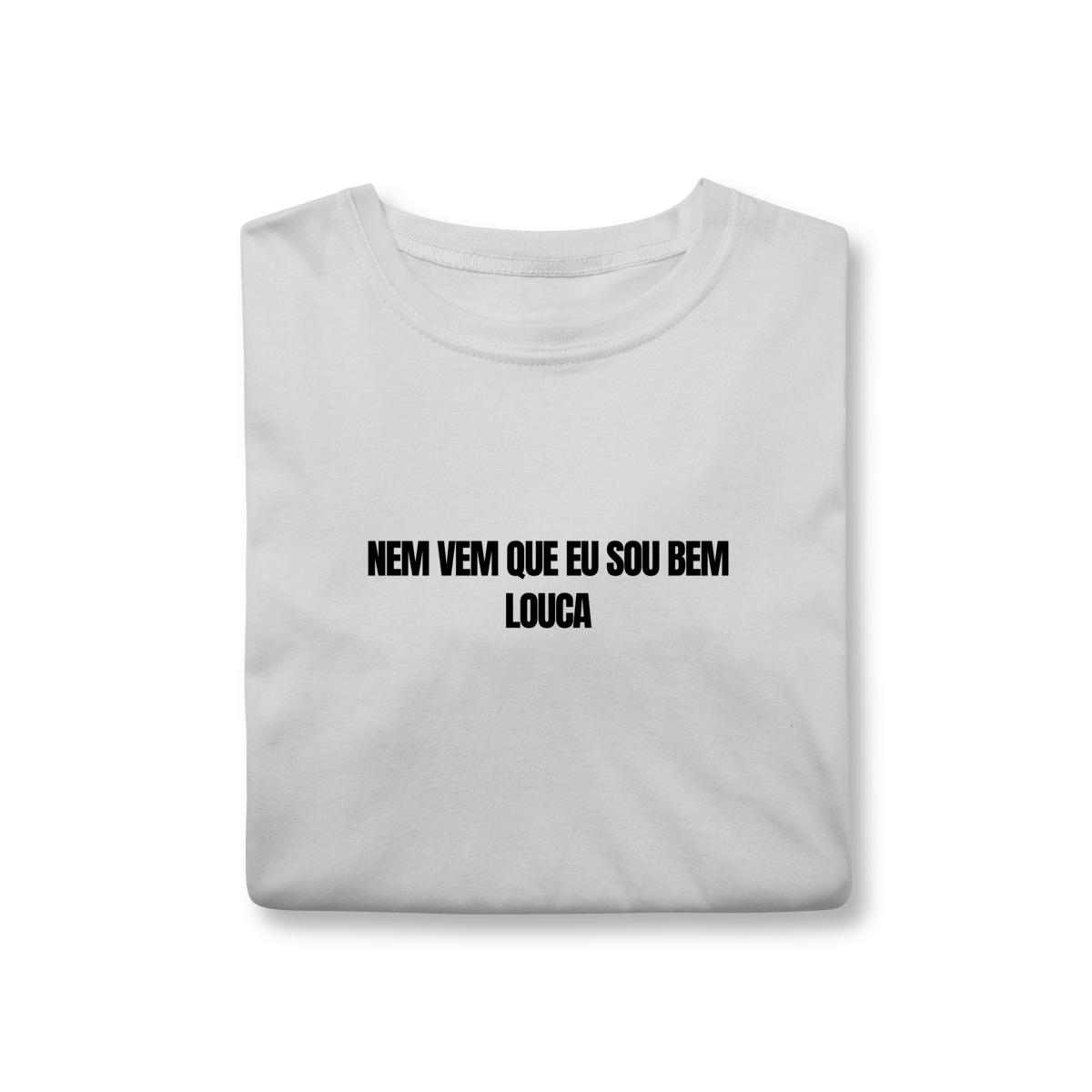 A camiseta minimalista com a frase “nem vem que eu sou bem louca” traduz atitude, humor e autenticidade em poucas palavras. Um meme autoral em forma de texto, direto, irônico e impossível de ignorar — mesmo sendo discreto.