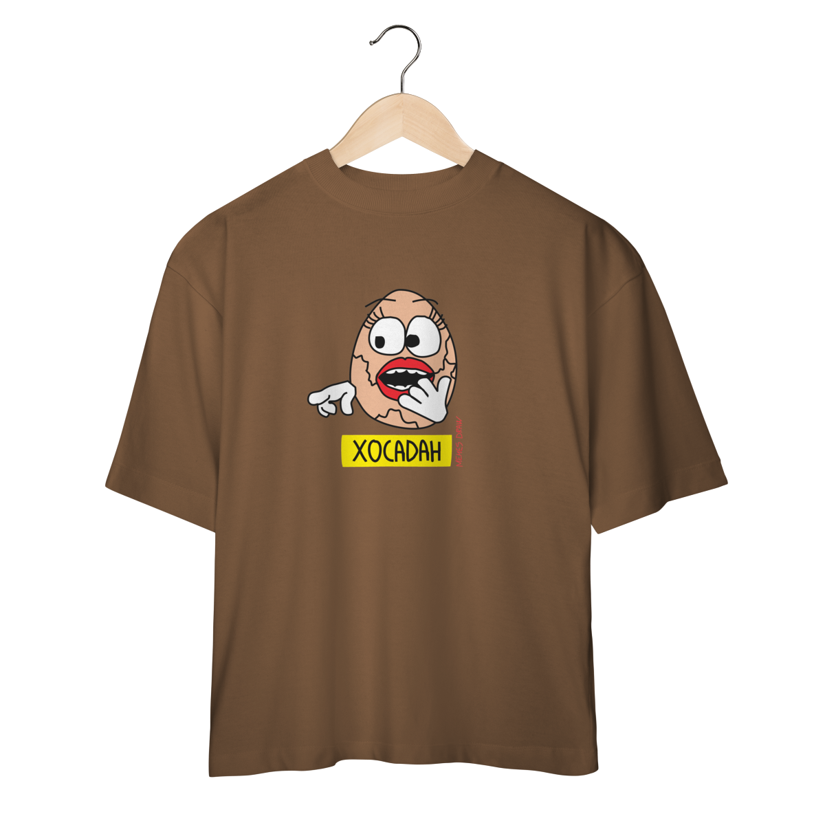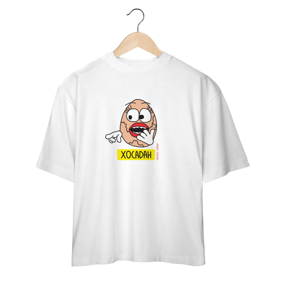 A camiseta Oversized de meme “CHOCADA” traz um trocadilho visual criativo com o desenho de um ovo chocando, transformando uma expressão popular em um meme autoral, engraçado e inteligente. É humor simples, visual e certeiro, daqueles que todo mundo entende na hora.