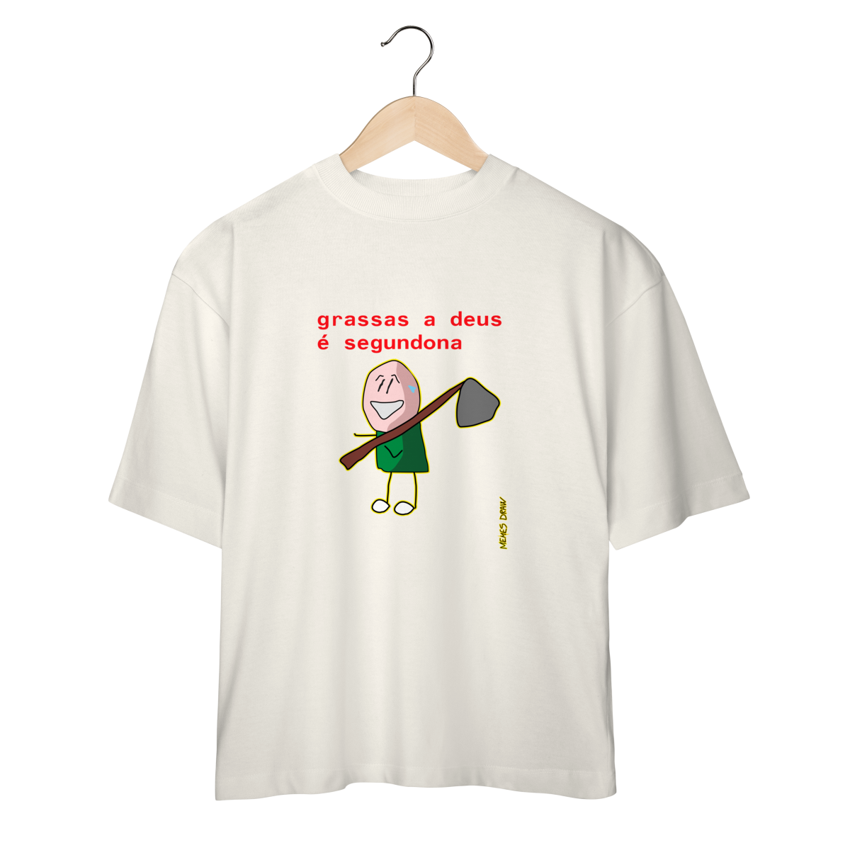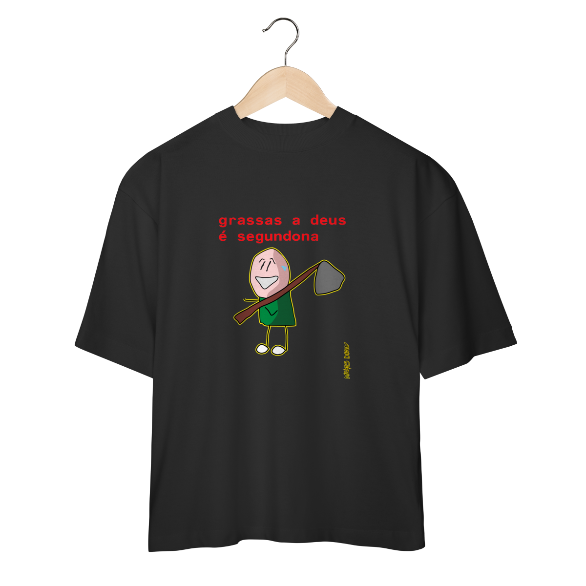 Produzida no modelo Oversized, com estampa sublimada de alta qualidade, a camiseta garante cores vivas, ótima durabilidade e conforto para o uso diário. Ideal para quem usa o humor como mecanismo de defesa contra segundas-feiras difíceis.