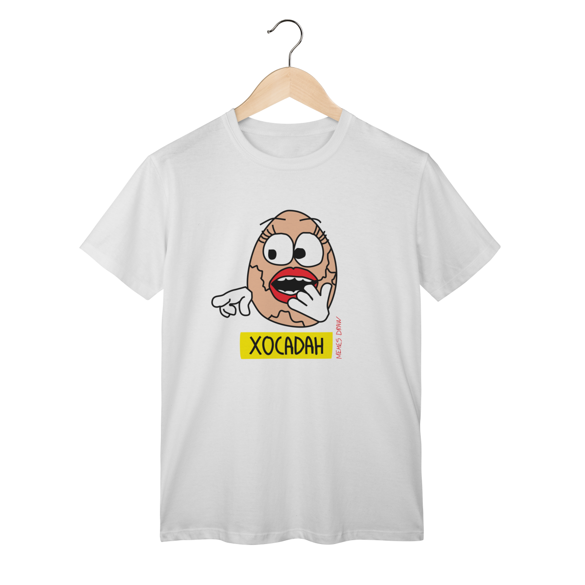 A camiseta de meme “CHOCADA” traz um trocadilho visual criativo com o desenho de um ovo chocando, transformando uma expressão popular em um meme autoral, engraçado e inteligente. É humor simples, visual e certeiro, daqueles que todo mundo entende na hora.