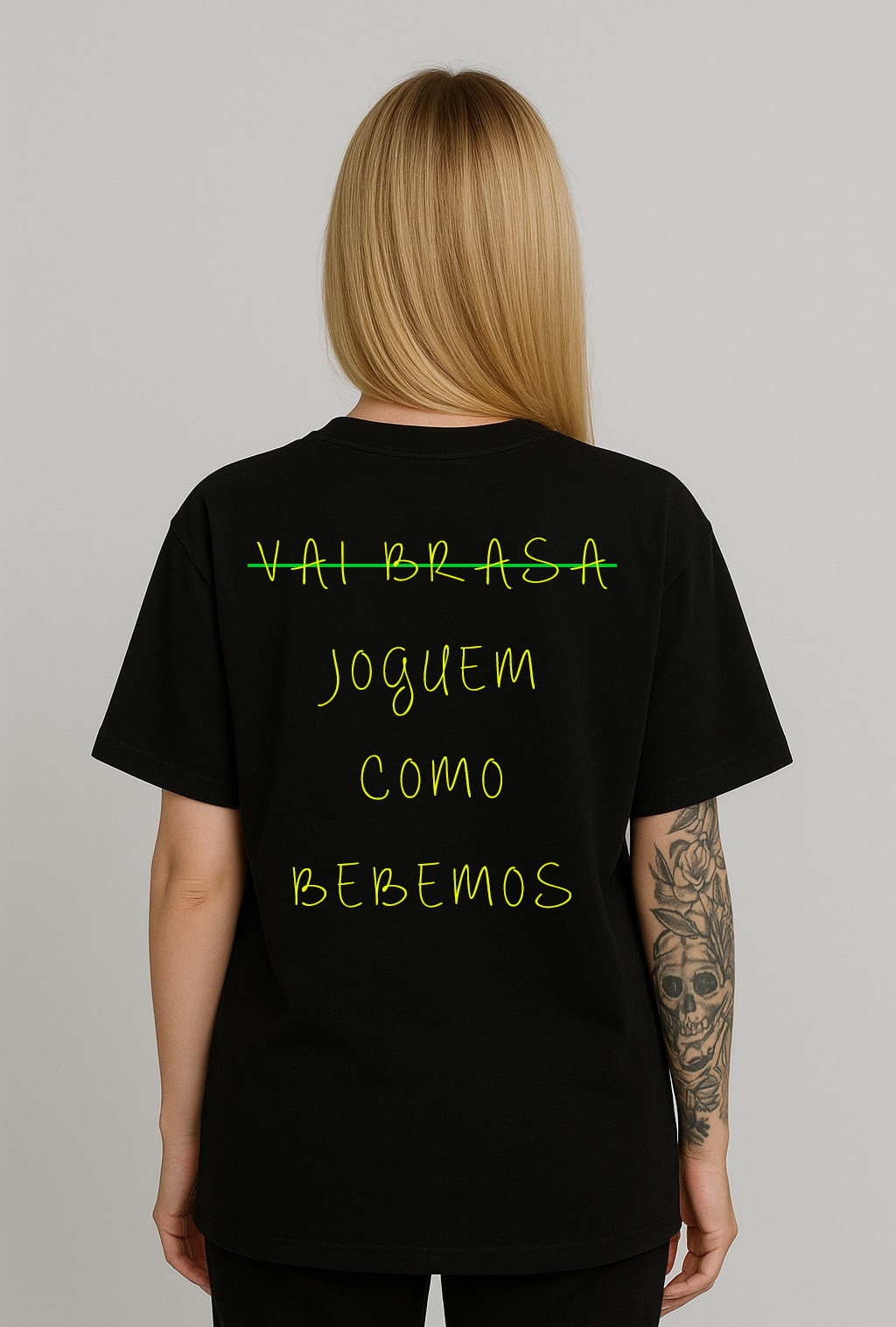Cores do produto: Como cada tela de computador ou celular tem seu próprio jeito de mostrar cores, então a cor da sua camiseta e da estampa pode ser um pouco diferente do que você viu online.