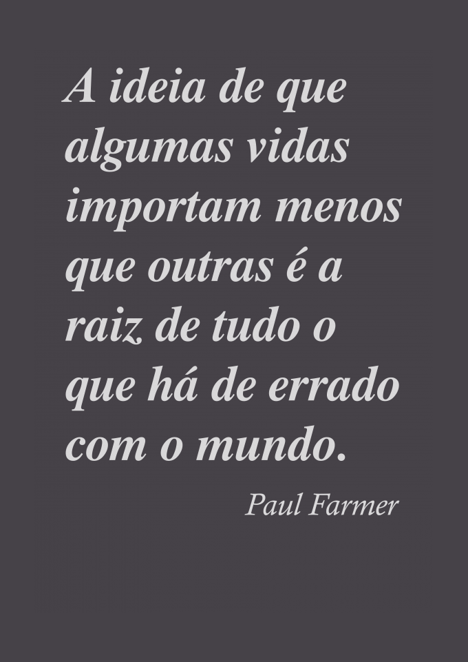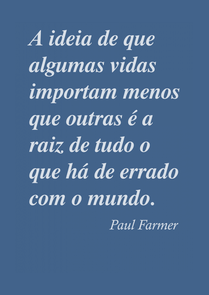 "A ideia de que algumas vidas importam menos que outras, é a raiz de tudo que há de errado com o mundo". Frase de Paul Farmer