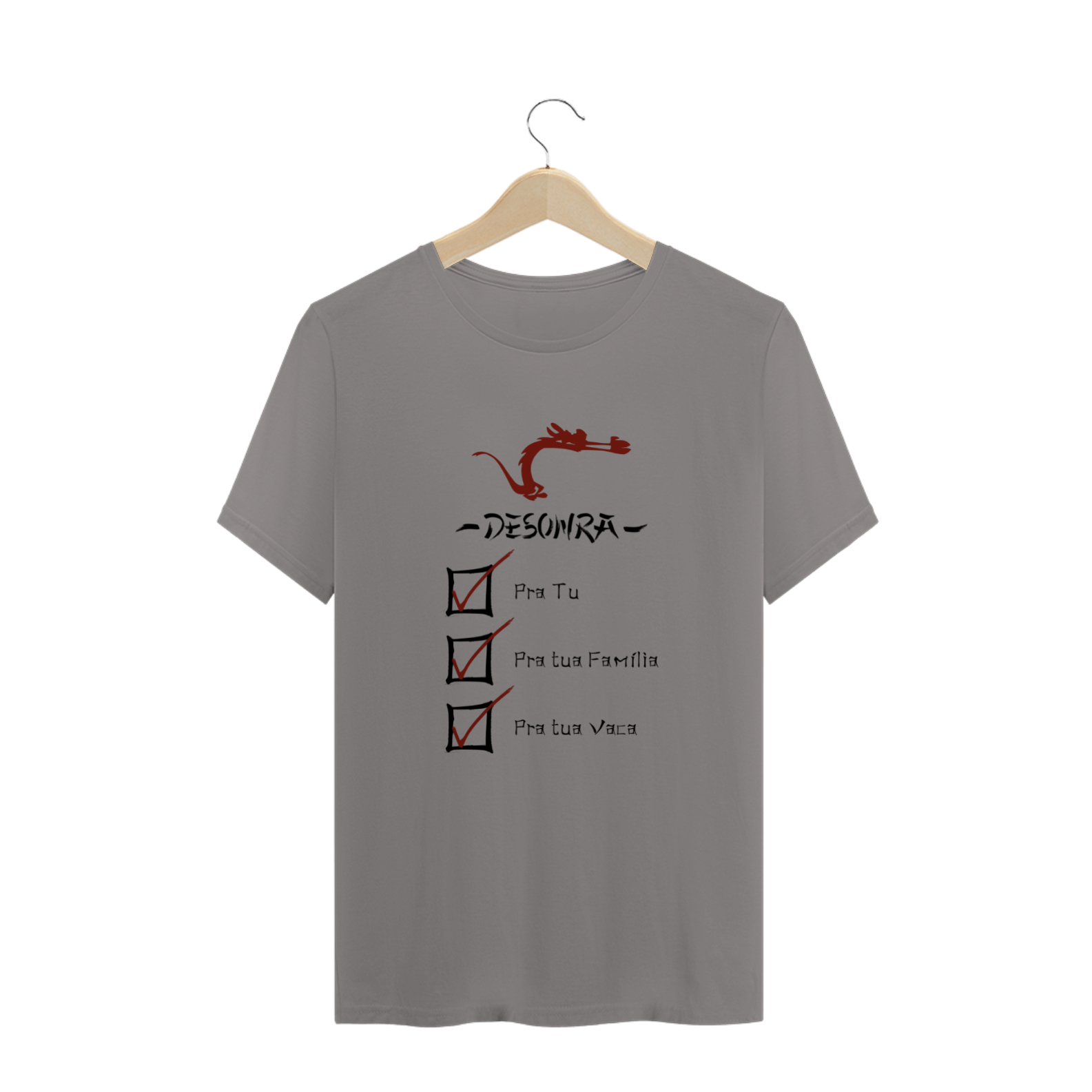 Cores do produto: Como cada tela de computador ou celular tem seu próprio jeito de mostrar cores, então a cor da sua camiseta e da estampa pode ser um pouco diferente do que você viu online.