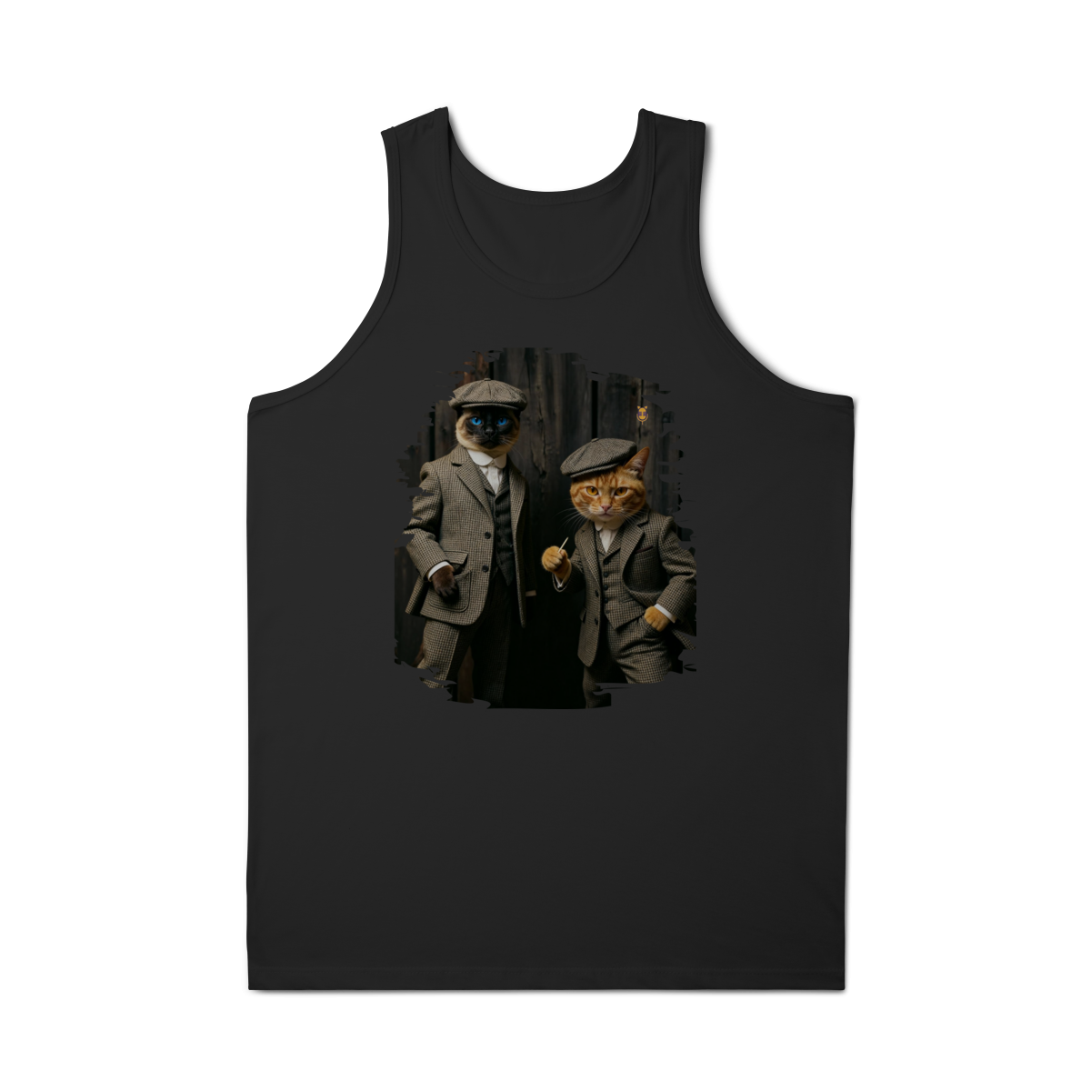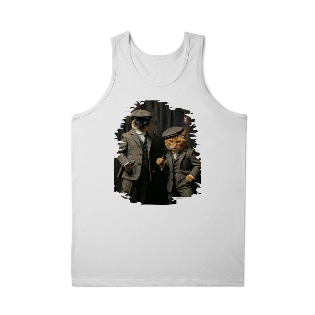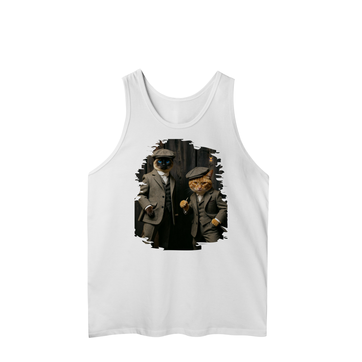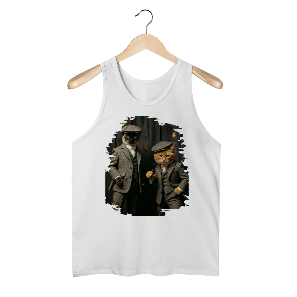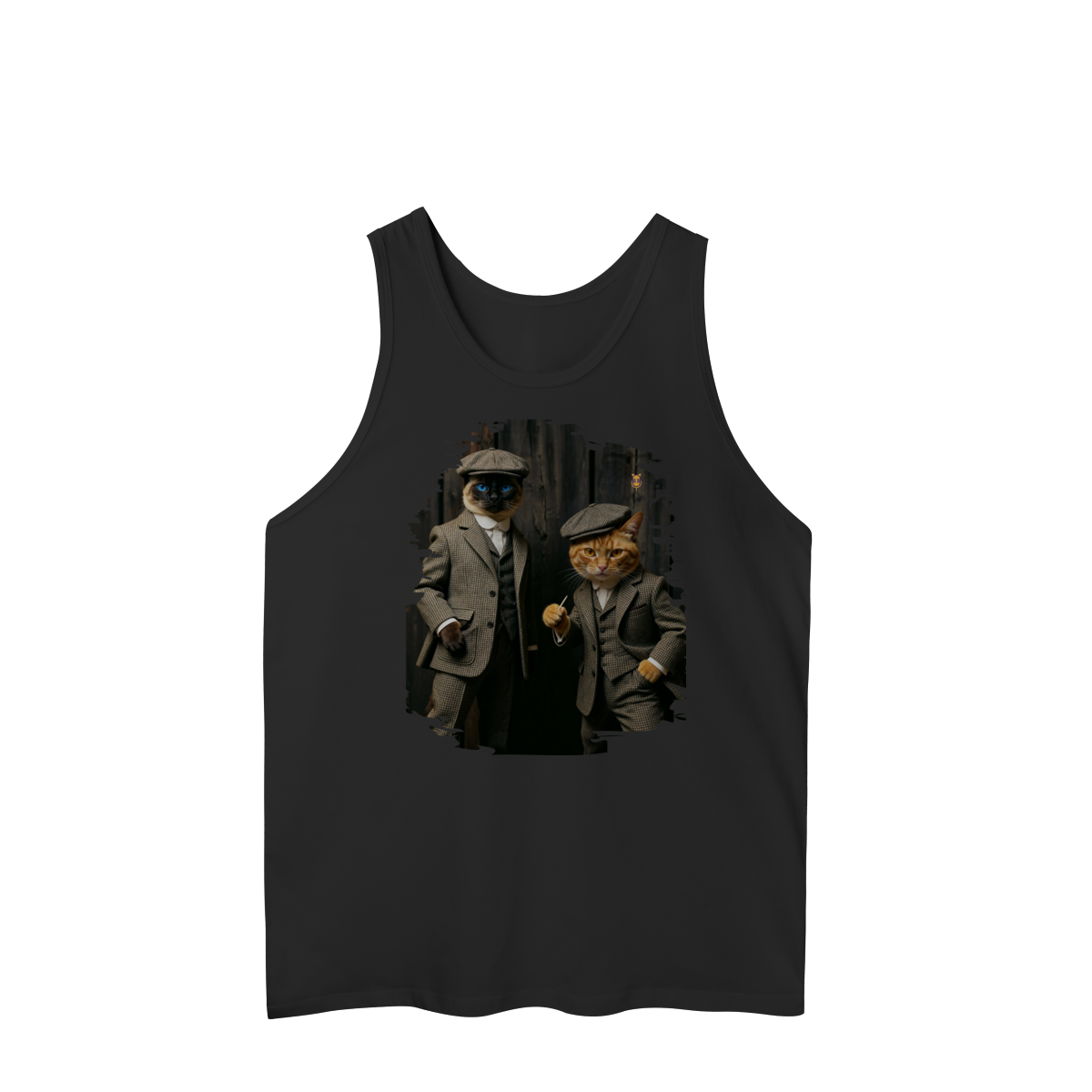 Esta estampa exclusiva traz dois gatos super estilosos vestidos como verdadeiros gângsteres da era vintage. Com ternos xadrez clássicos, boinas tradicionais e poses cheias de atitude, o duo felino transmite charme, humor e personalidade.