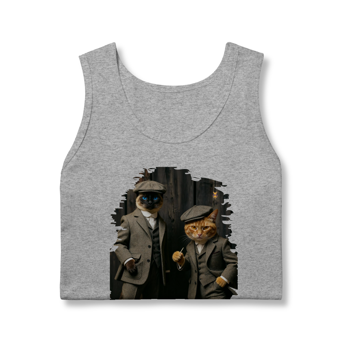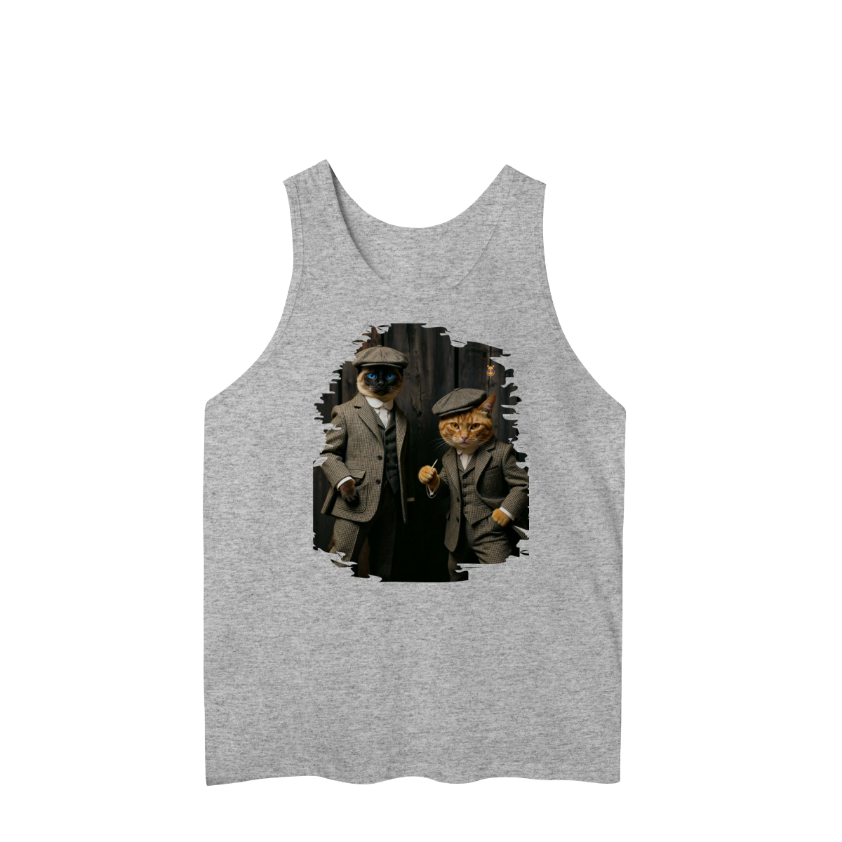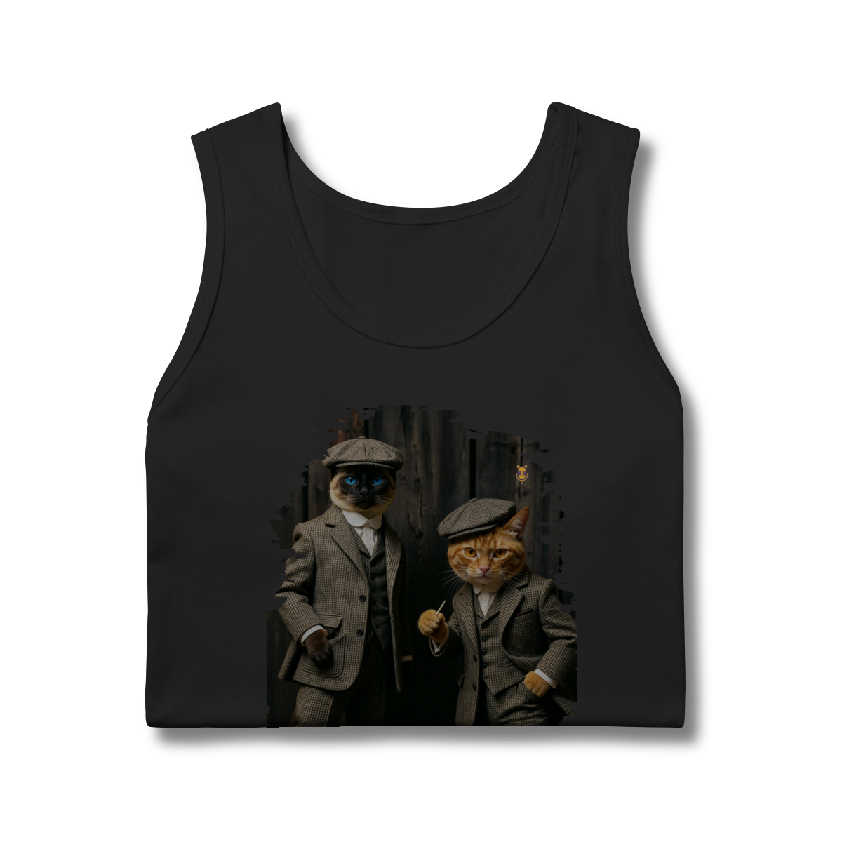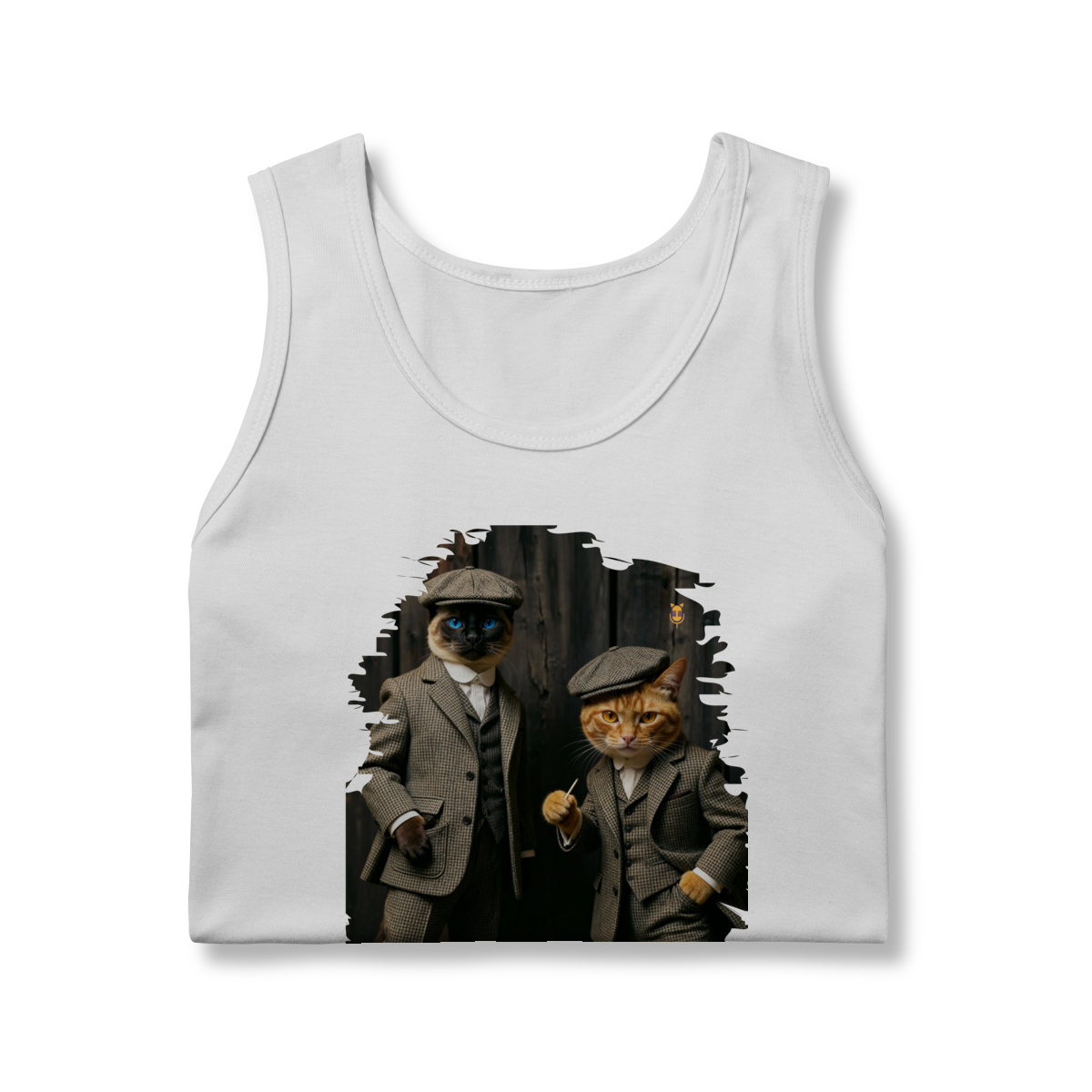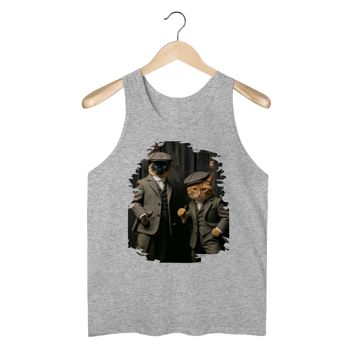 Esta estampa exclusiva traz dois gatos super estilosos vestidos como verdadeiros gângsteres da era vintage. Com ternos xadrez clássicos, boinas tradicionais e poses cheias de atitude, o duo felino transmite charme, humor e personalidade.