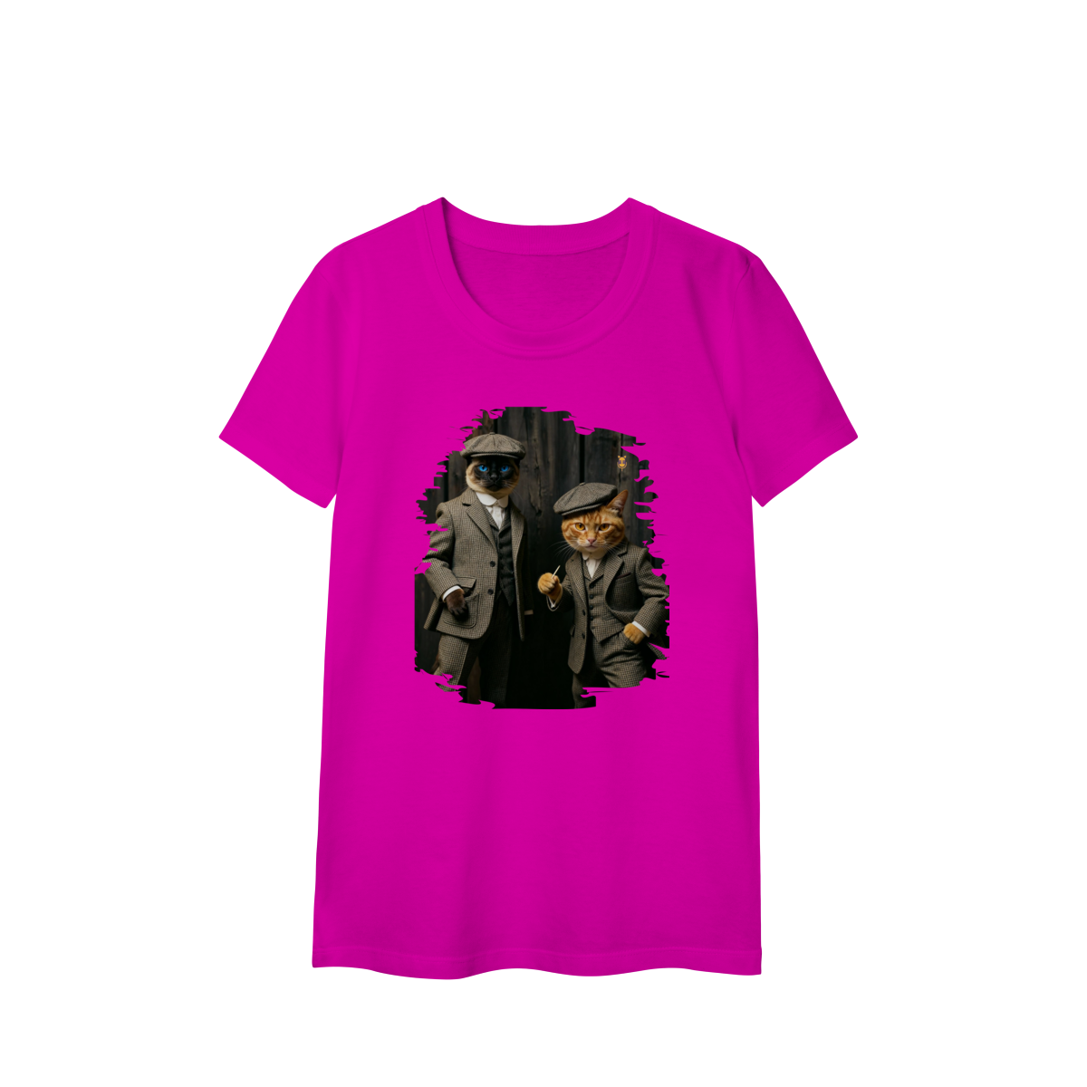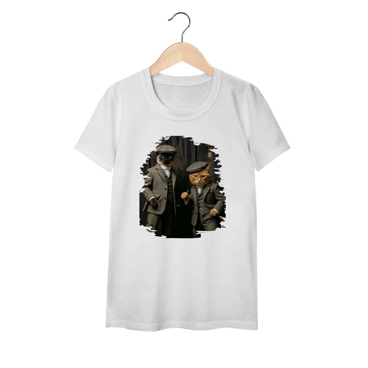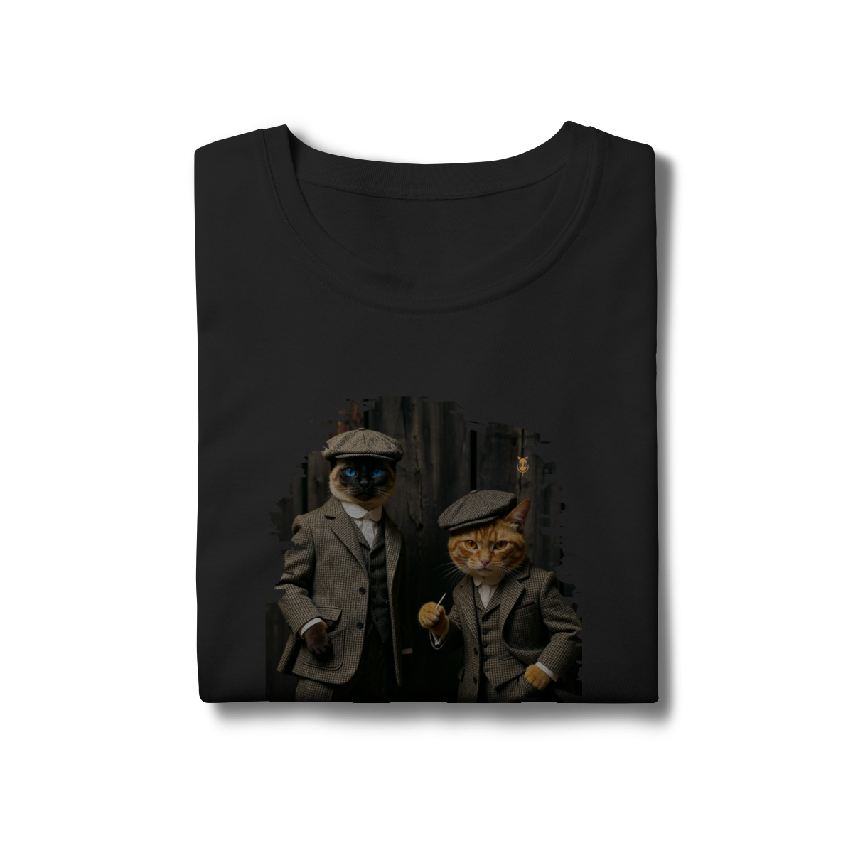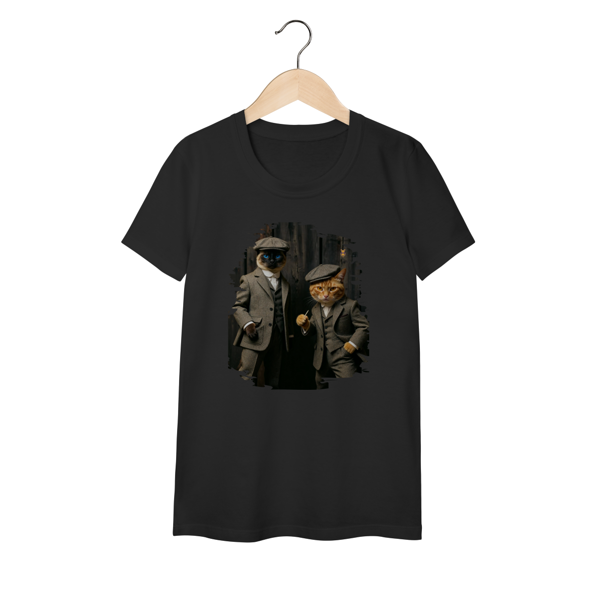 Esta estampa exclusiva traz dois gatos super estilosos vestidos como verdadeiros gângsteres da era vintage. Com ternos xadrez clássicos, boinas tradicionais e poses cheias de atitude, o duo felino transmite charme, humor e personalidade.