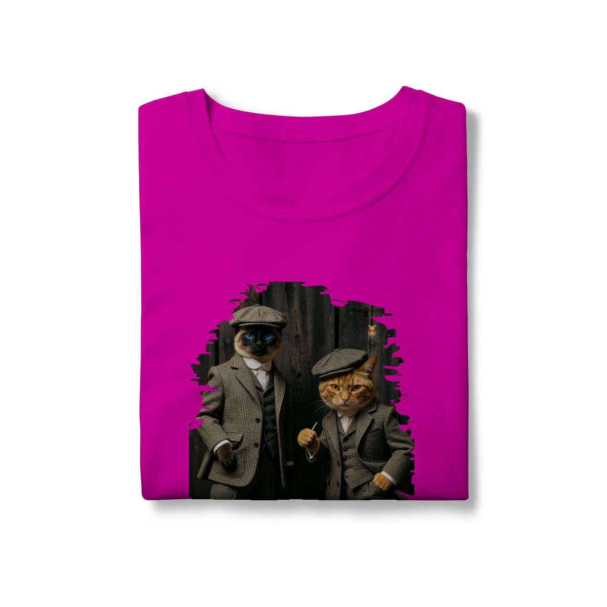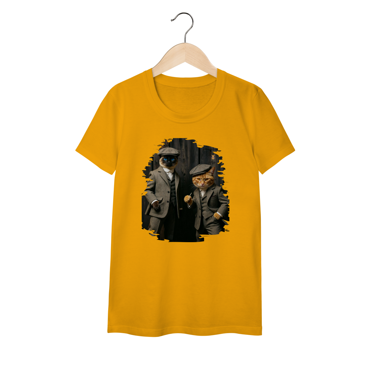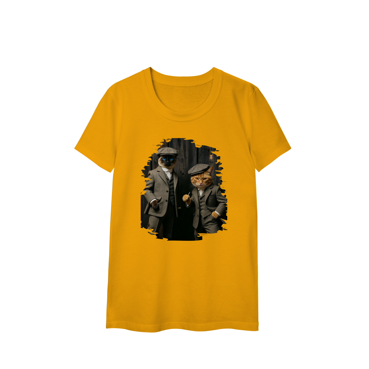 Esta estampa exclusiva traz dois gatos super estilosos vestidos como verdadeiros gângsteres da era vintage. Com ternos xadrez clássicos, boinas tradicionais e poses cheias de atitude, o duo felino transmite charme, humor e personalidade.
