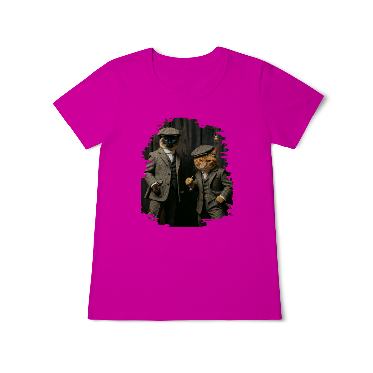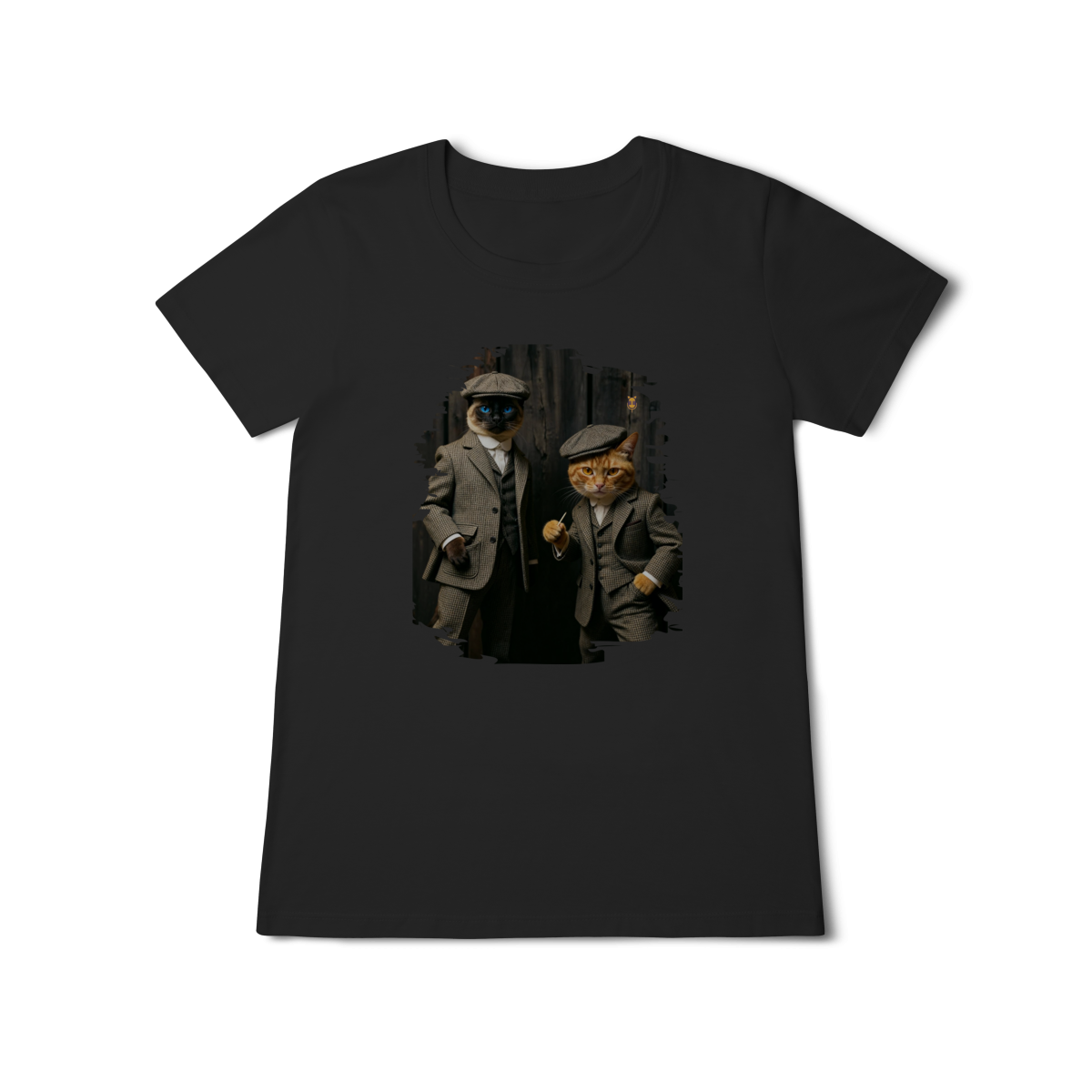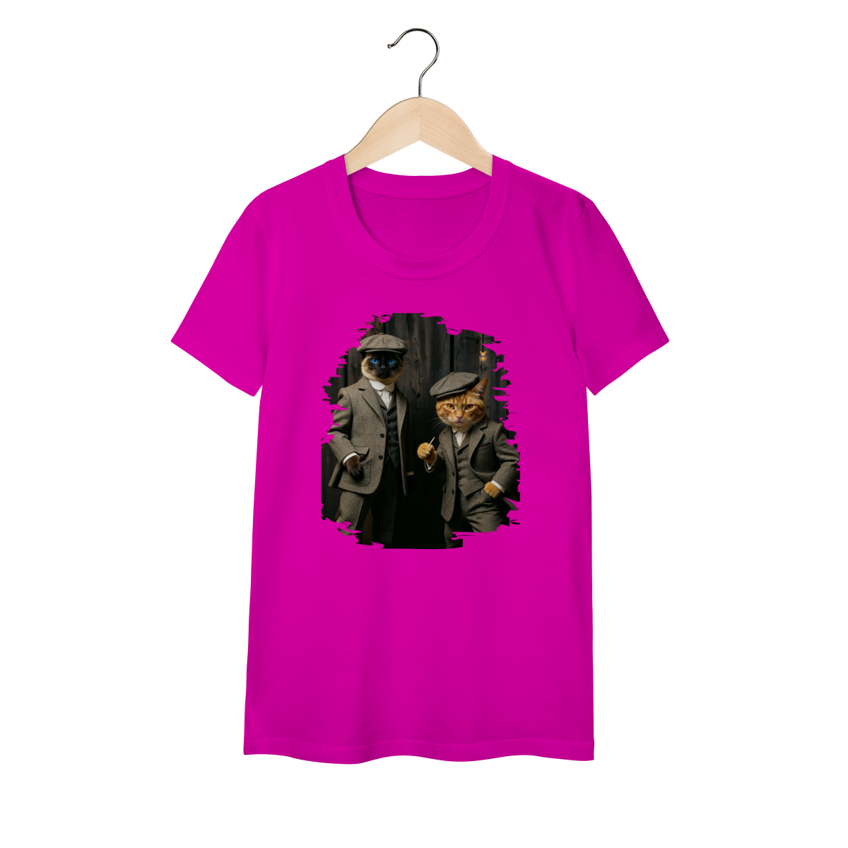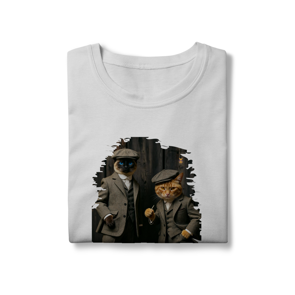 Esta estampa exclusiva traz dois gatos super estilosos vestidos como verdadeiros gângsteres da era vintage. Com ternos xadrez clássicos, boinas tradicionais e poses cheias de atitude, o duo felino transmite charme, humor e personalidade.