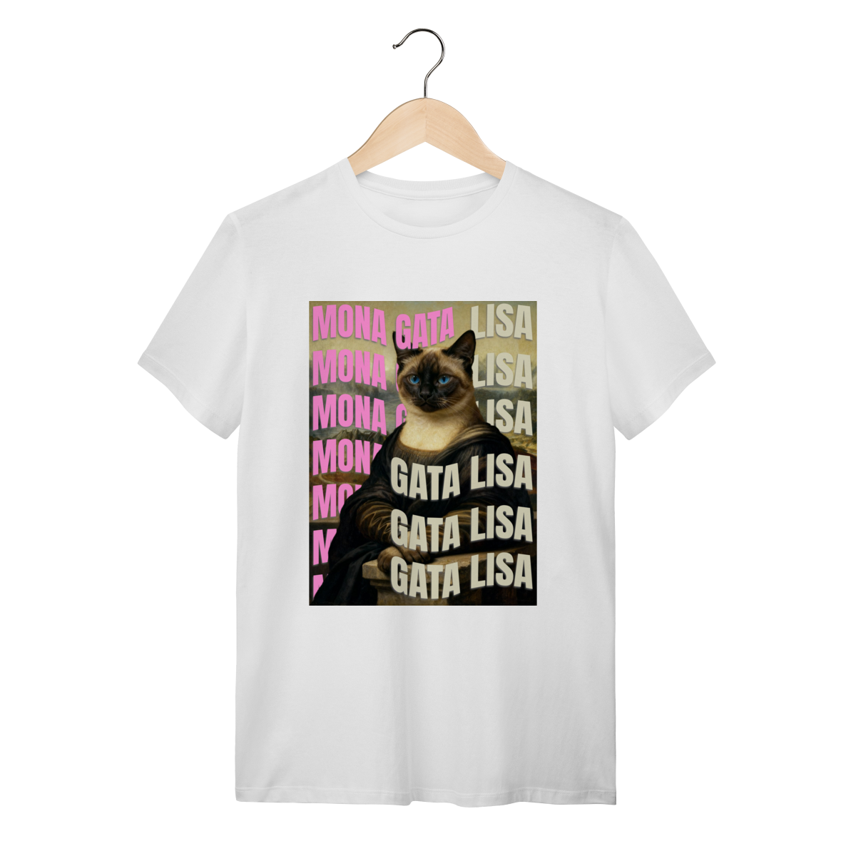 A camiseta Gata Lisa traz uma paródia divertida da famosa obra “Mona Lisa”, mas reimaginada com uma gatinha siamesa. A estampa mistura humor e arte de um jeito simples e estiloso, perfeita para quem ama gatos e camisetas criativas. Confortável, moderna e com impressão de alta qualidade — ideal para usar no dia a dia ou presentear alguém especial.