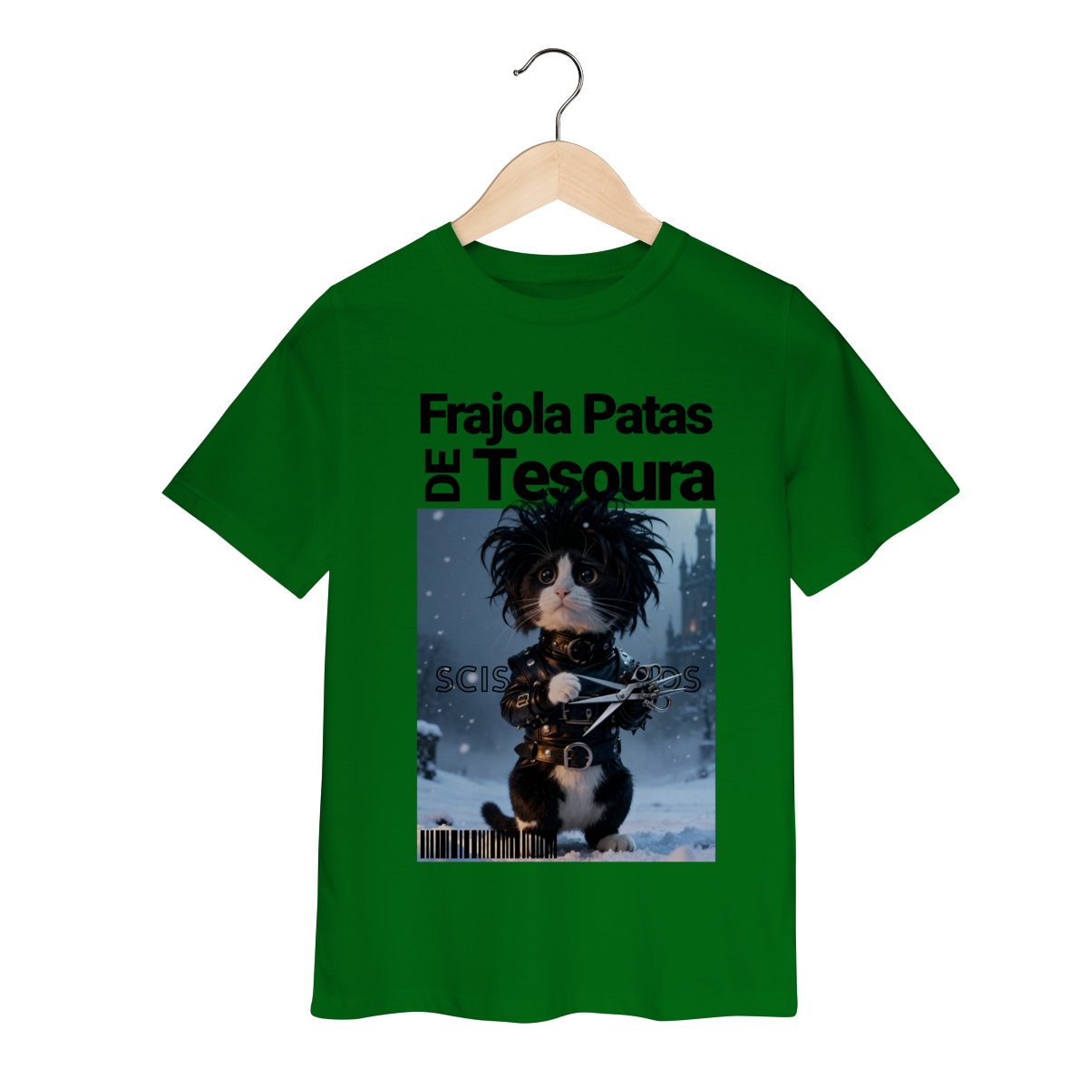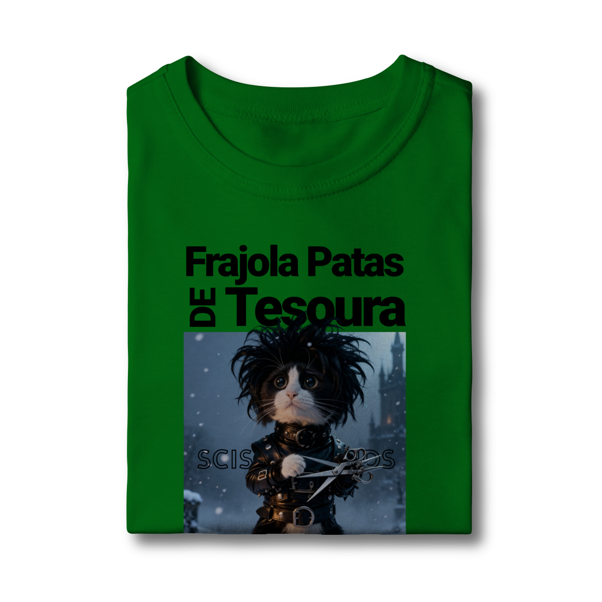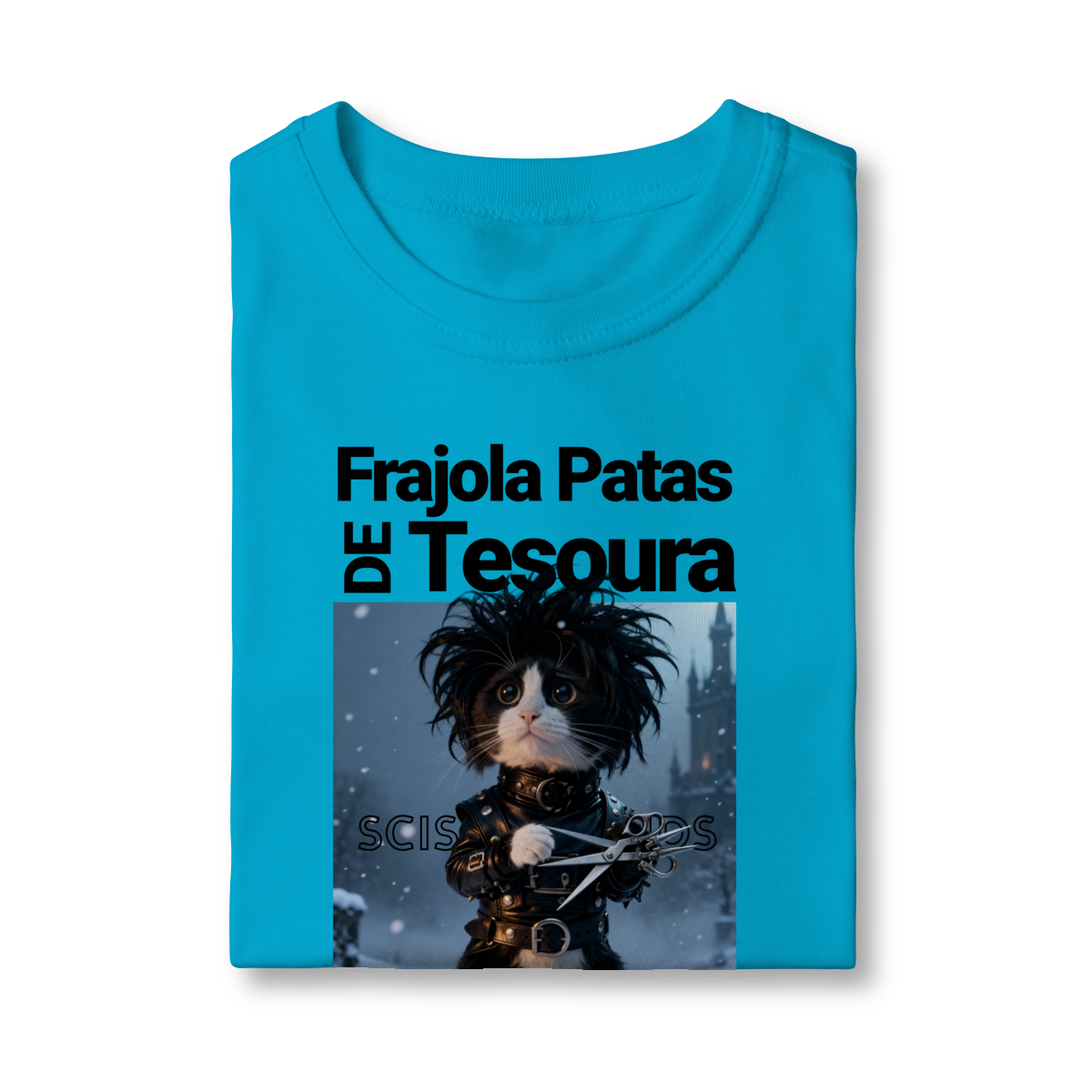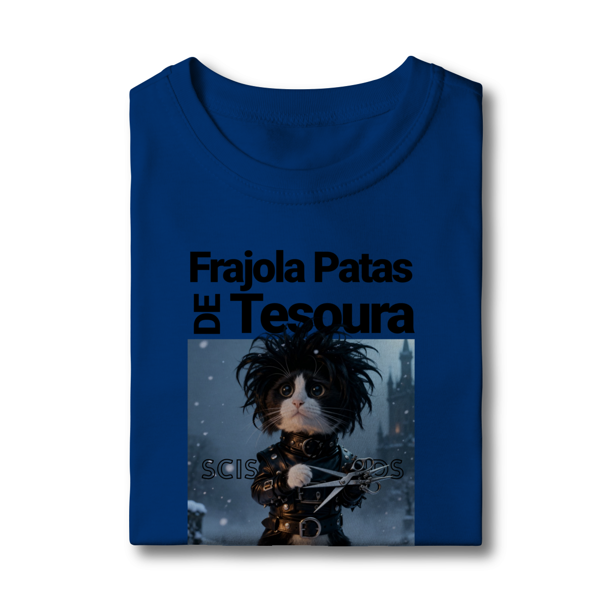 A camiseta “Frajola Patas de Tesoura” traz uma releitura divertida e estilizada do clássico personagem de tesouras — só que agora reinventado como um gatinho dramático, fofo e cheio de personalidade.