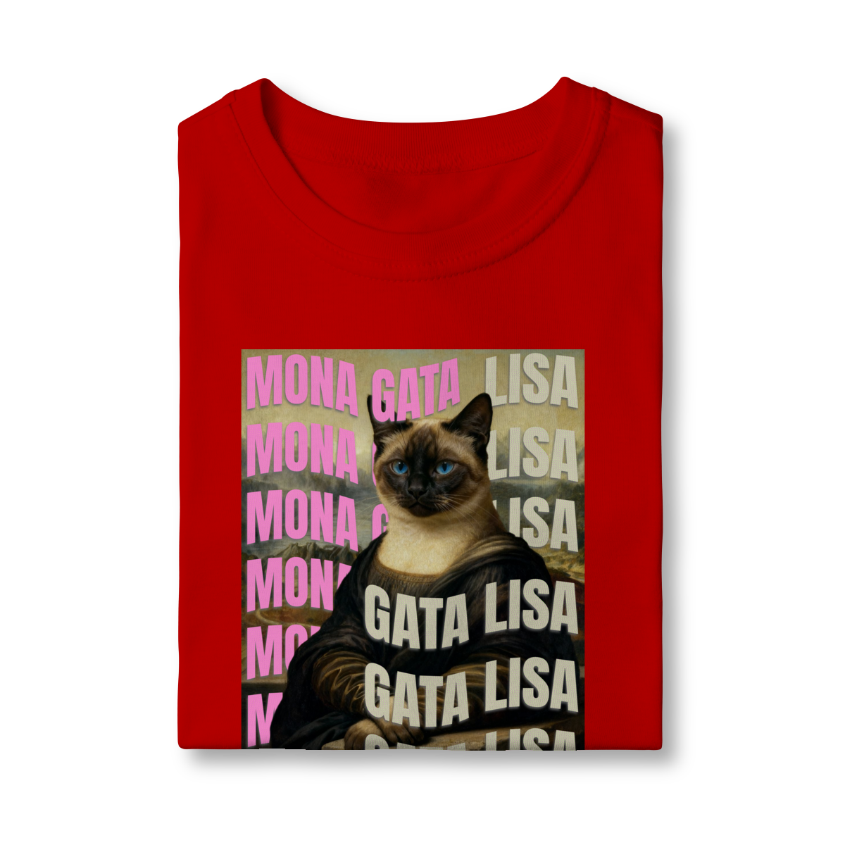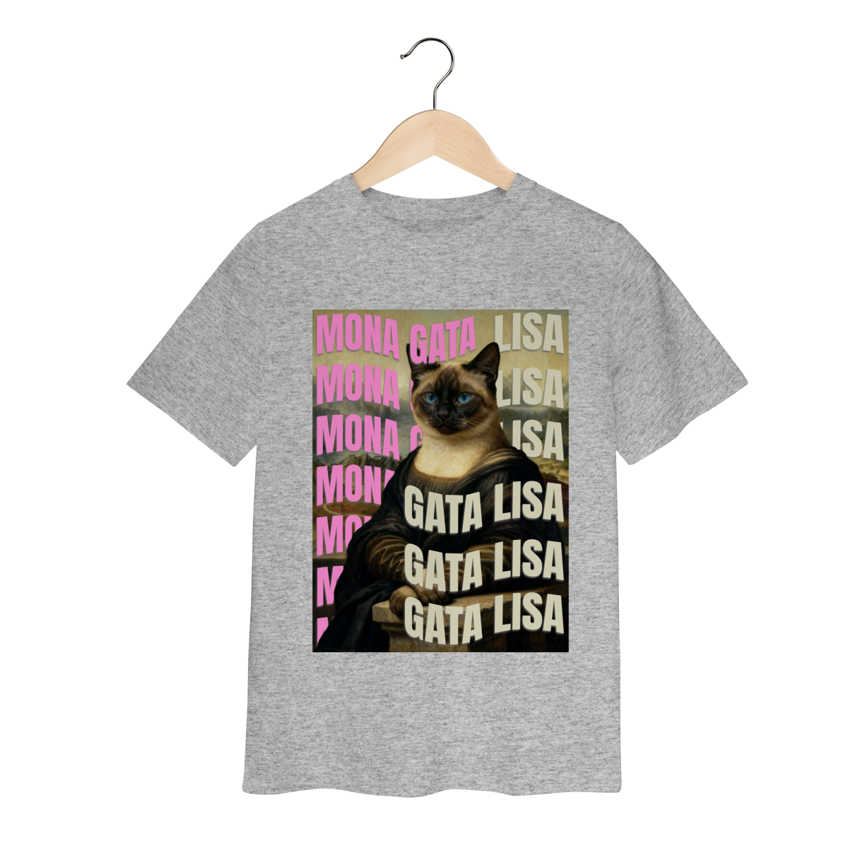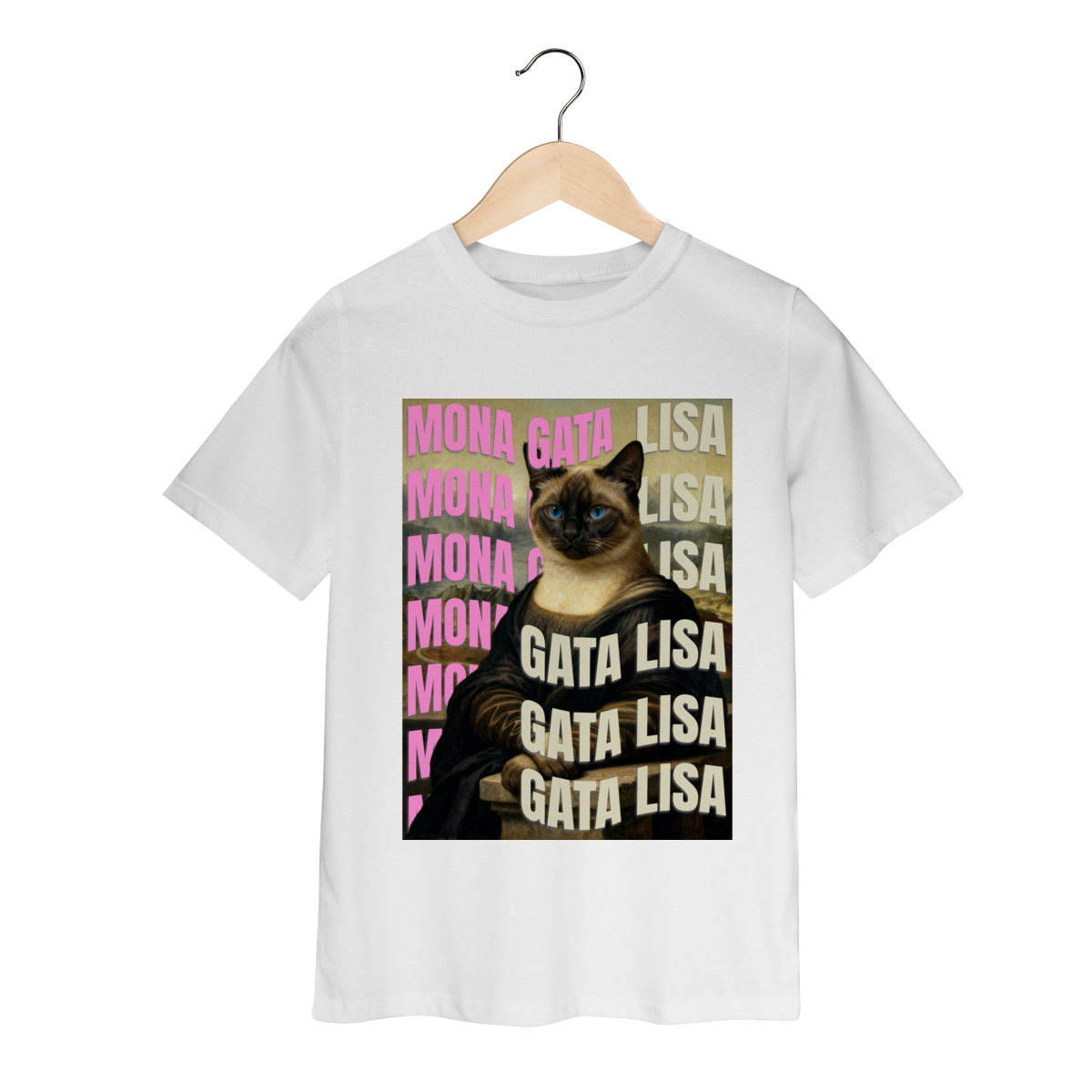 A camiseta Gata Lisa traz uma paródia divertida da famosa obra “Mona Lisa”, mas reimaginada com uma gatinha siamesa. A estampa mistura humor e arte de um jeito simples e estiloso, perfeita para quem ama gatos e camisetas criativas. Confortável, moderna e com impressão de alta qualidade — ideal para usar no dia a dia ou presentear alguém especial.
