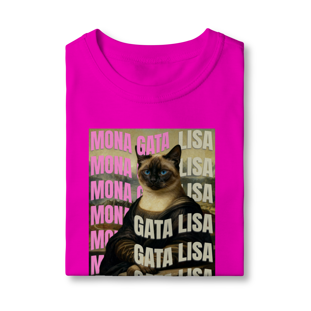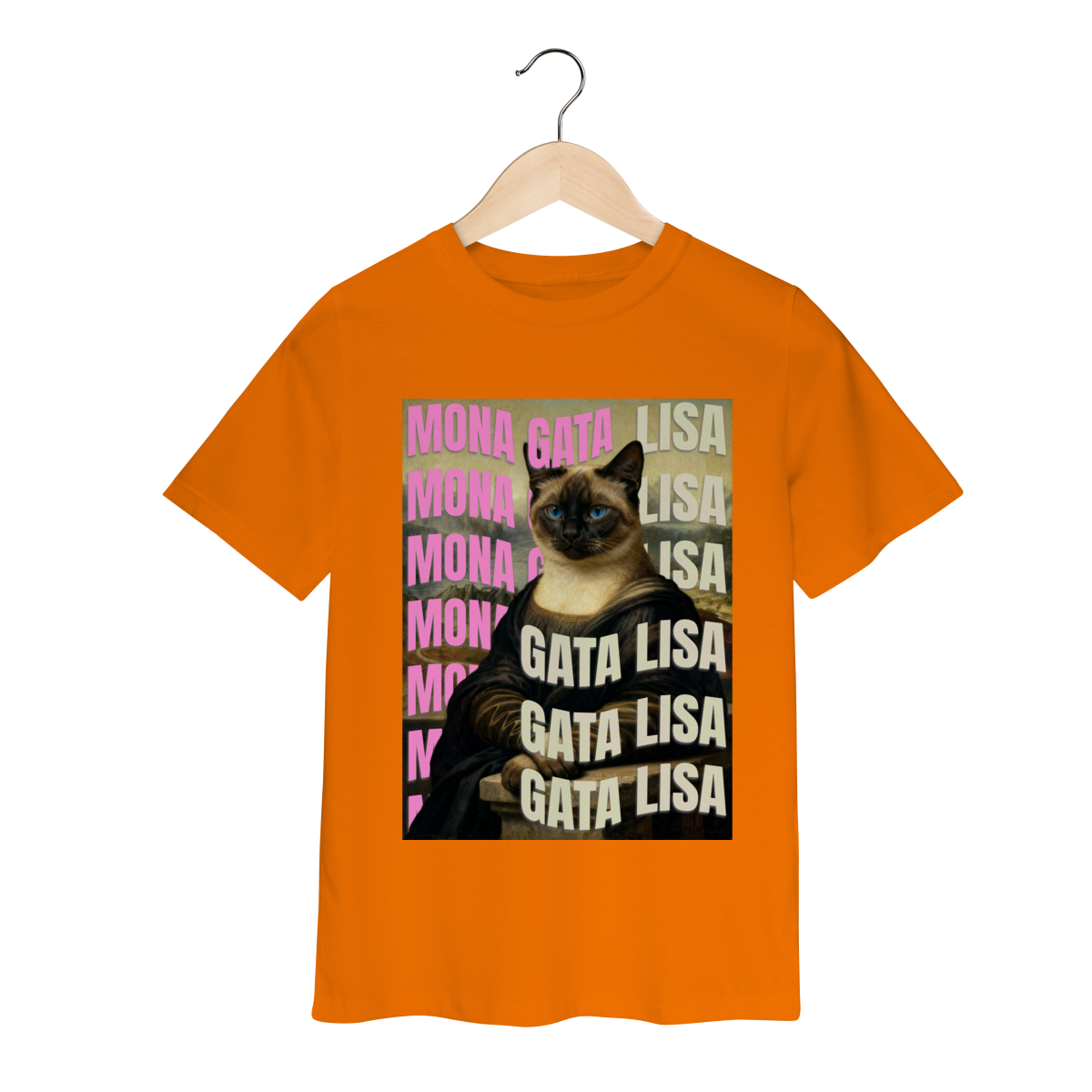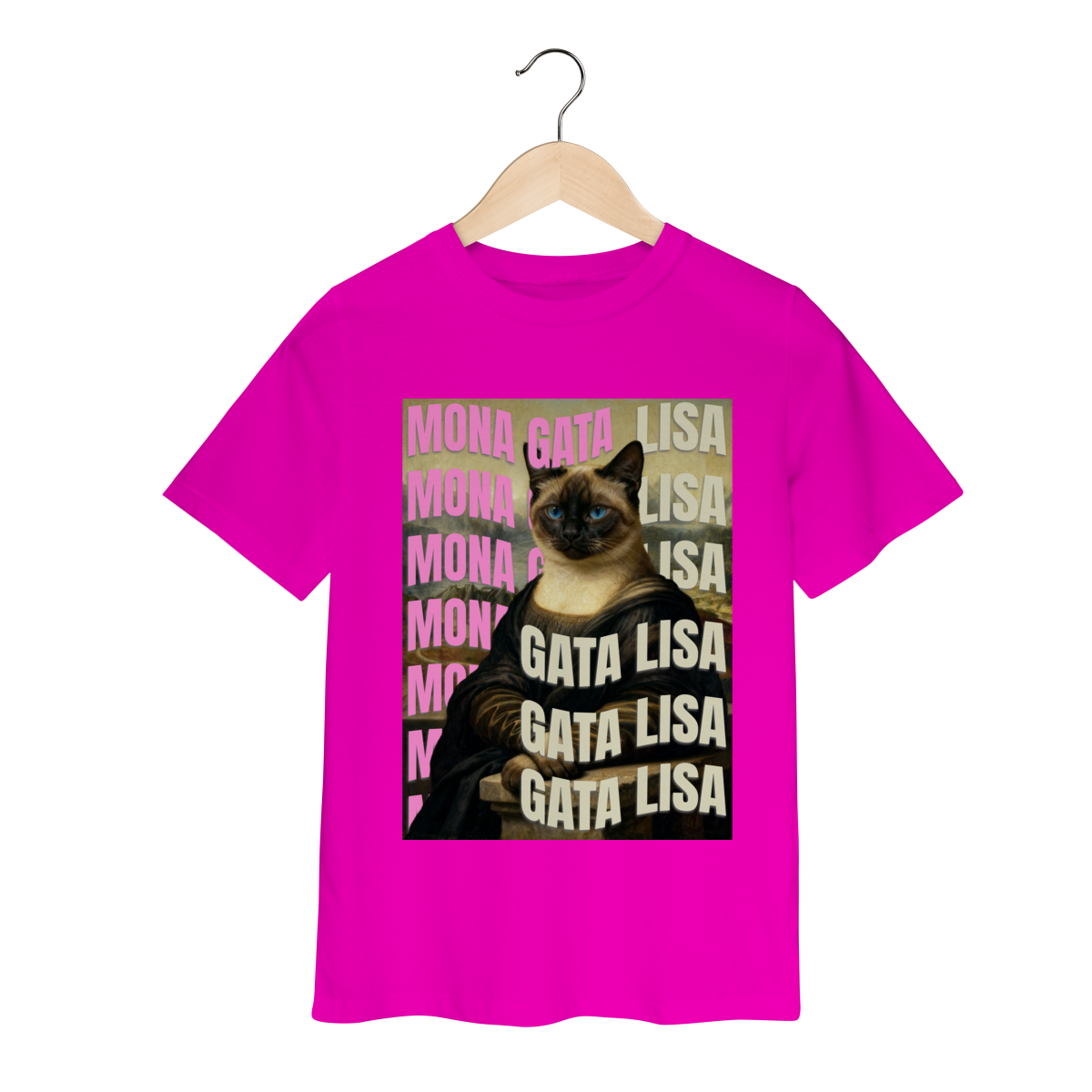 A camiseta Gata Lisa traz uma paródia divertida da famosa obra “Mona Lisa”, mas reimaginada com uma gatinha siamesa. A estampa mistura humor e arte de um jeito simples e estiloso, perfeita para quem ama gatos e camisetas criativas. Confortável, moderna e com impressão de alta qualidade — ideal para usar no dia a dia ou presentear alguém especial.