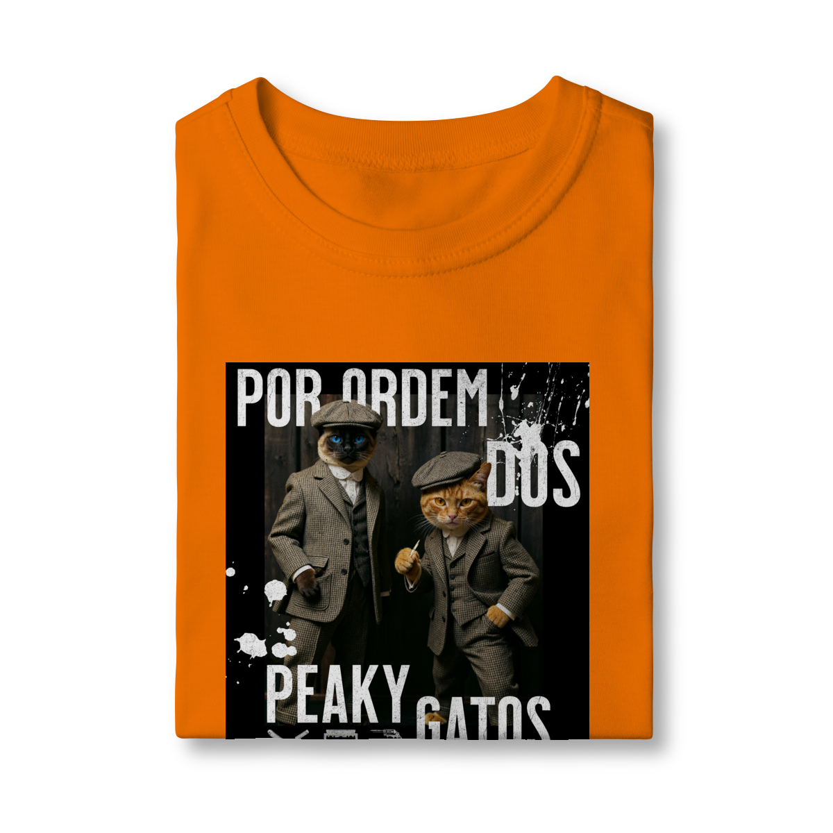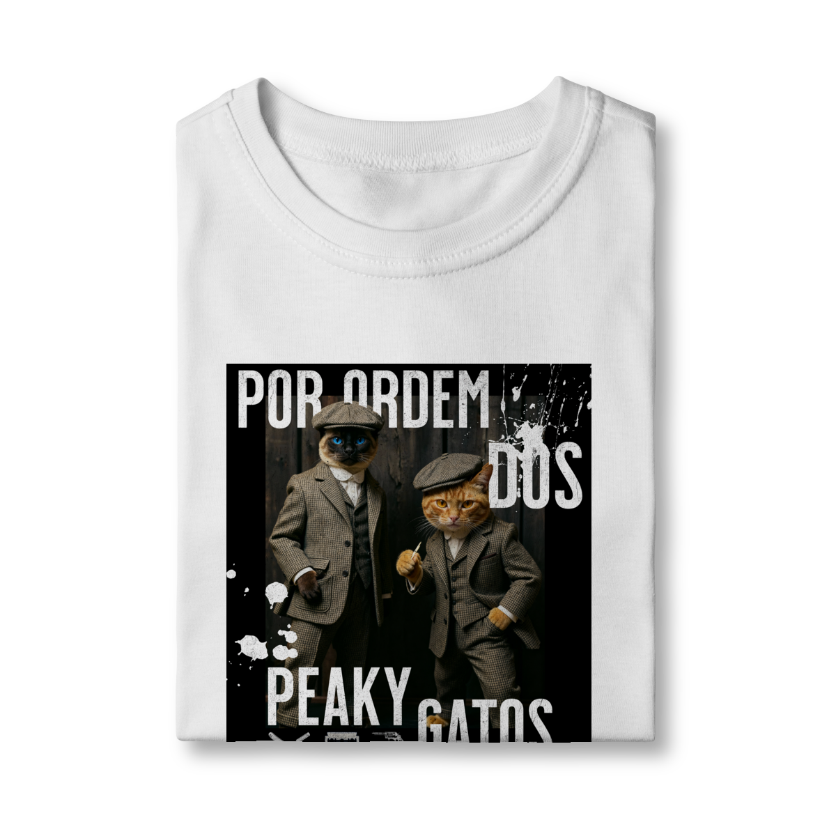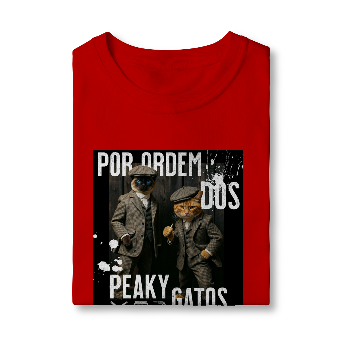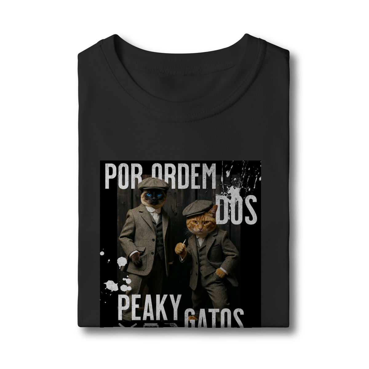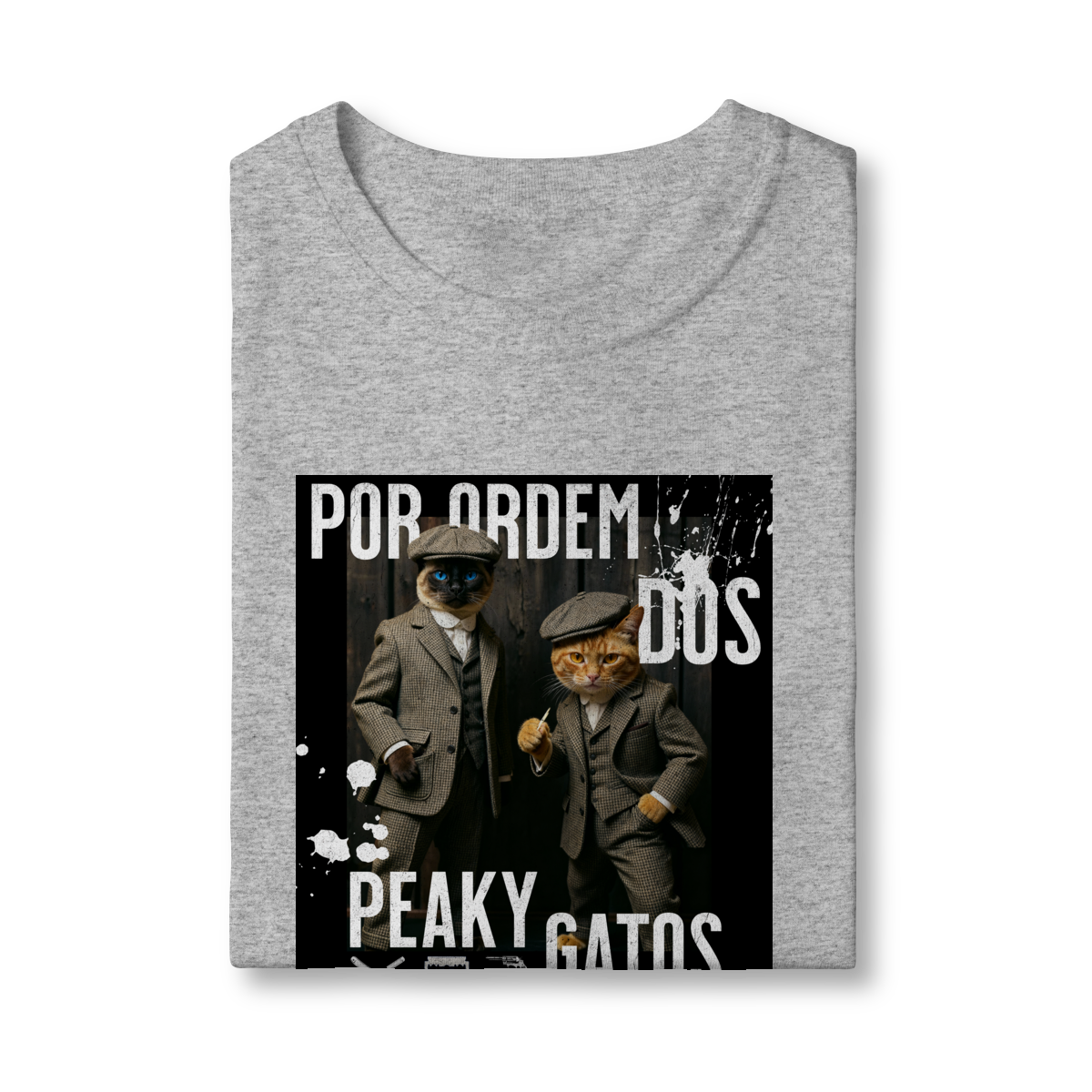 A camiseta Peaky Gatos traz uma paródia divertida no estilo de uma gangue clássica, agora representada por dois gatos vestidos de maneira elegante e com aquele ar sério típico dos personagens. A estampa tem visual marcante, moderno e cheio de atitude, perfeita para quem gosta de cultura pop, humor e camisetas criativas. Confortável e estilosa, combina com qualquer look do dia a dia.