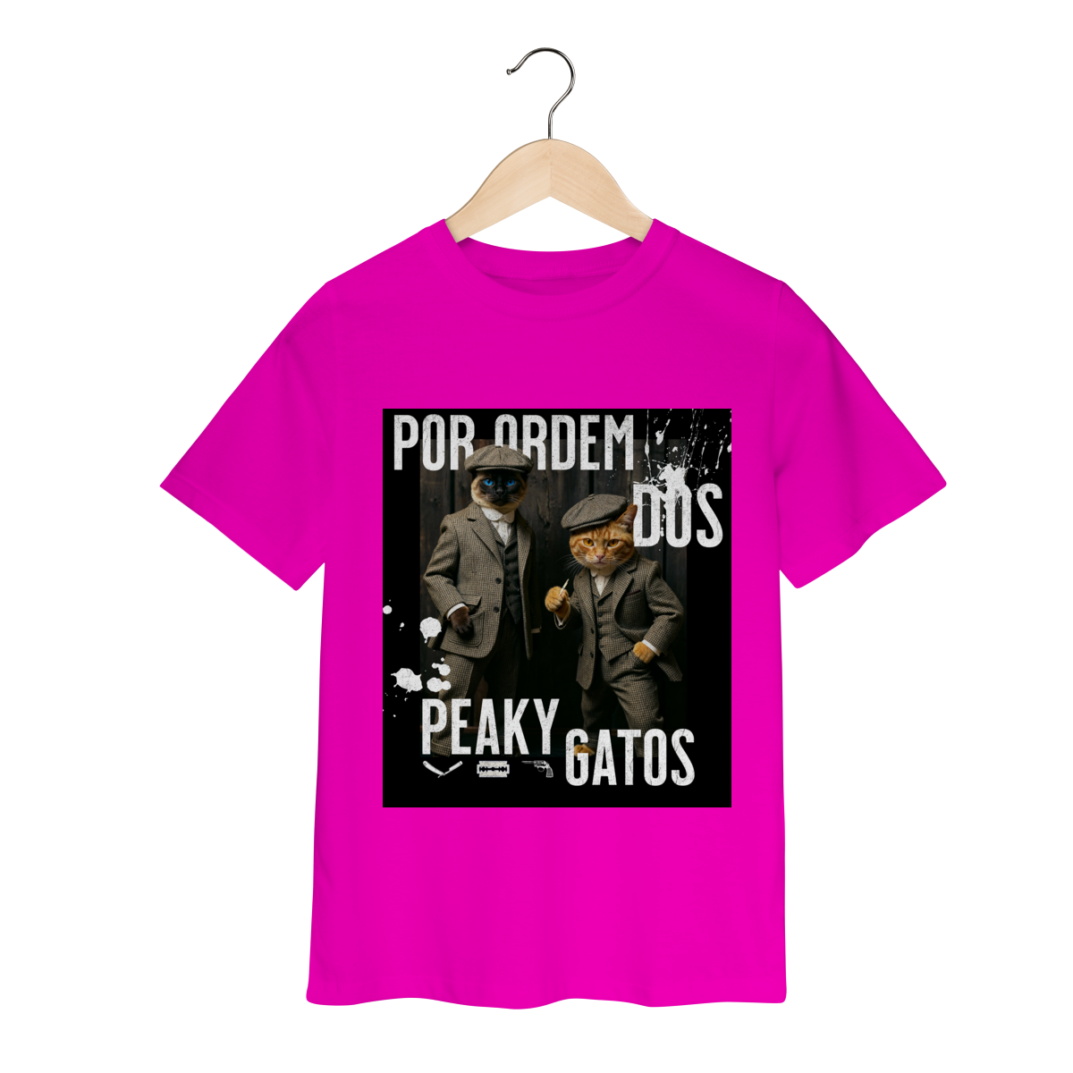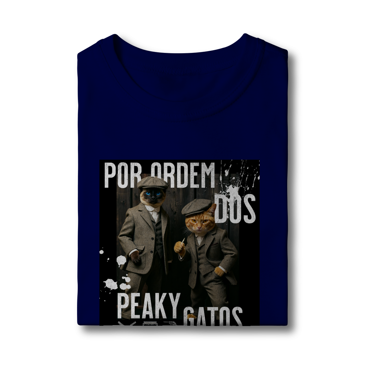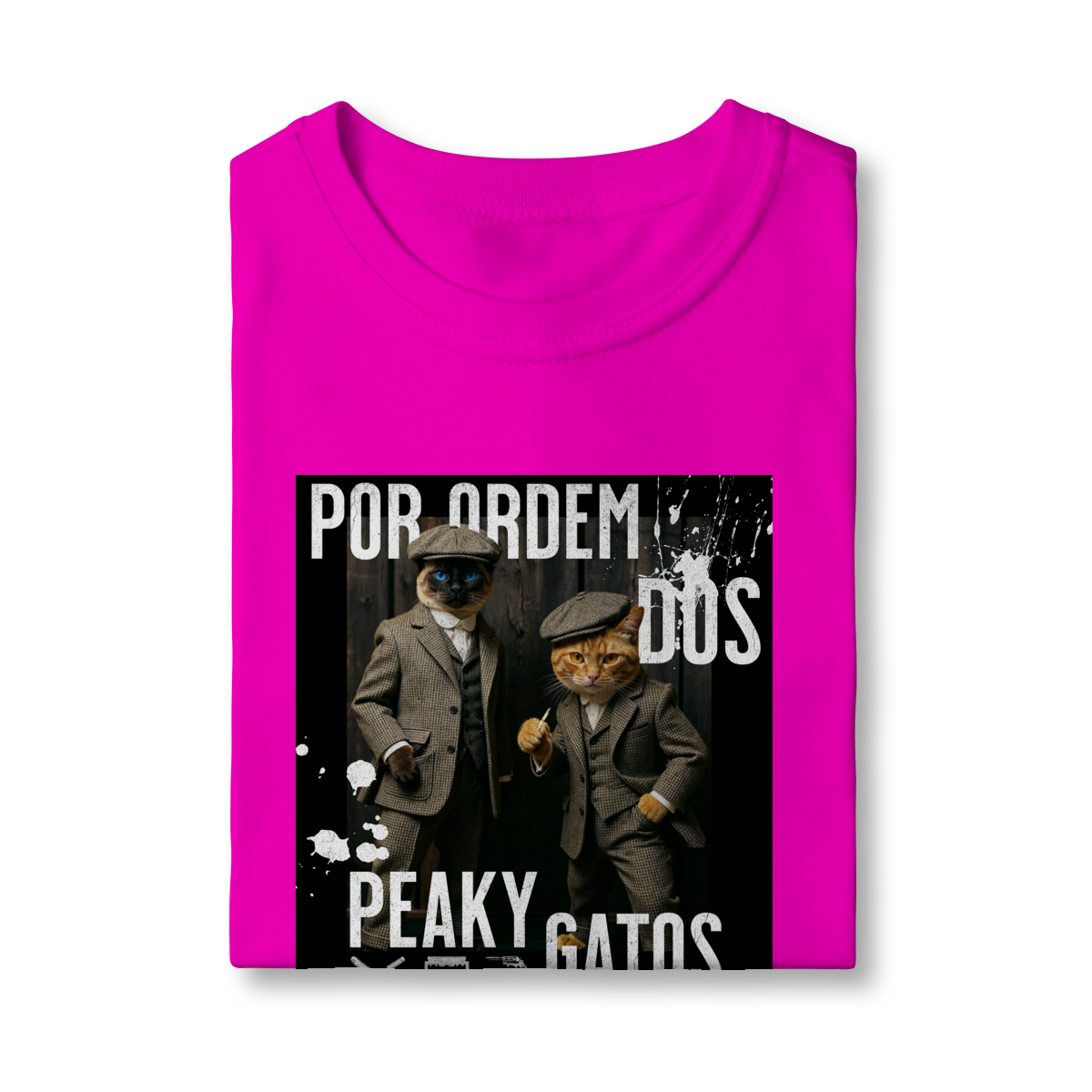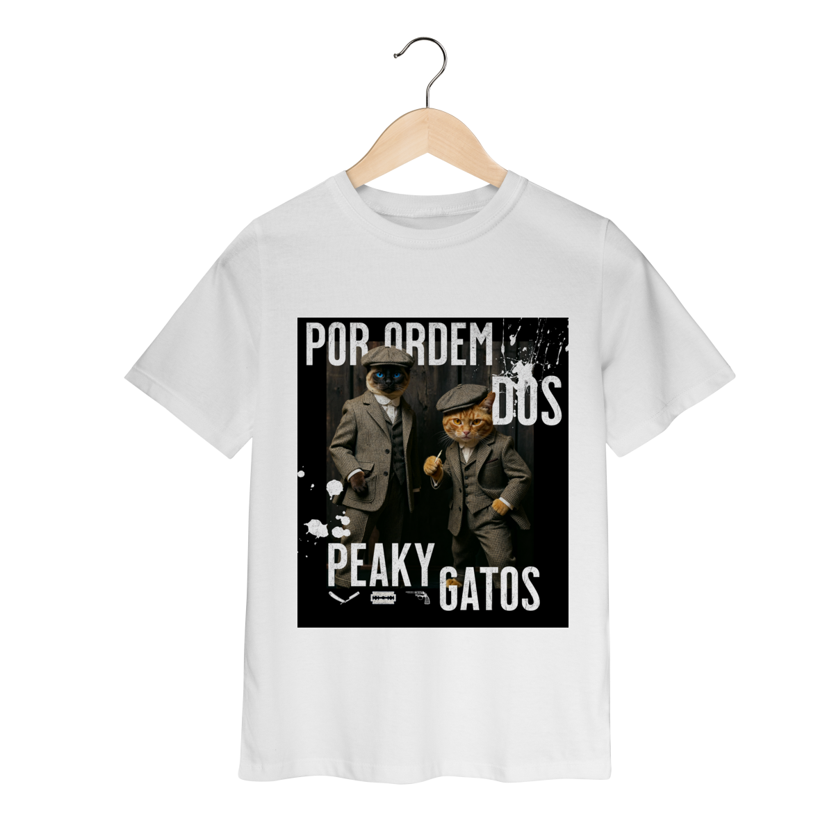 A camiseta Peaky Gatos traz uma paródia divertida no estilo de uma gangue clássica, agora representada por dois gatos vestidos de maneira elegante e com aquele ar sério típico dos personagens. A estampa tem visual marcante, moderno e cheio de atitude, perfeita para quem gosta de cultura pop, humor e camisetas criativas. Confortável e estilosa, combina com qualquer look do dia a dia.