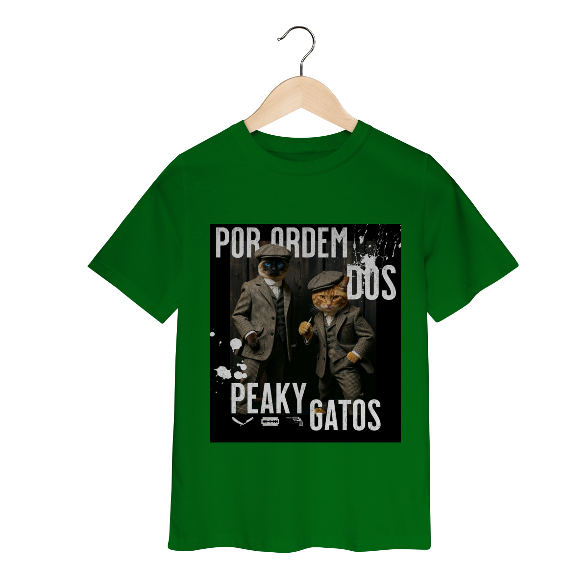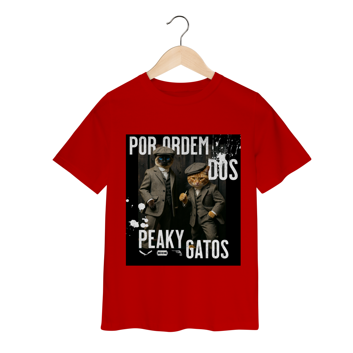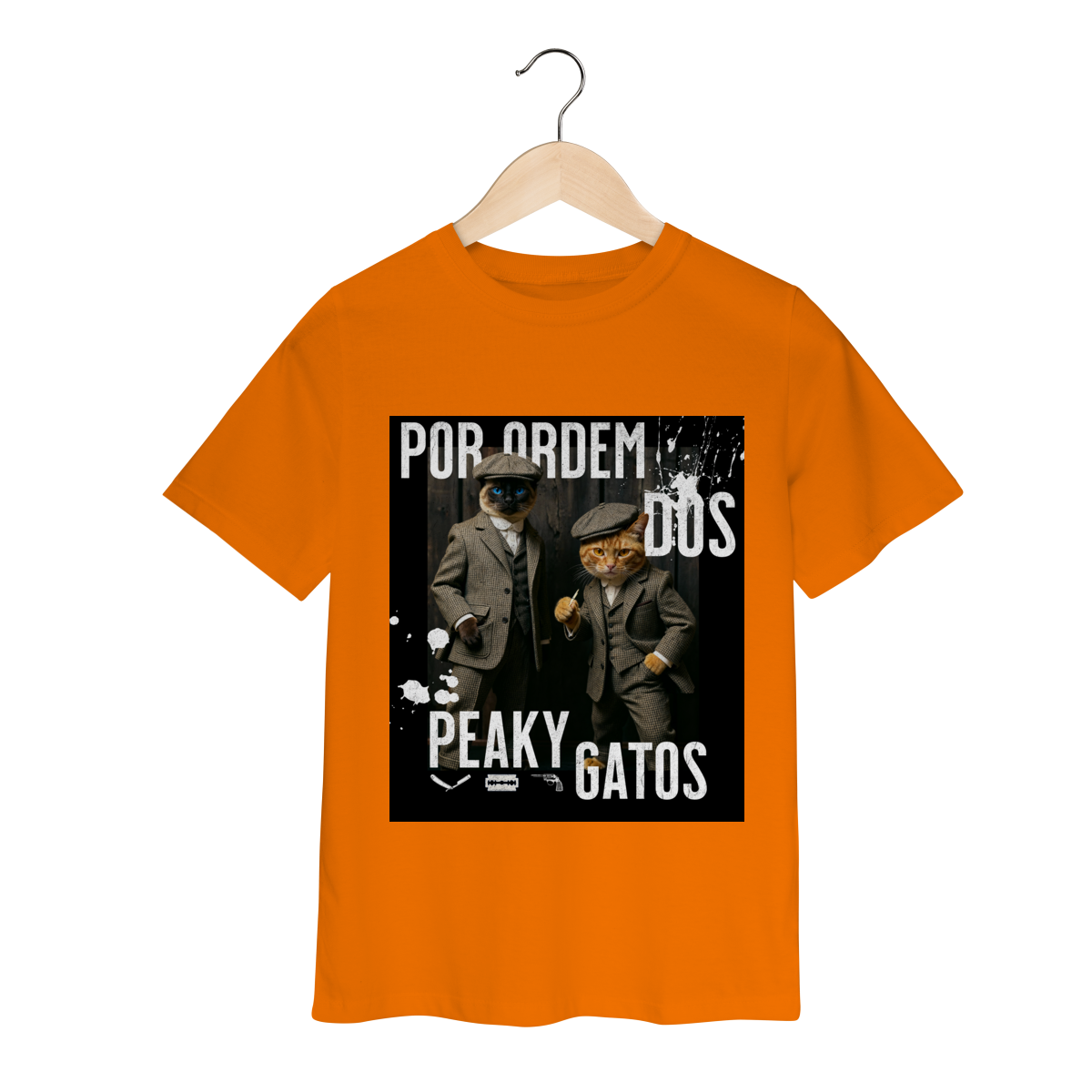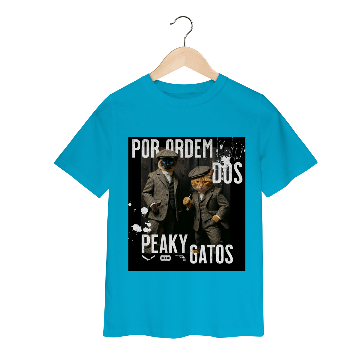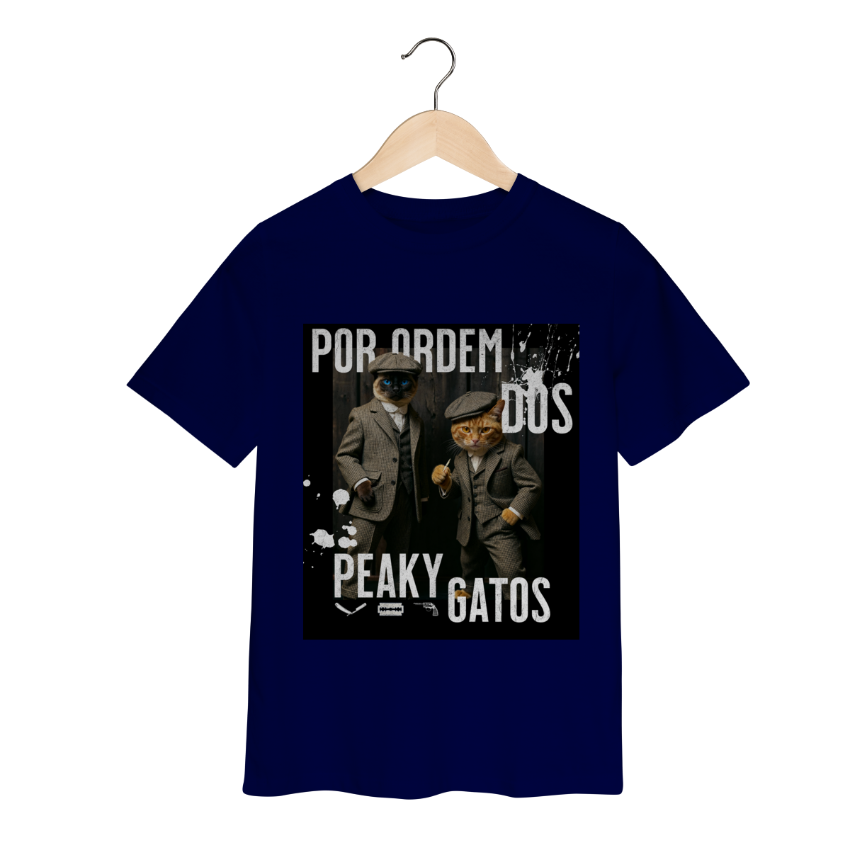 A camiseta Peaky Gatos traz uma paródia divertida no estilo de uma gangue clássica, agora representada por dois gatos vestidos de maneira elegante e com aquele ar sério típico dos personagens. A estampa tem visual marcante, moderno e cheio de atitude, perfeita para quem gosta de cultura pop, humor e camisetas criativas. Confortável e estilosa, combina com qualquer look do dia a dia.