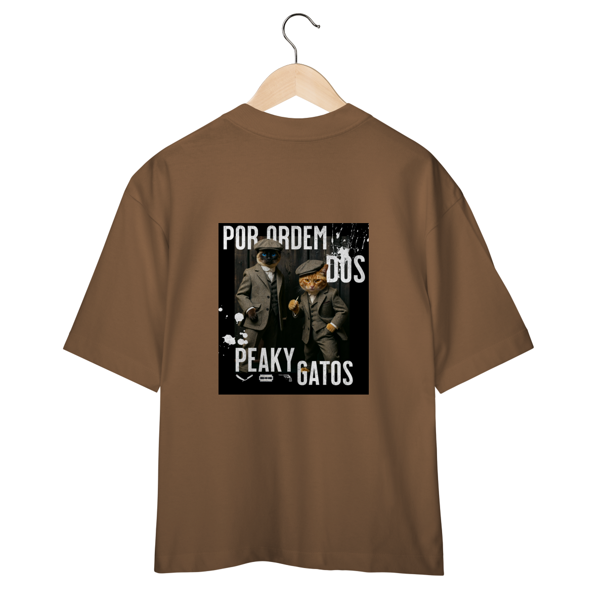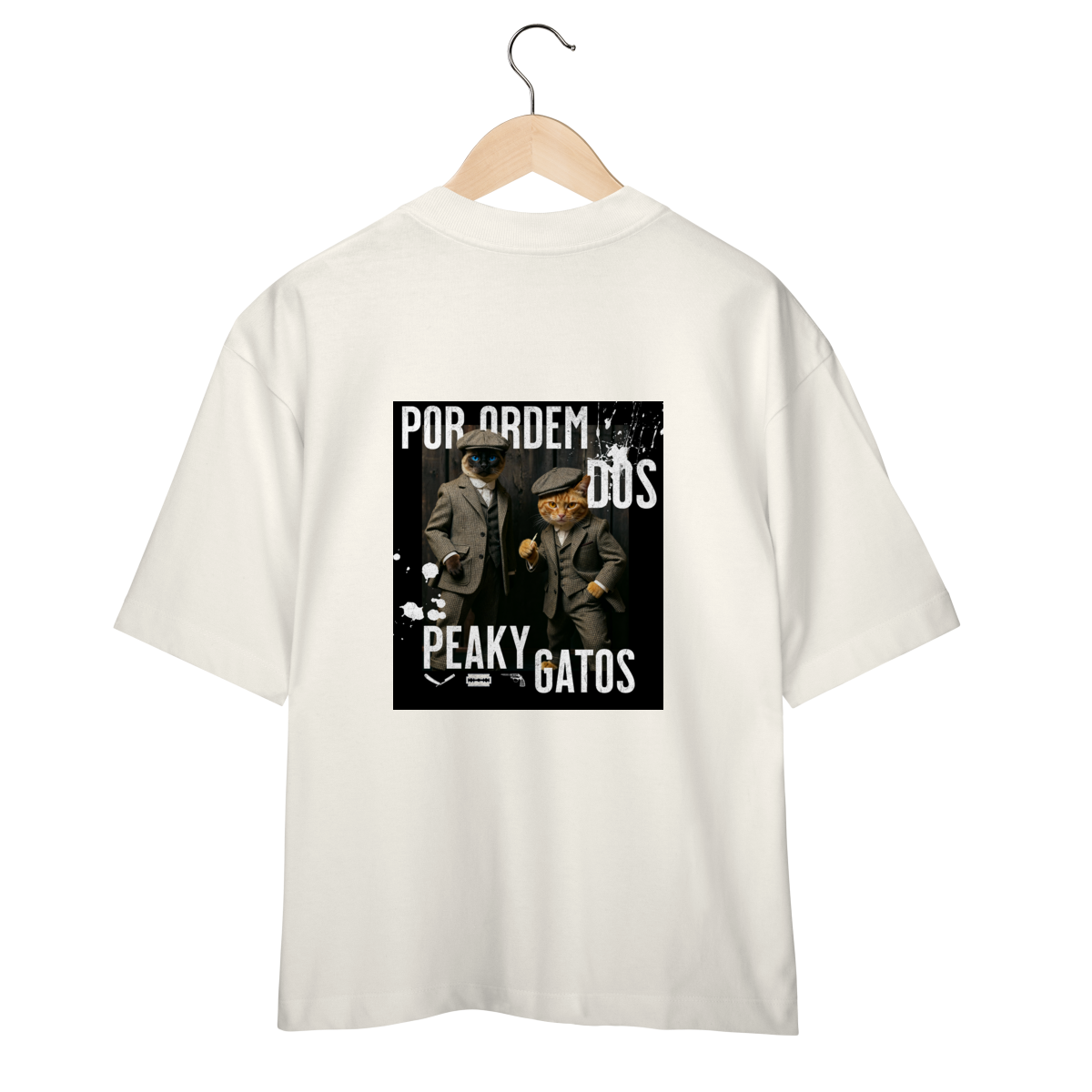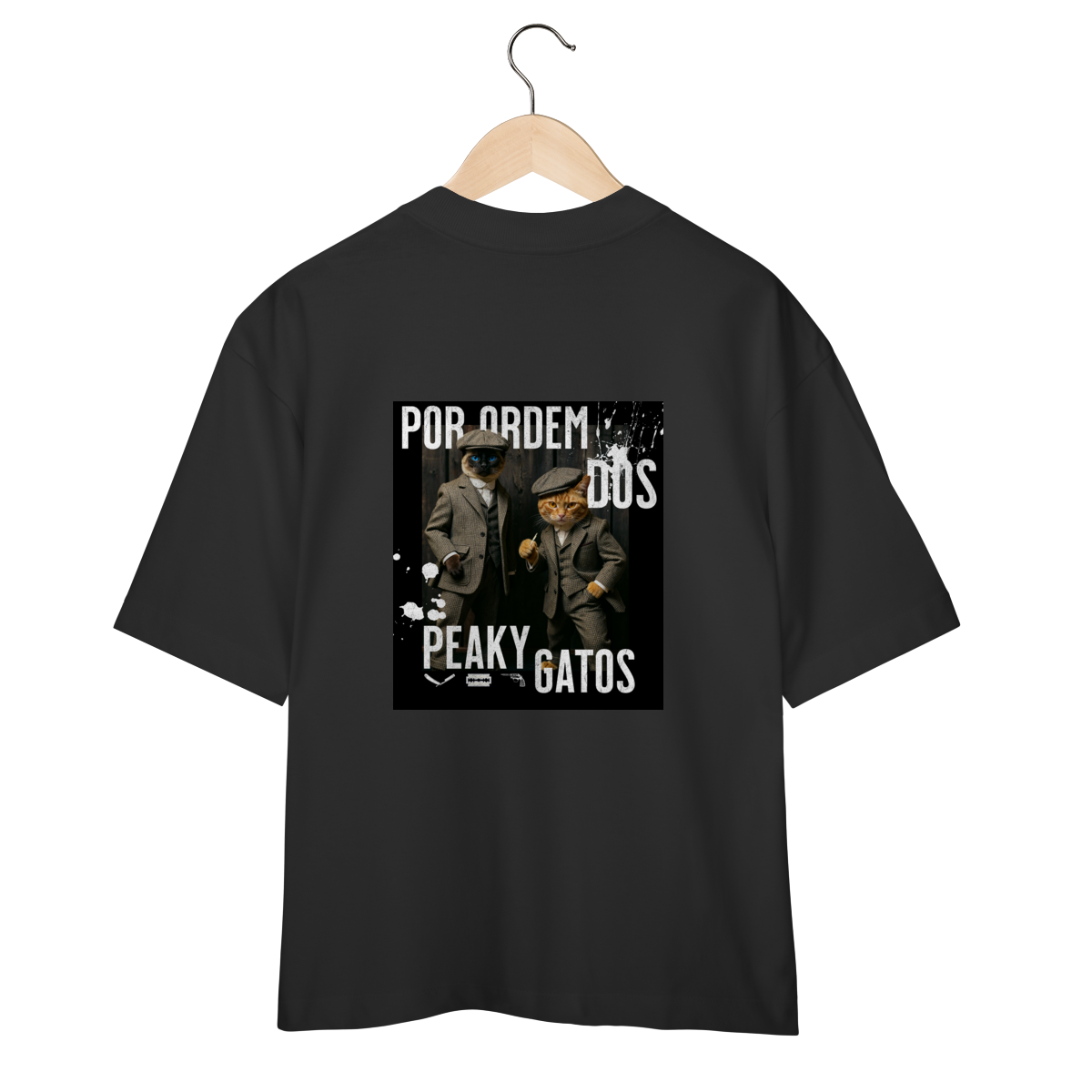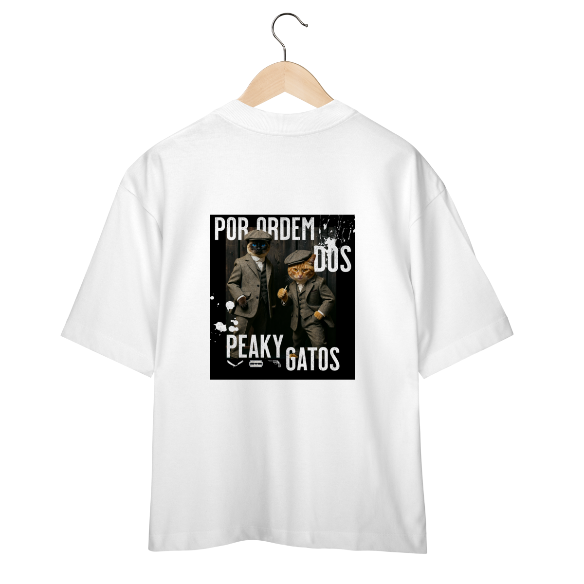 A camiseta Peaky Gatos traz uma paródia divertida no estilo de uma gangue clássica, agora representada por dois gatos vestidos de maneira elegante e com aquele ar sério típico dos personagens. A estampa tem visual marcante, moderno e cheio de atitude, perfeita para quem gosta de cultura pop, humor e camisetas criativas. Confortável e estilosa, combina com qualquer look do dia a dia.