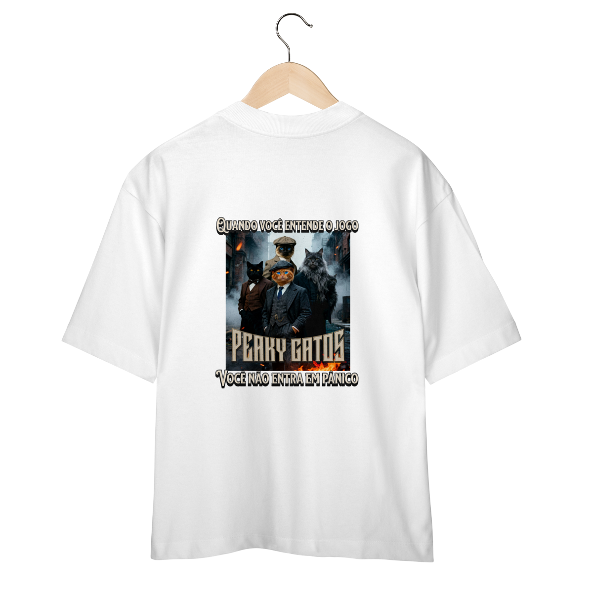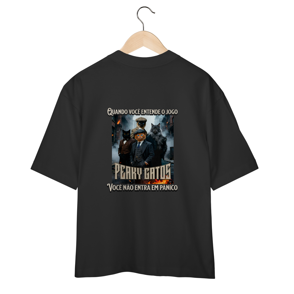 A camiseta Peaky Gatos traz uma paródia divertida no estilo de uma gangue clássica, só que formada por gatos com roupas elegantes e clima de ação. A estampa é estilosa, com visual sombrio e cheio de personalidade, perfeita para quem ama humor, cultura pop e camisetas criativas. Confortável, moderna e ideal para usar no dia a dia ou dar de presente.