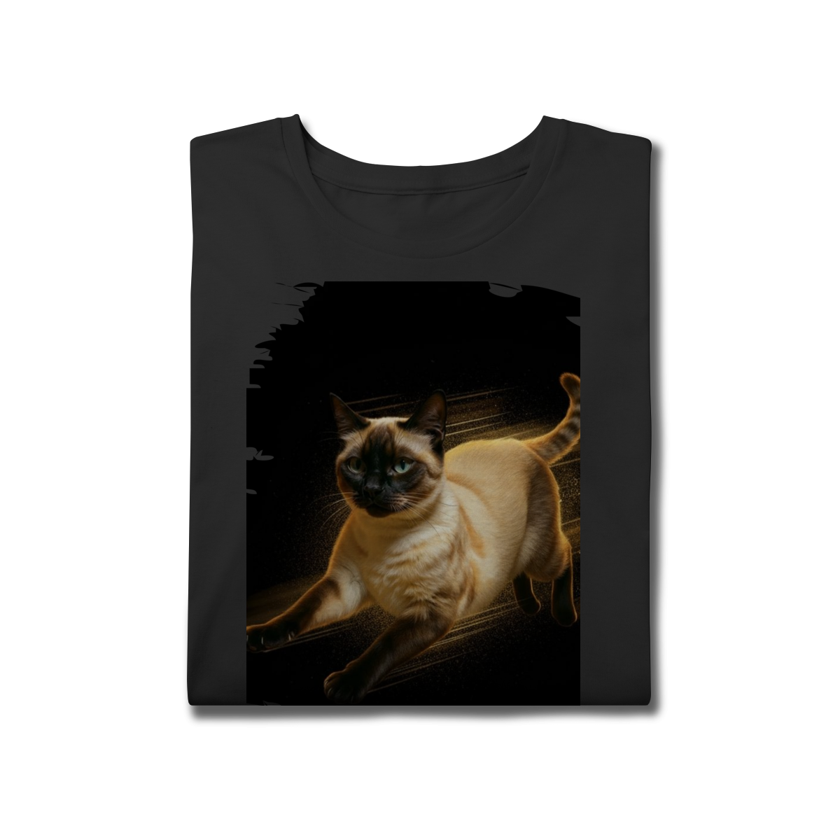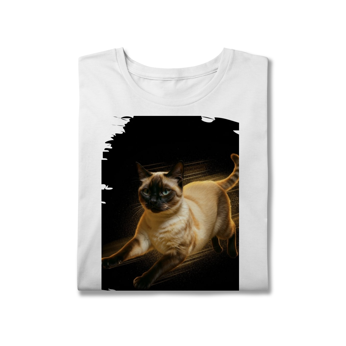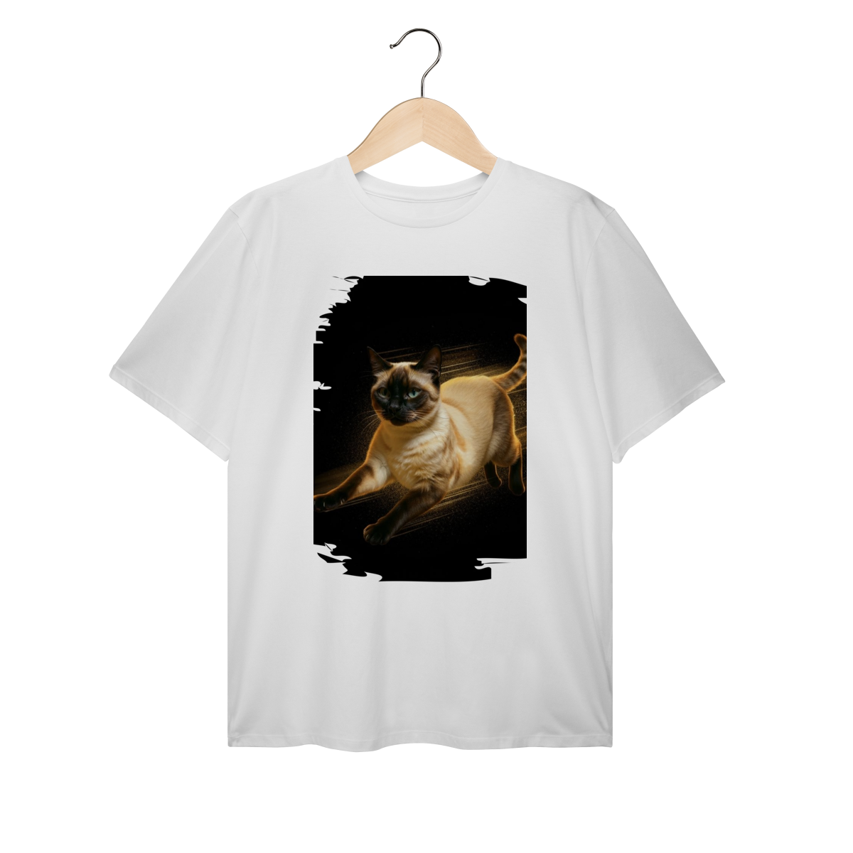 A arte transmite velocidade, atitude e elegância felina, perfeita para quem ama gatos ativos e estampas que passam a sensação de ação e liberdade.