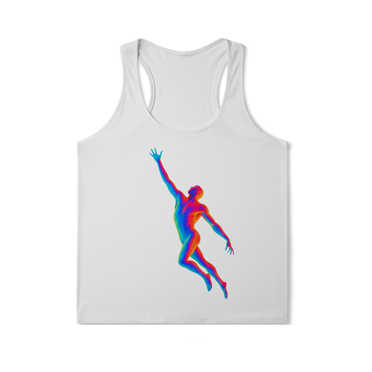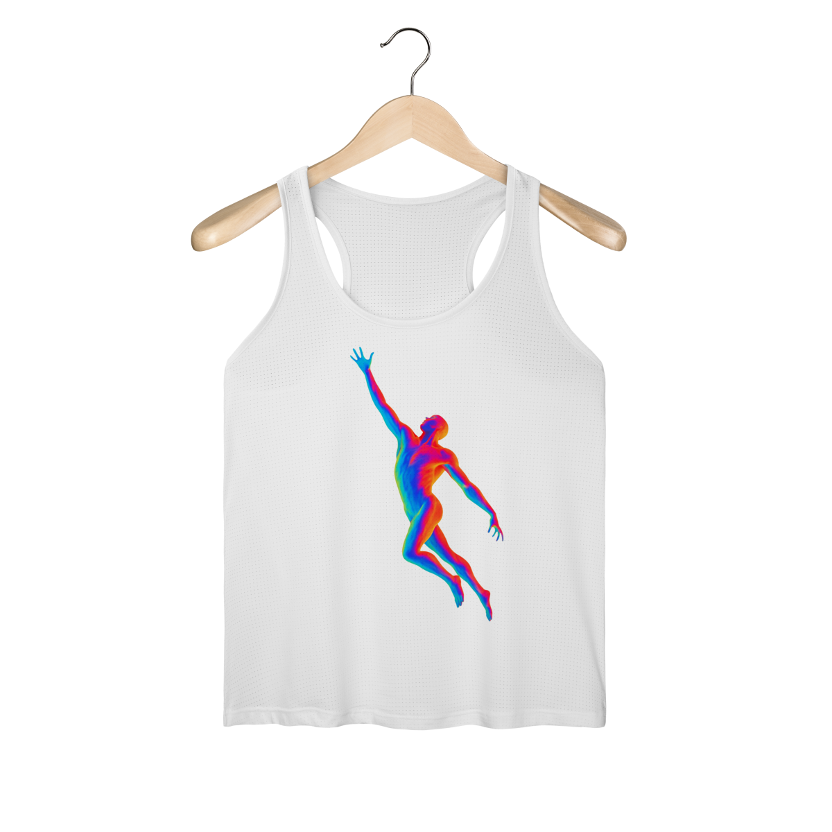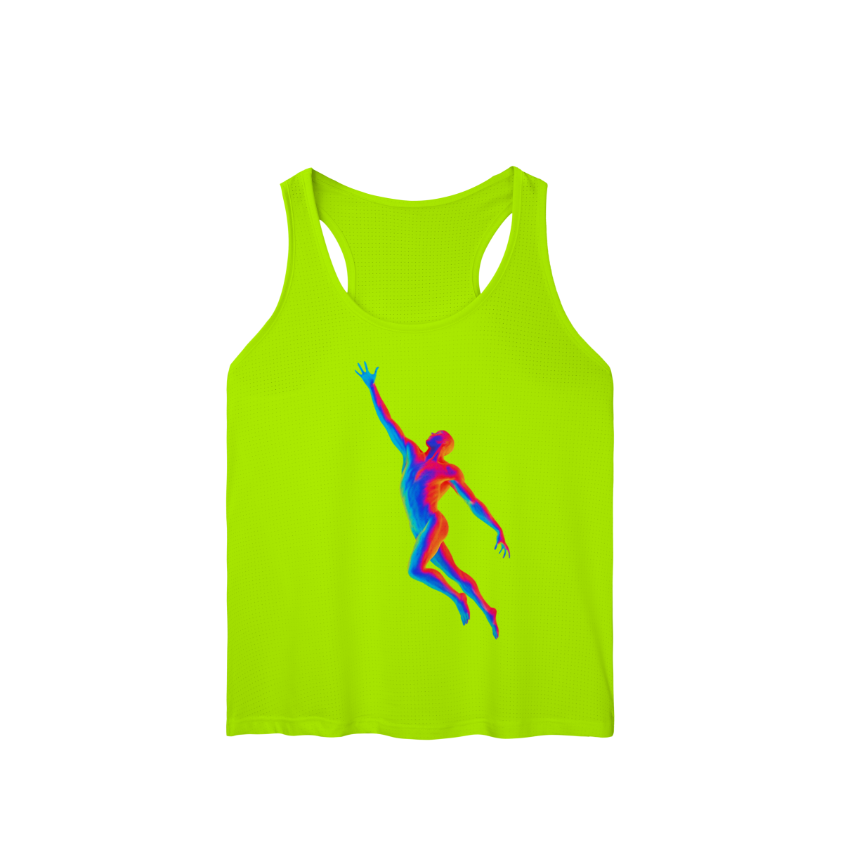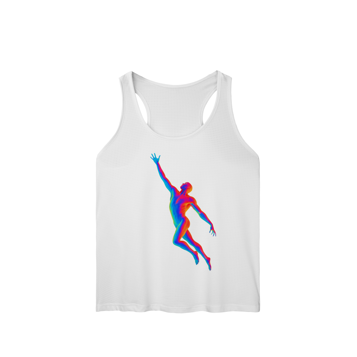 A Ascensão Psicodélica traz uma figura humana em posição de elevação, representada em cores vibrantes que criam um efeito térmico e surreal.