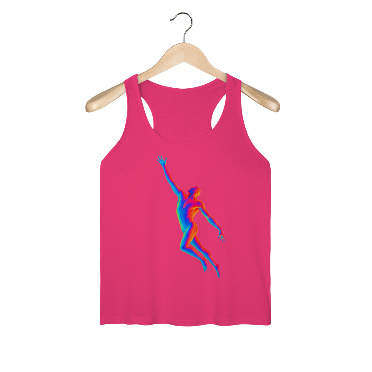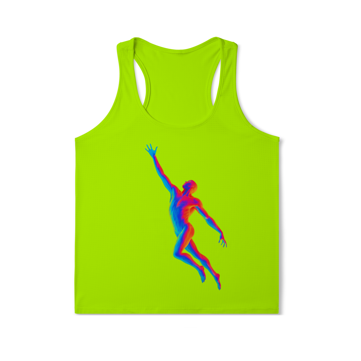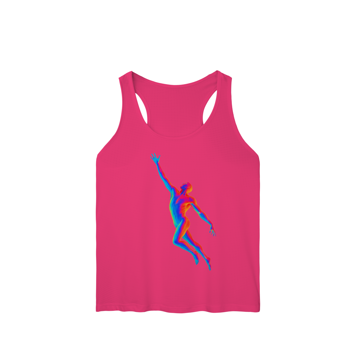A Ascensão Psicodélica traz uma figura humana em posição de elevação, representada em cores vibrantes que criam um efeito térmico e surreal.