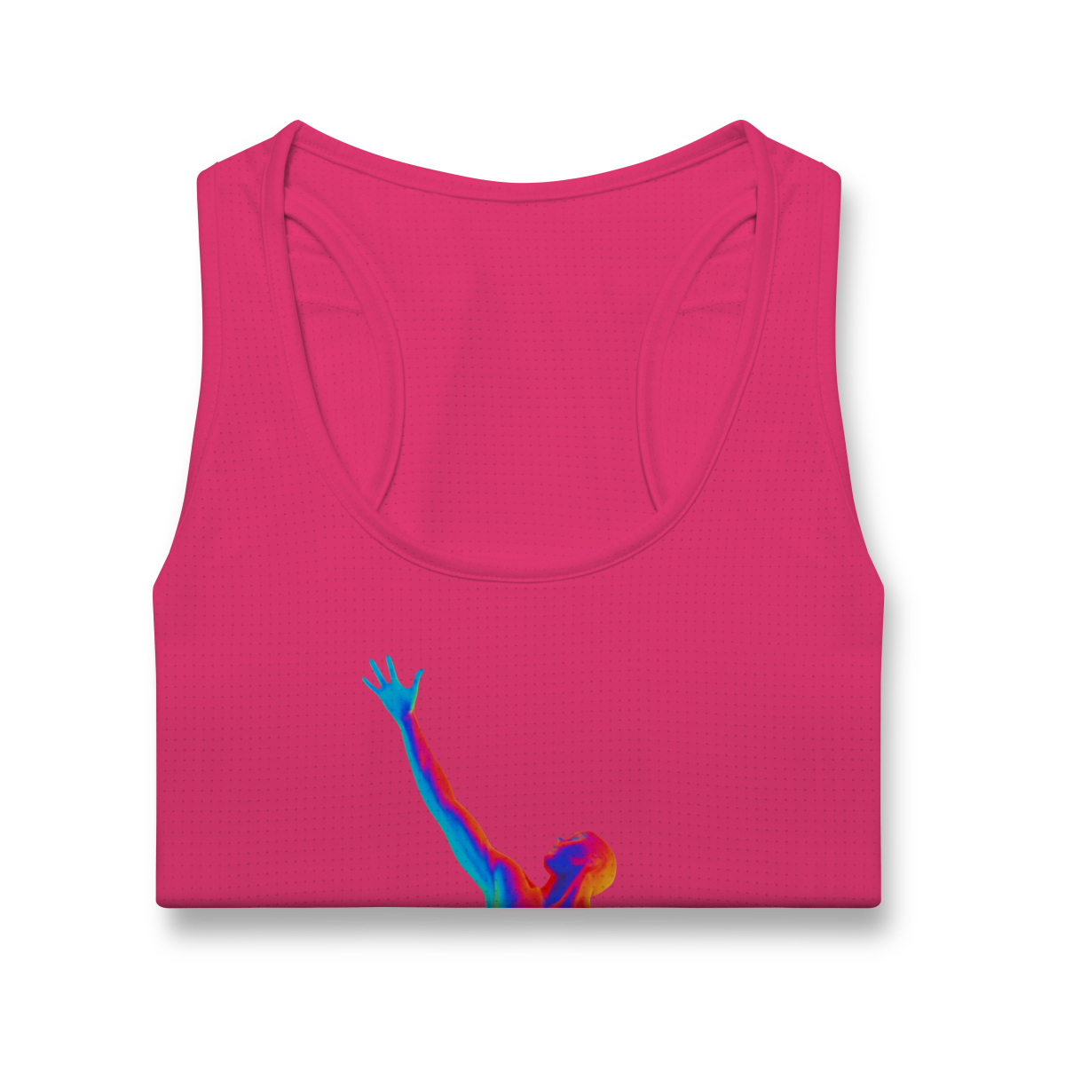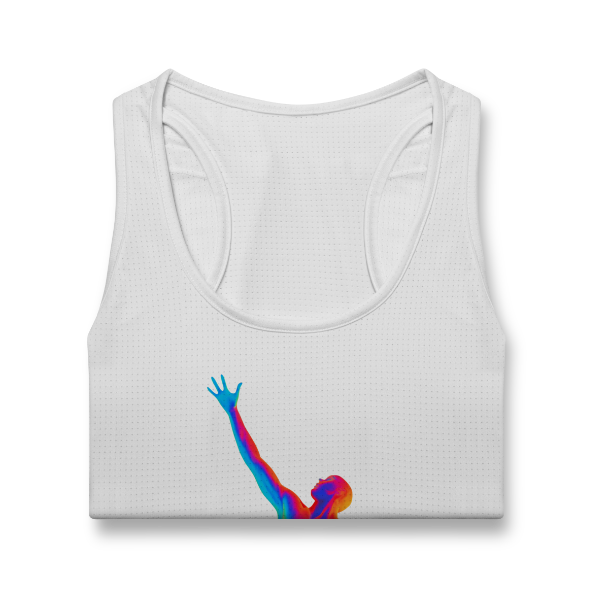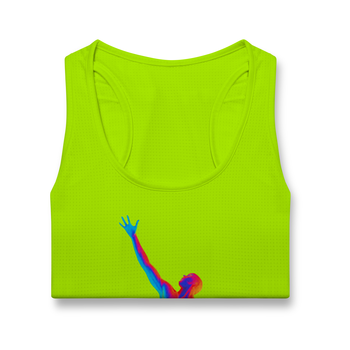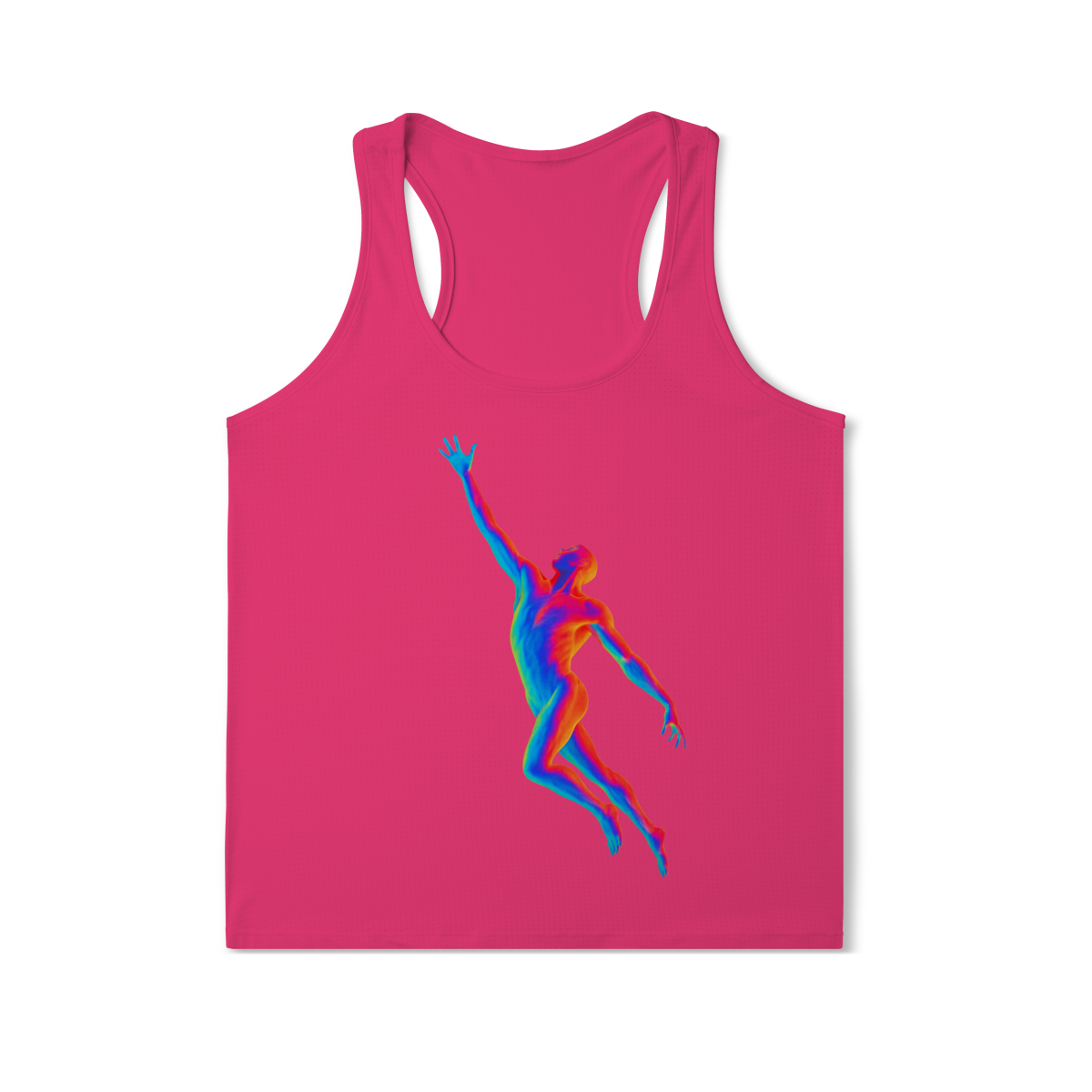 A Ascensão Psicodélica traz uma figura humana em posição de elevação, representada em cores vibrantes que criam um efeito térmico e surreal.
