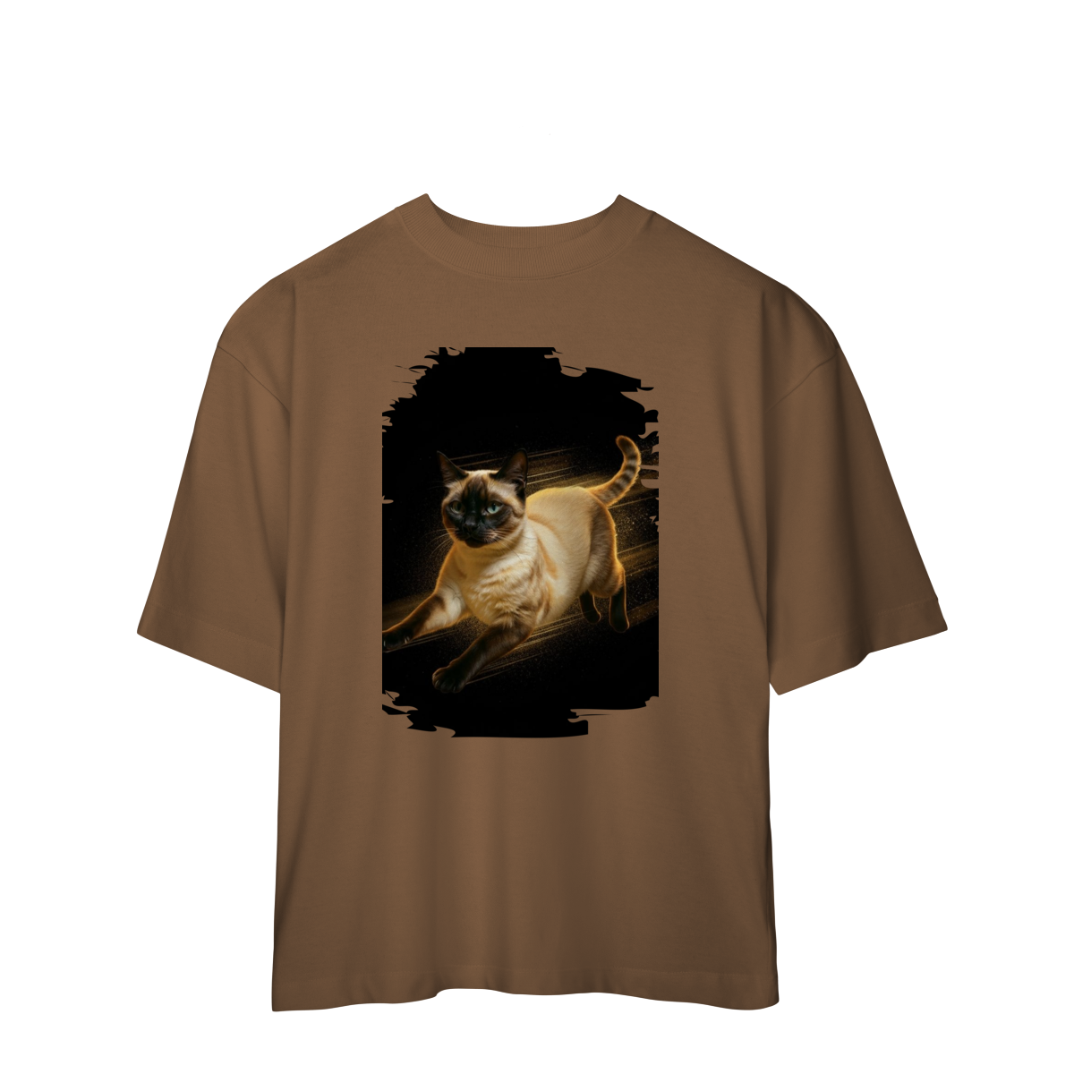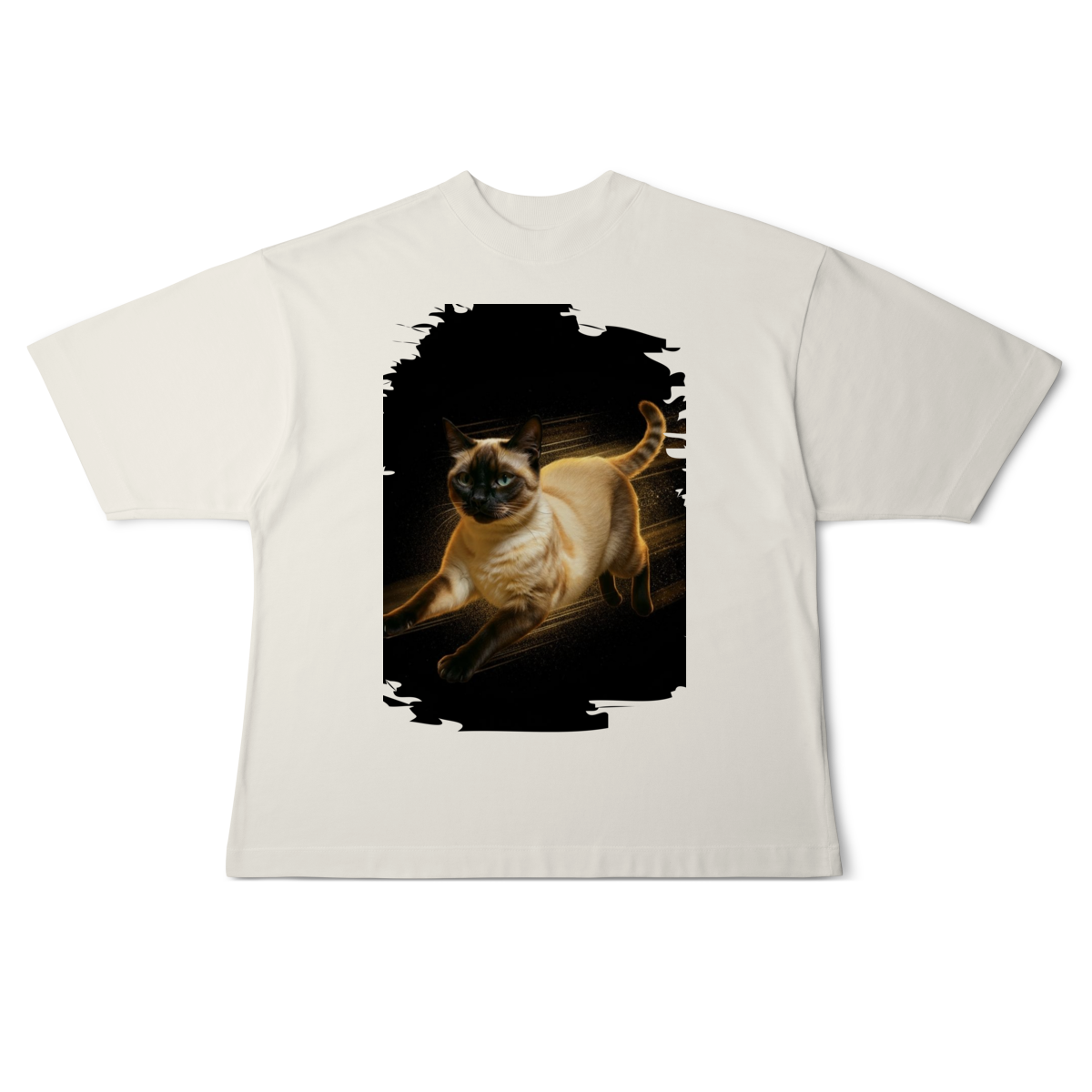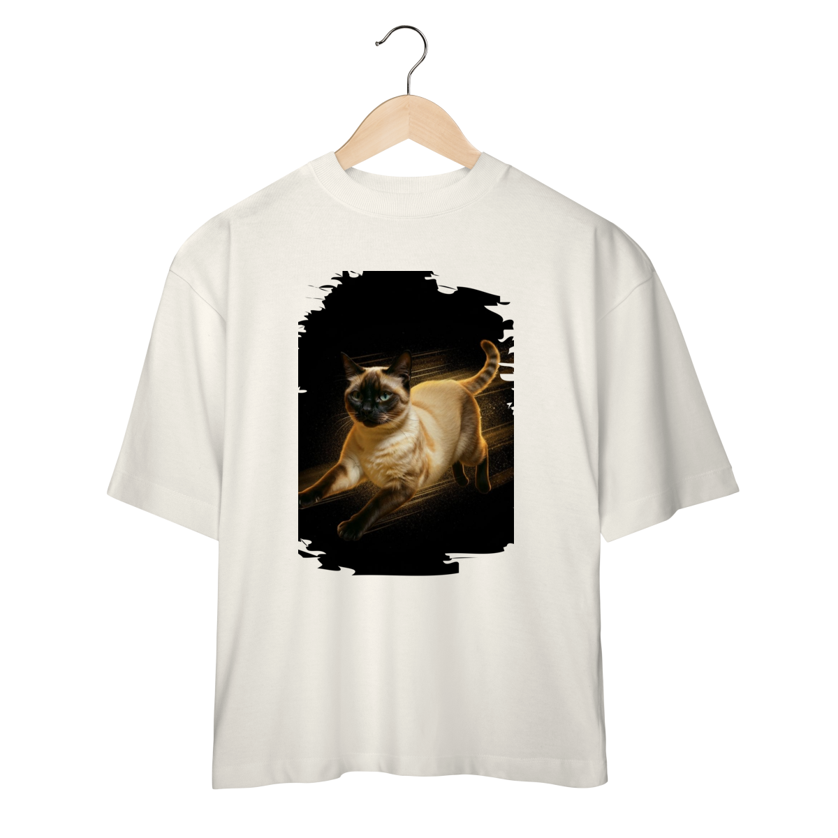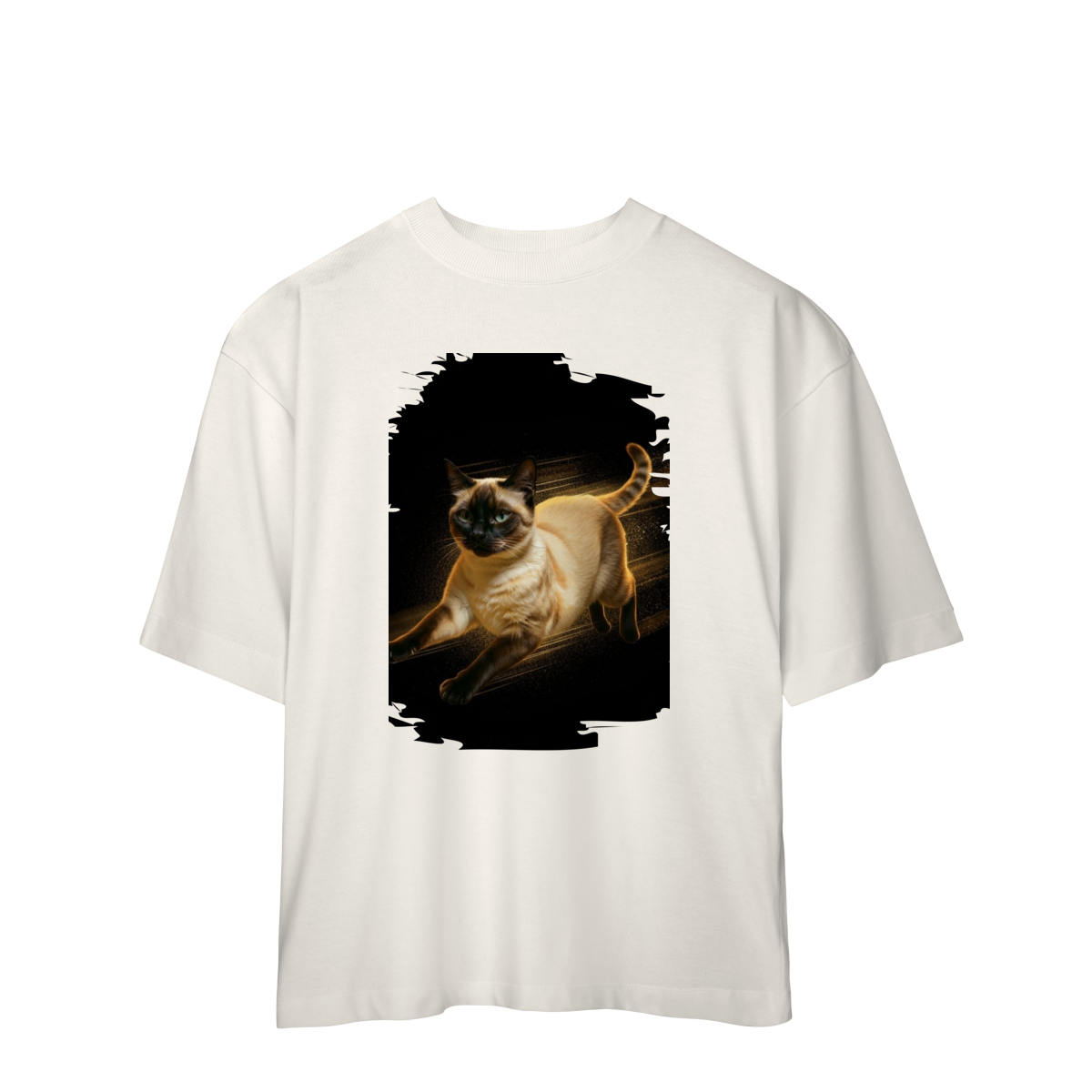 Diretamente do universo cheio de energia de Kikito & Amarelinho, esta estampa traz um gato em movimento, com expressão focada e corpo iluminado por um brilho quente que destaca cada detalhe da pelagem.