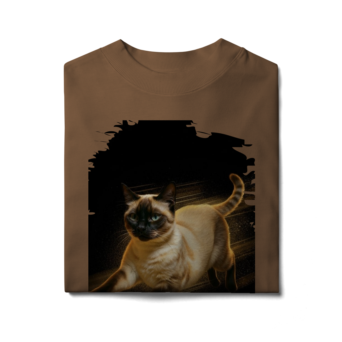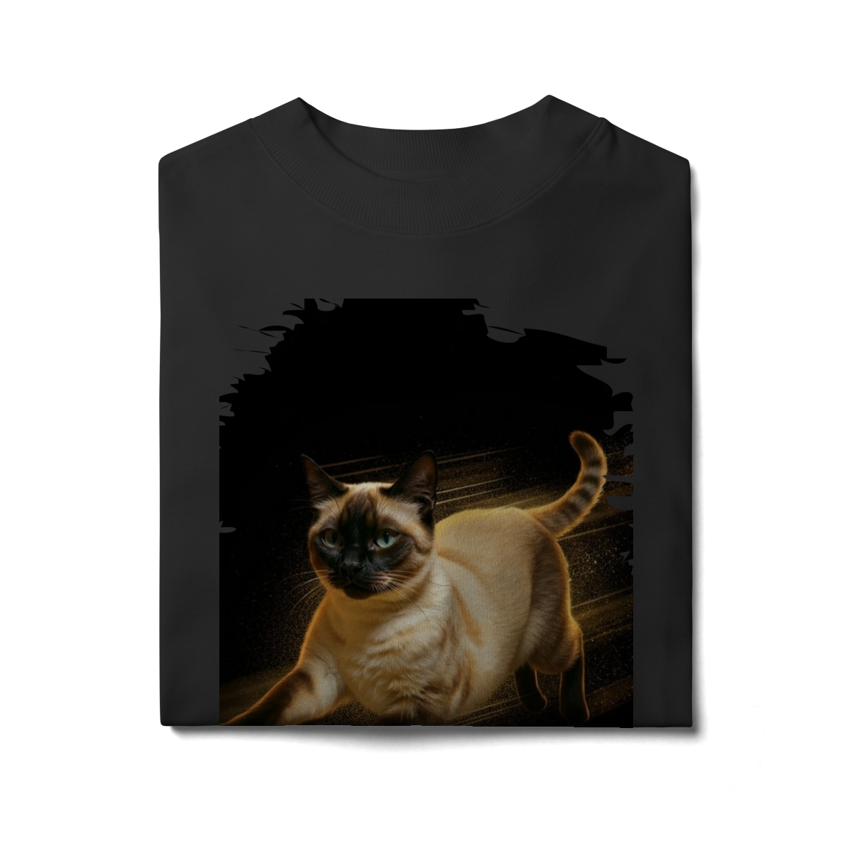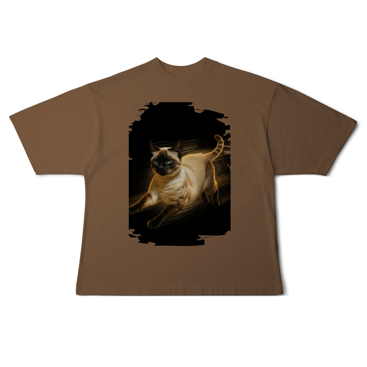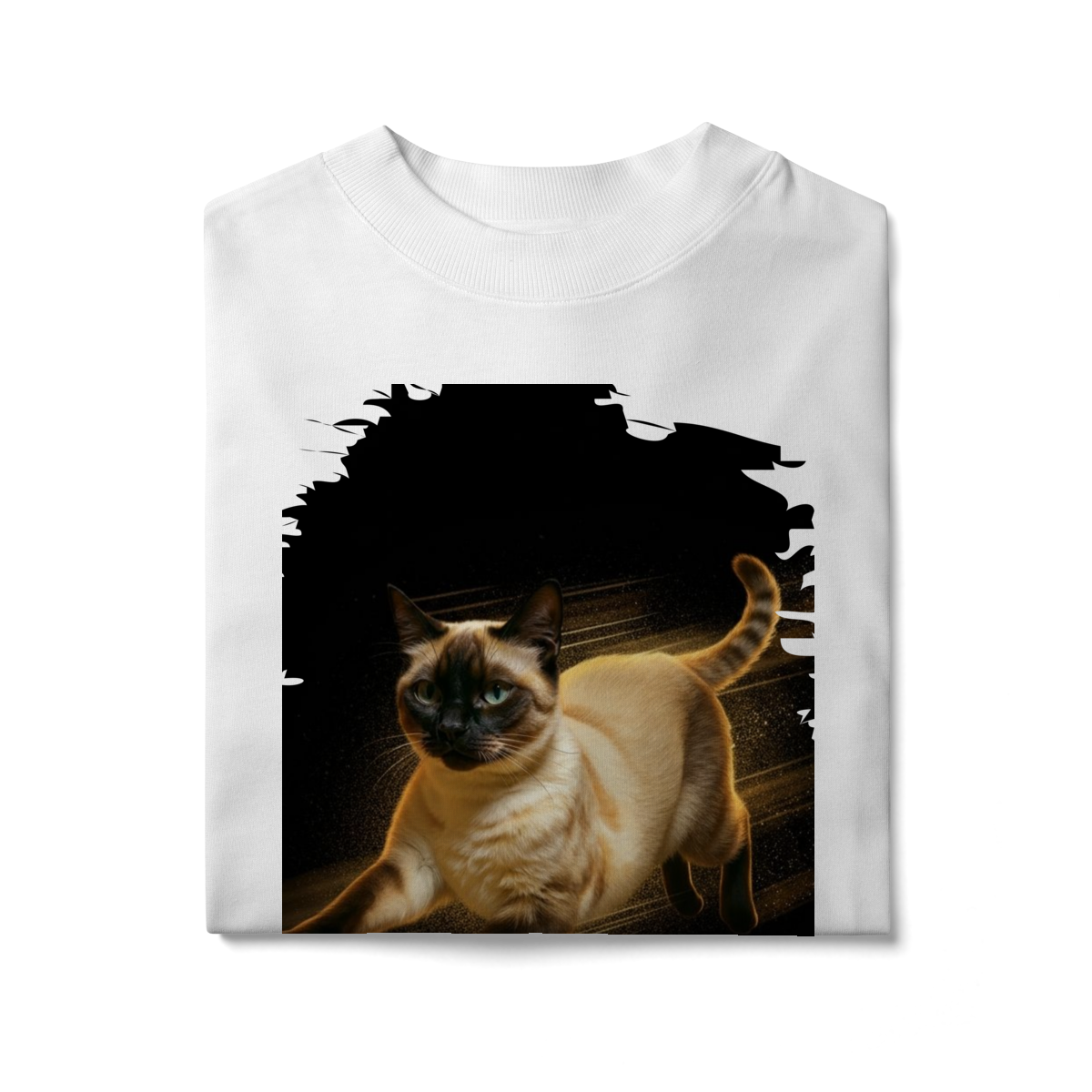Diretamente do universo cheio de energia de Kikito & Amarelinho, esta estampa traz um gato em movimento, com expressão focada e corpo iluminado por um brilho quente que destaca cada detalhe da pelagem.