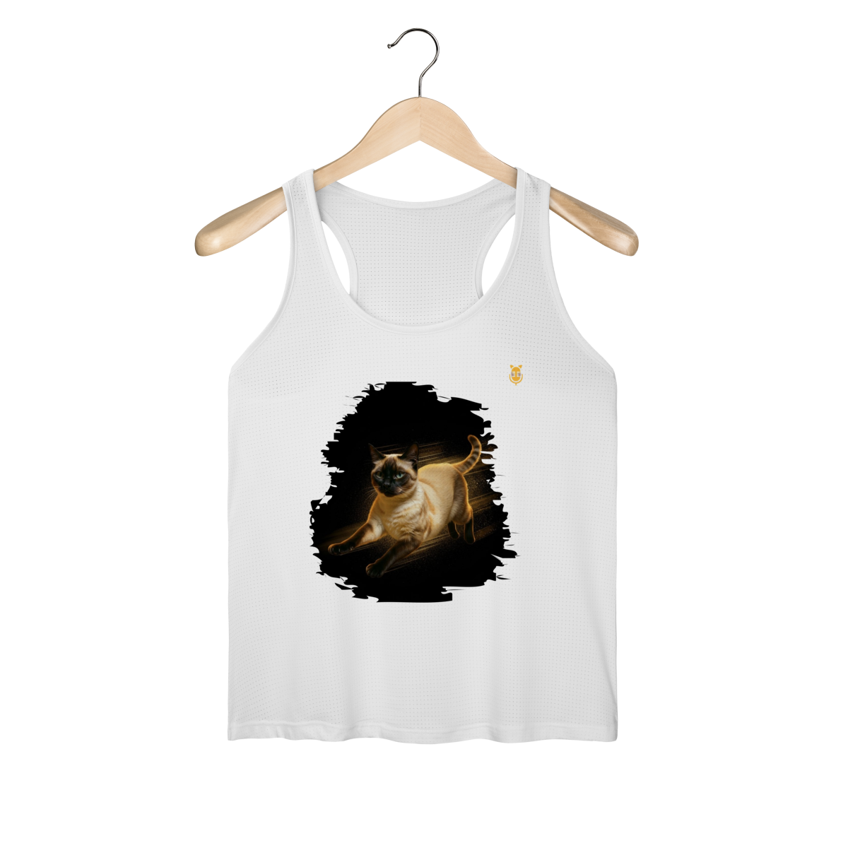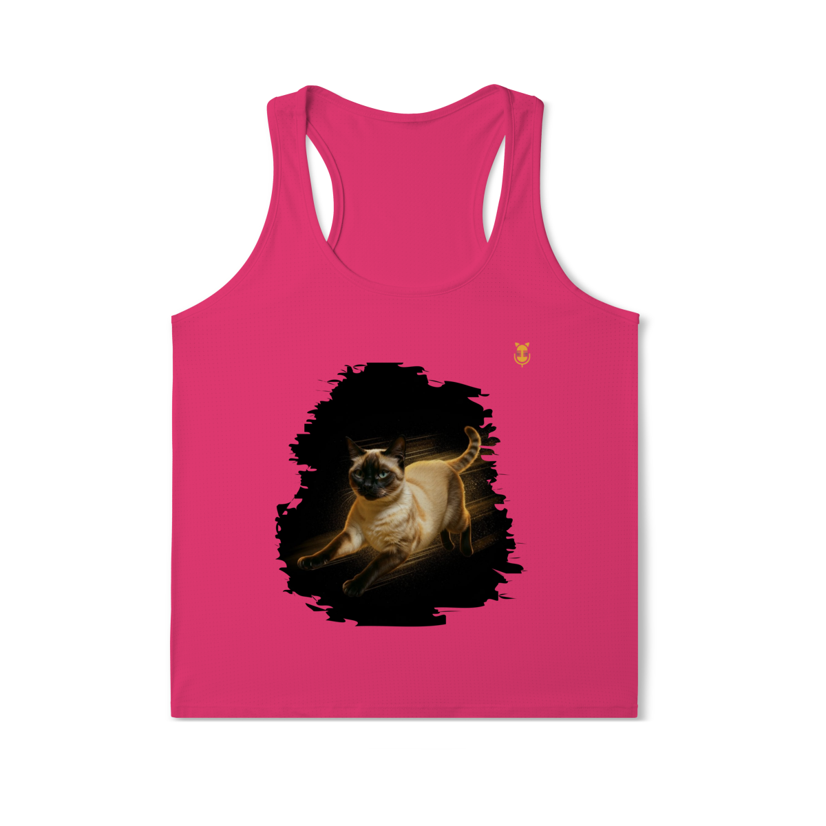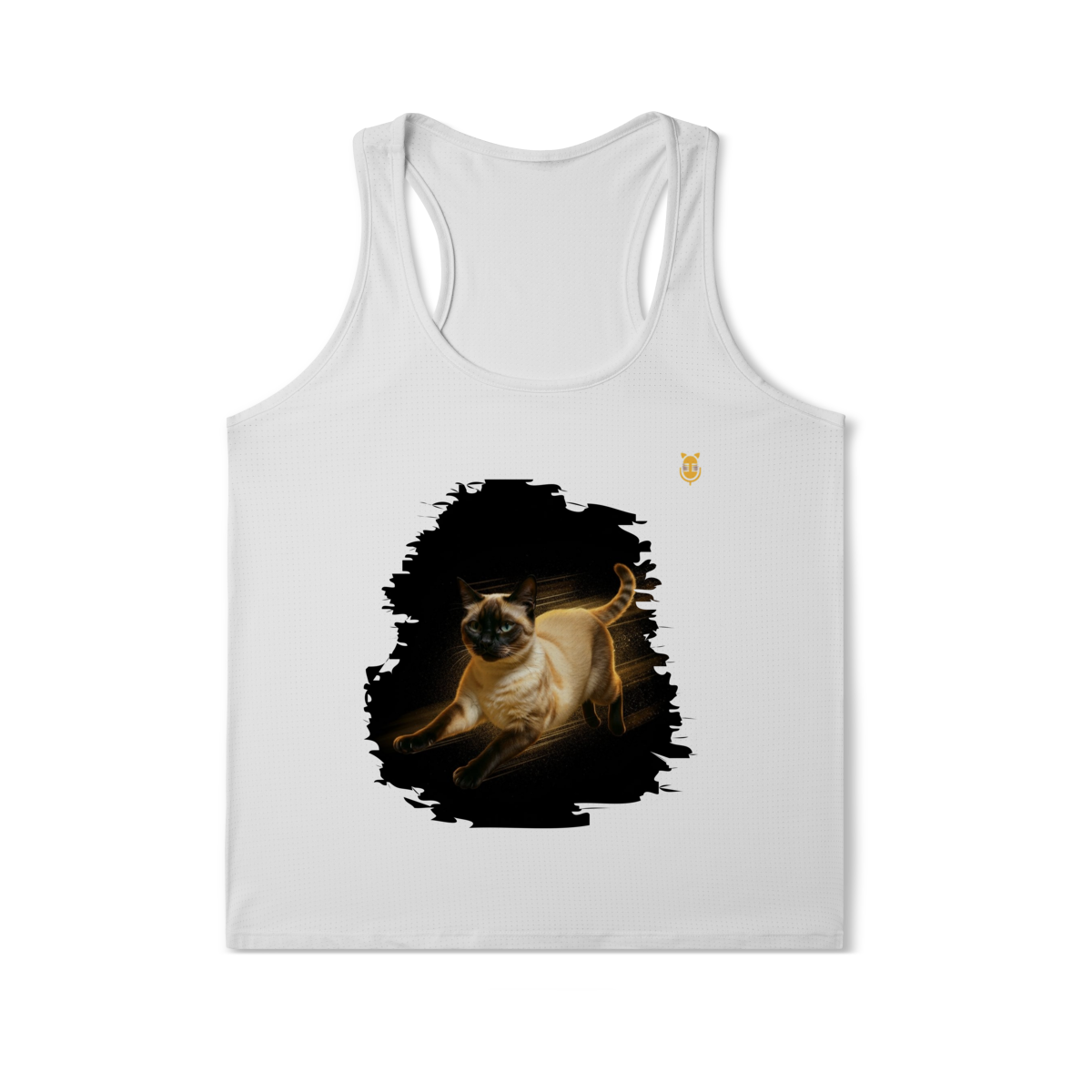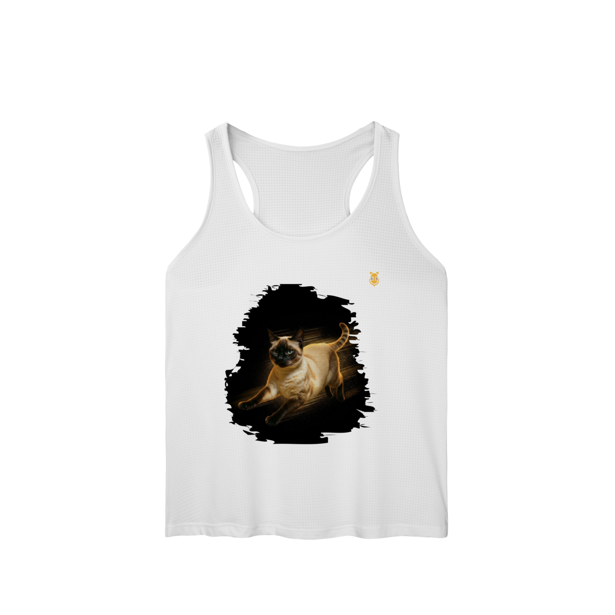 A arte transmite velocidade, atitude e elegância felina, perfeita para quem ama gatos ativos e estampas que passam a sensação de ação e liberdade.