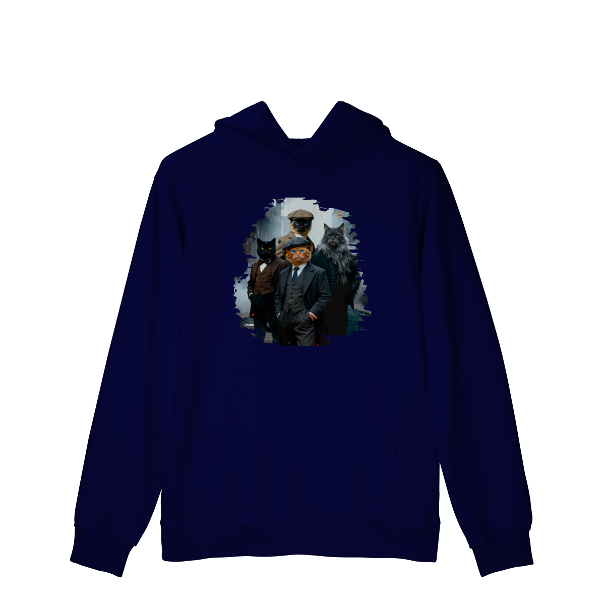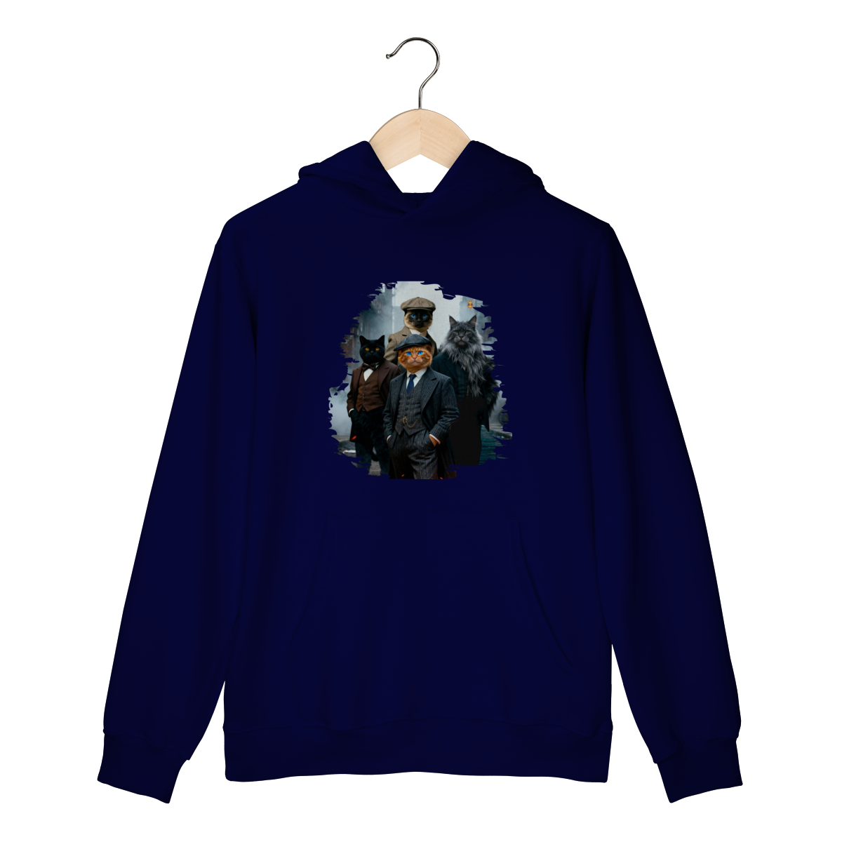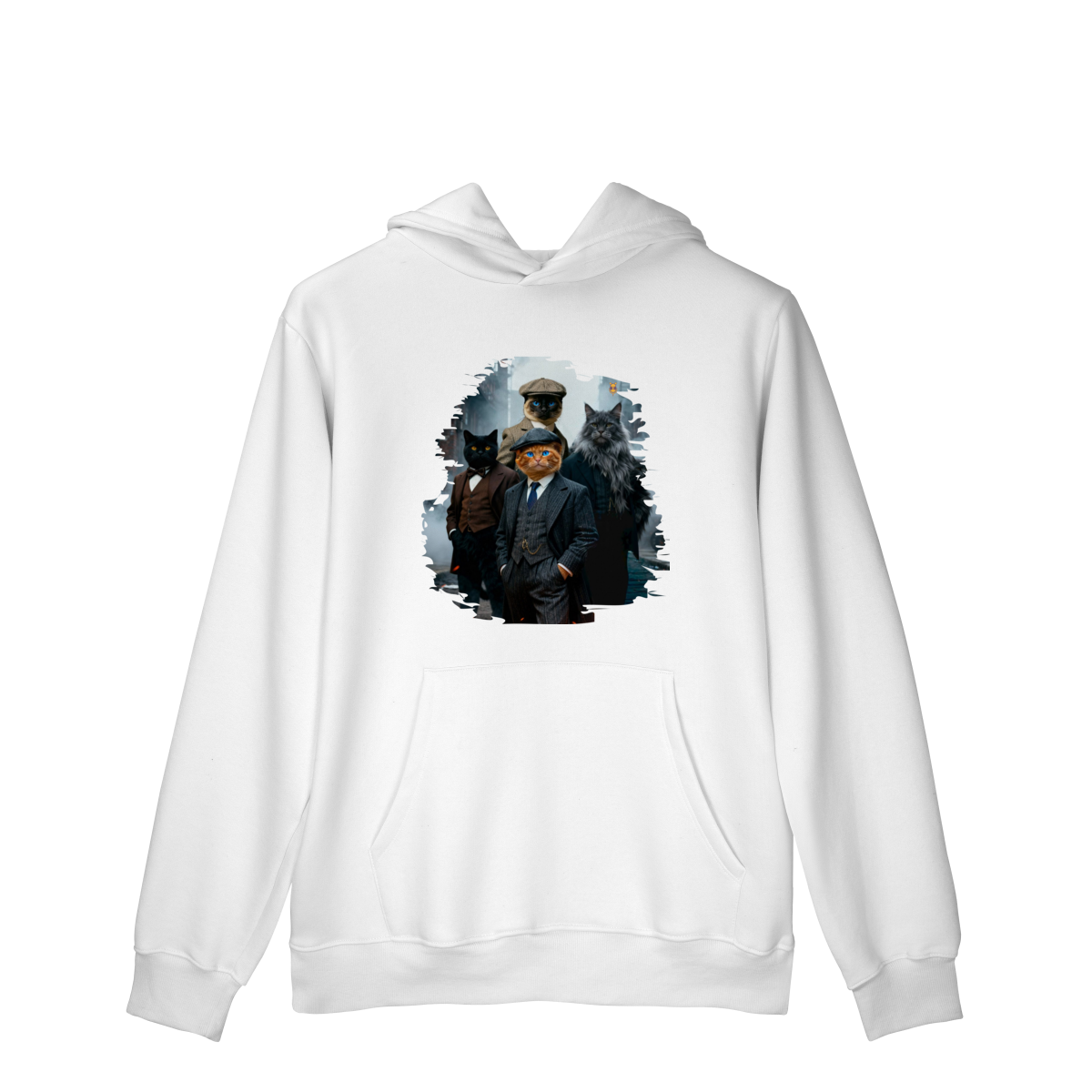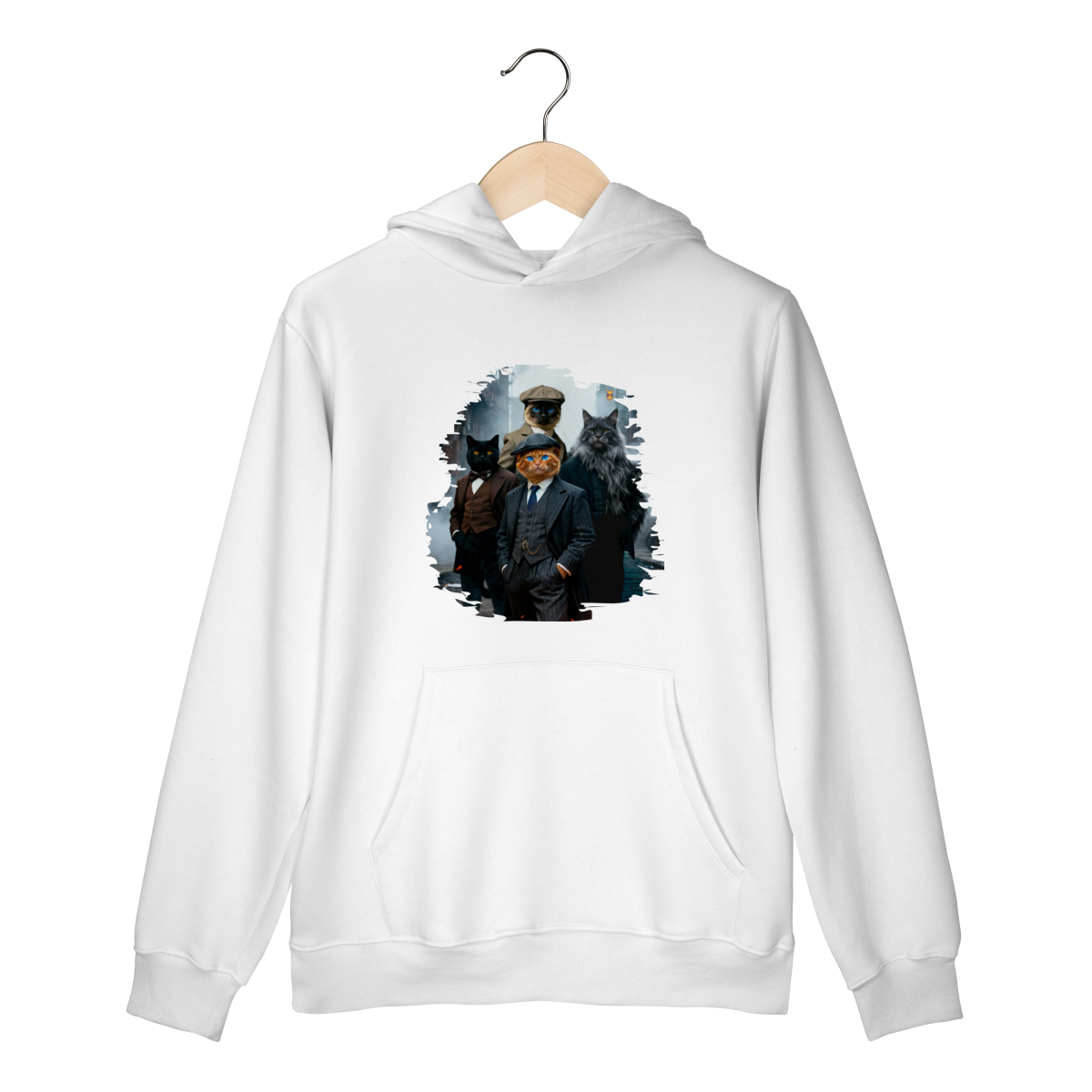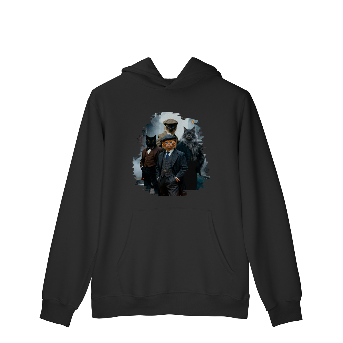 Uma estampa estilosa e cheia de personalidade, apresentando quatro gatos vestidos como verdadeiros gângsteres da era vintage. Com ternos elegantes, boinas clássicas e um ar imponente de liderança, essa gangue felina parece ter saído diretamente de uma série clássica noir.
