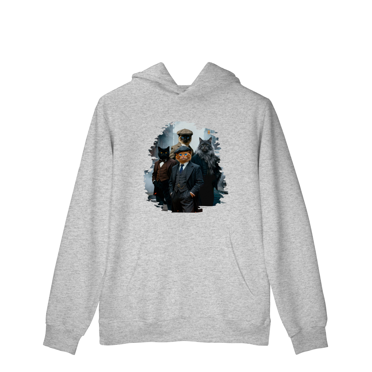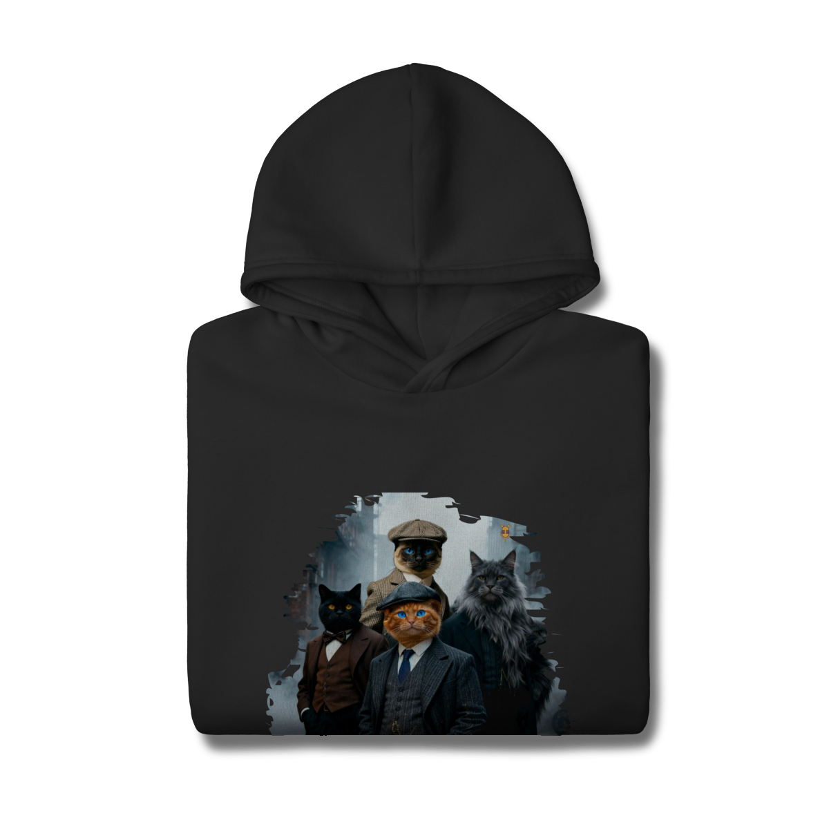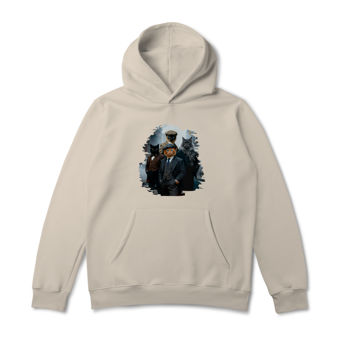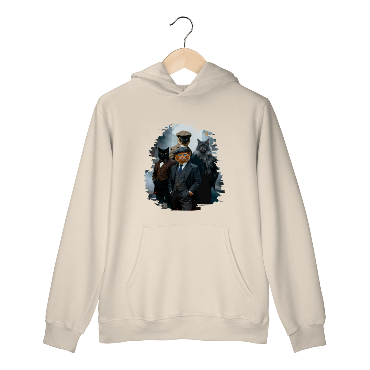 Uma estampa estilosa e cheia de personalidade, apresentando quatro gatos vestidos como verdadeiros gângsteres da era vintage. Com ternos elegantes, boinas clássicas e um ar imponente de liderança, essa gangue felina parece ter saído diretamente de uma série clássica noir.