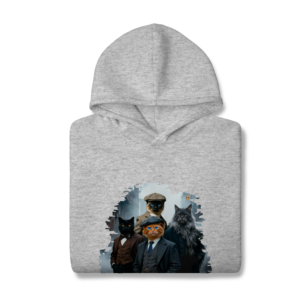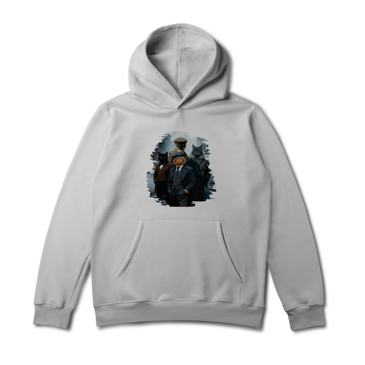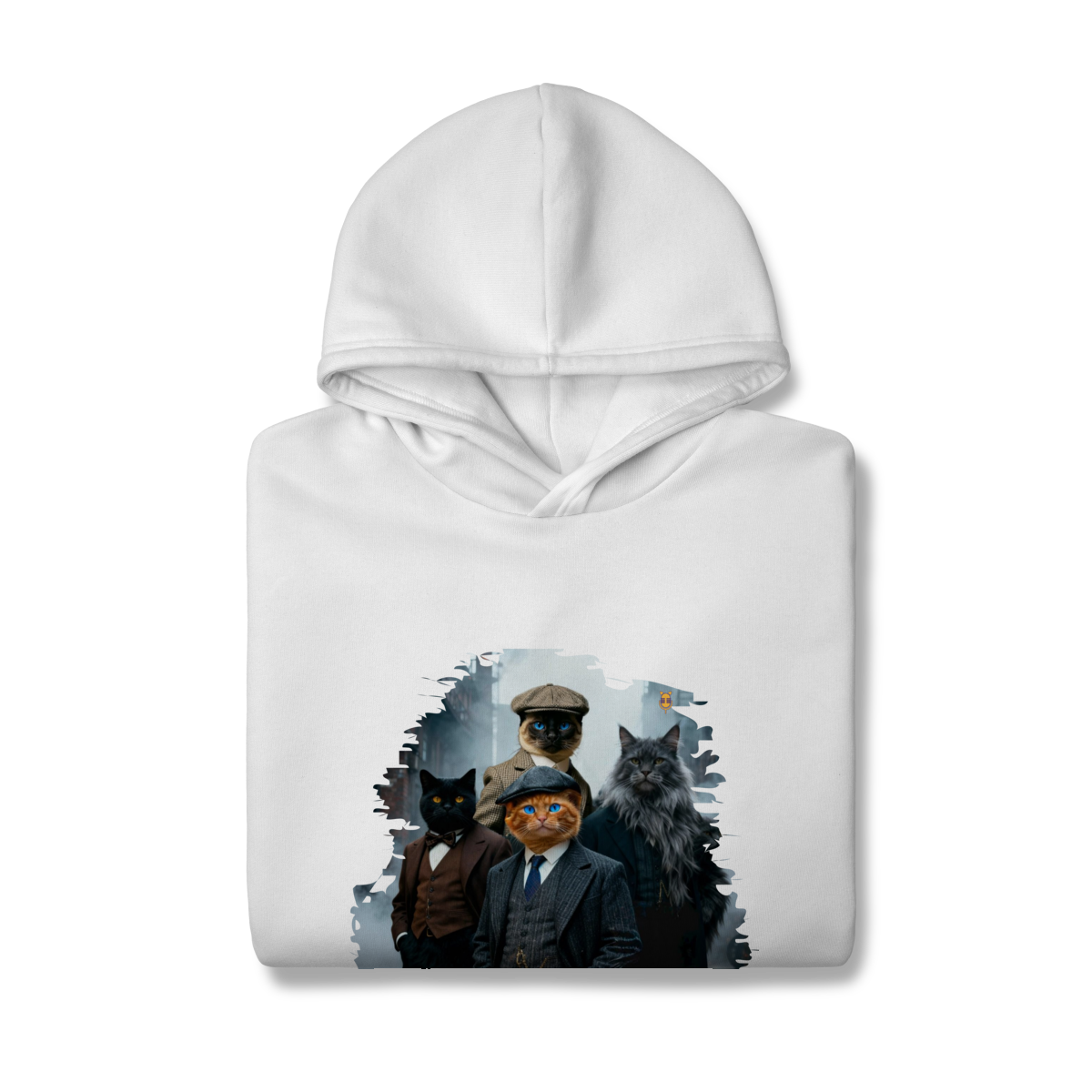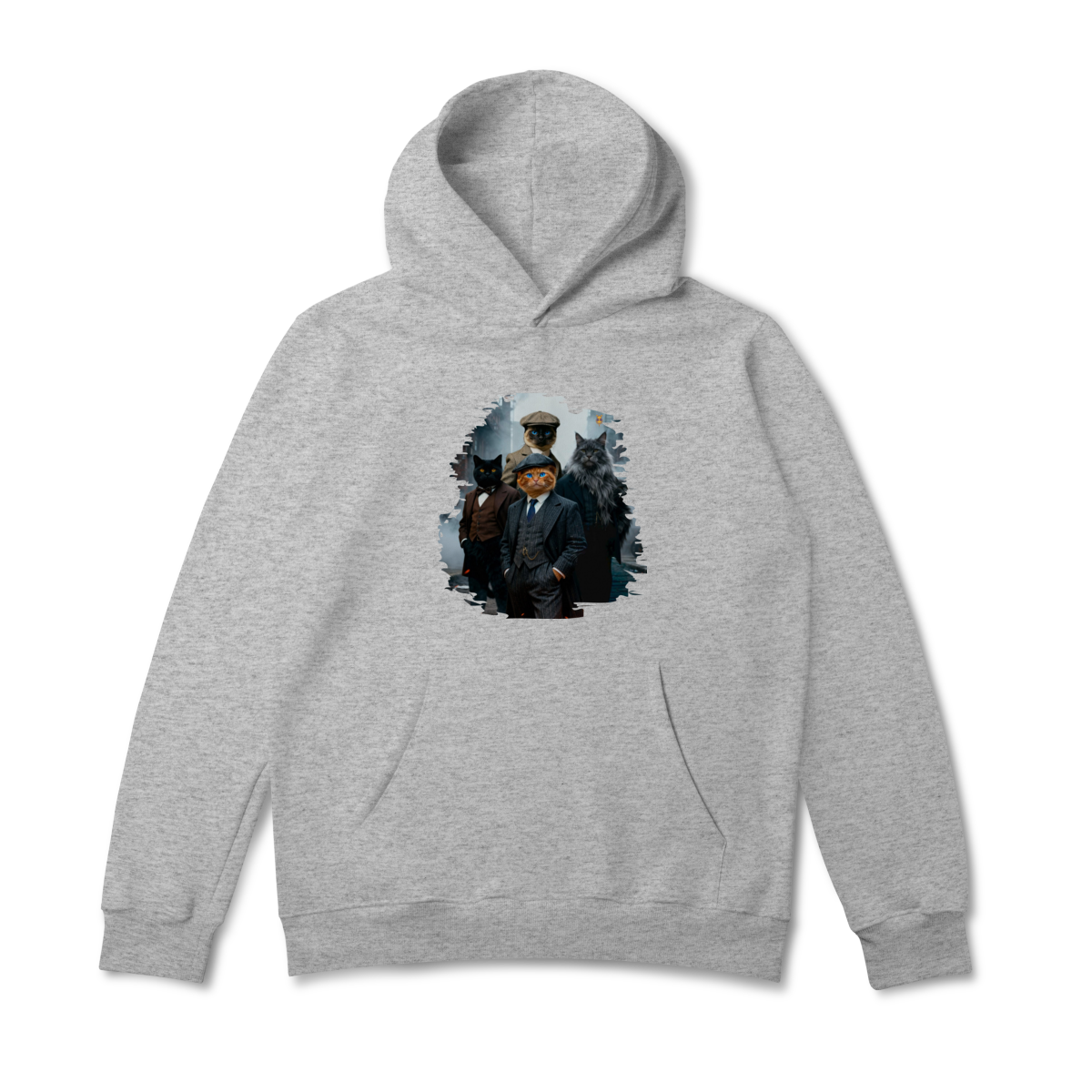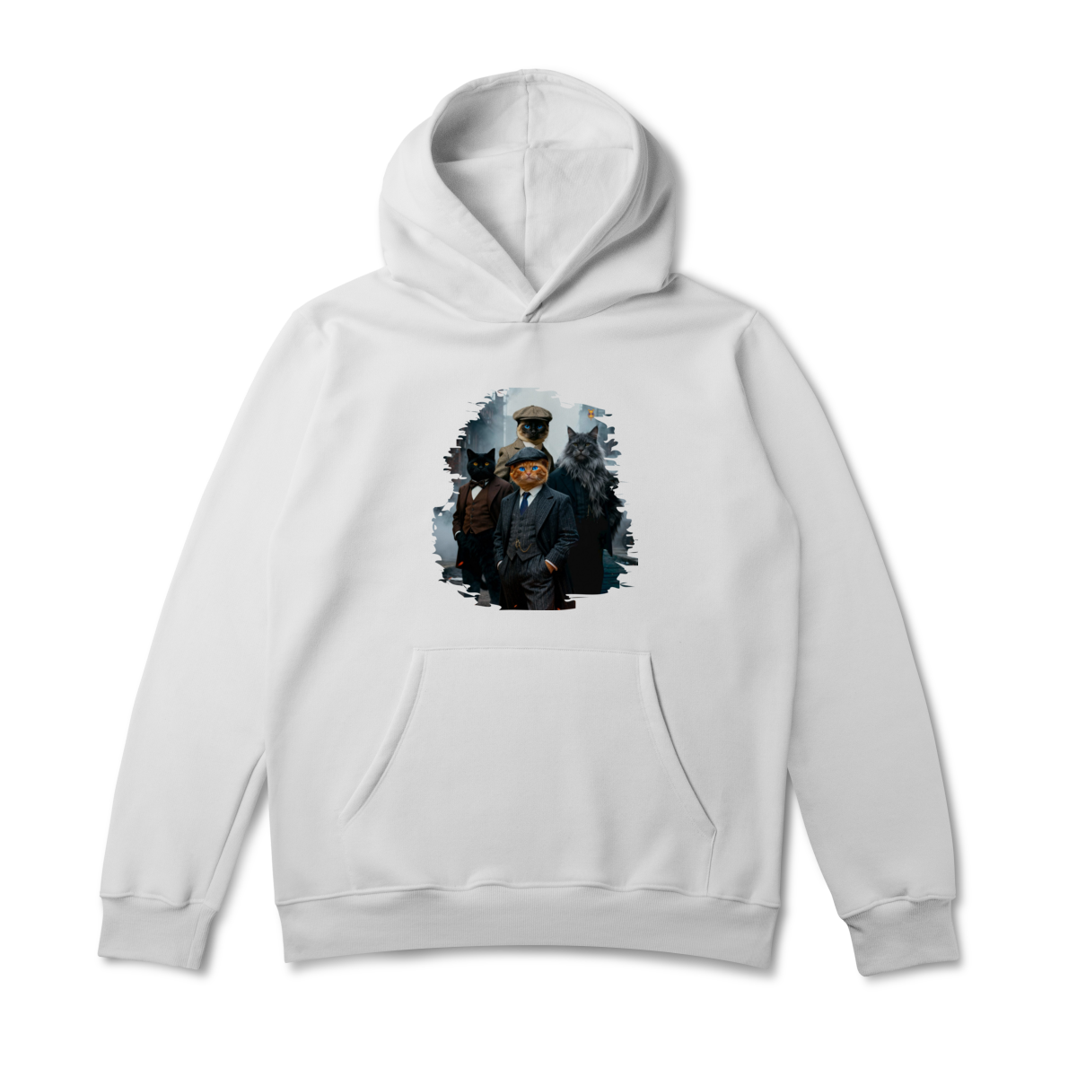 Uma estampa estilosa e cheia de personalidade, apresentando quatro gatos vestidos como verdadeiros gângsteres da era vintage. Com ternos elegantes, boinas clássicas e um ar imponente de liderança, essa gangue felina parece ter saído diretamente de uma série clássica noir.