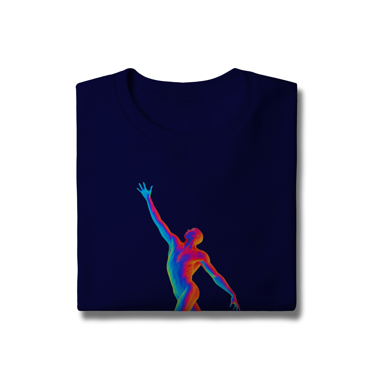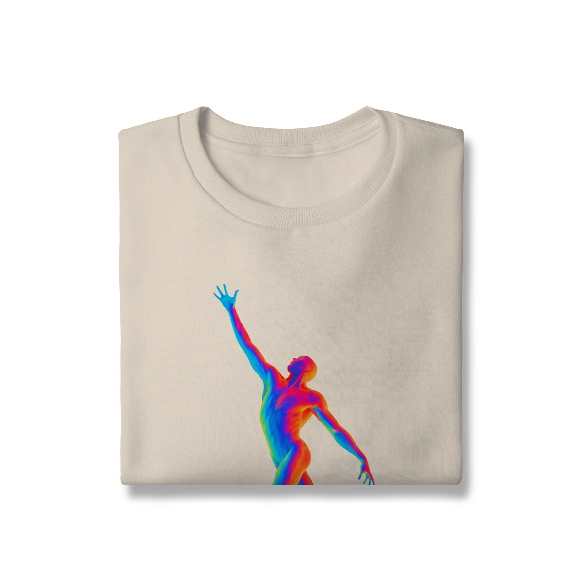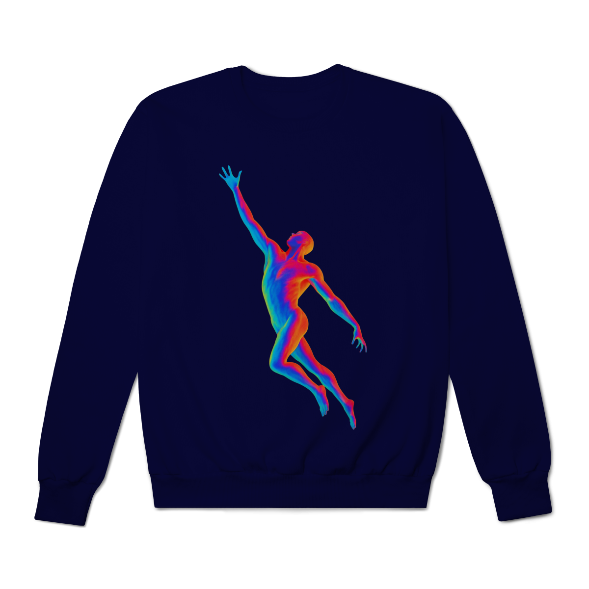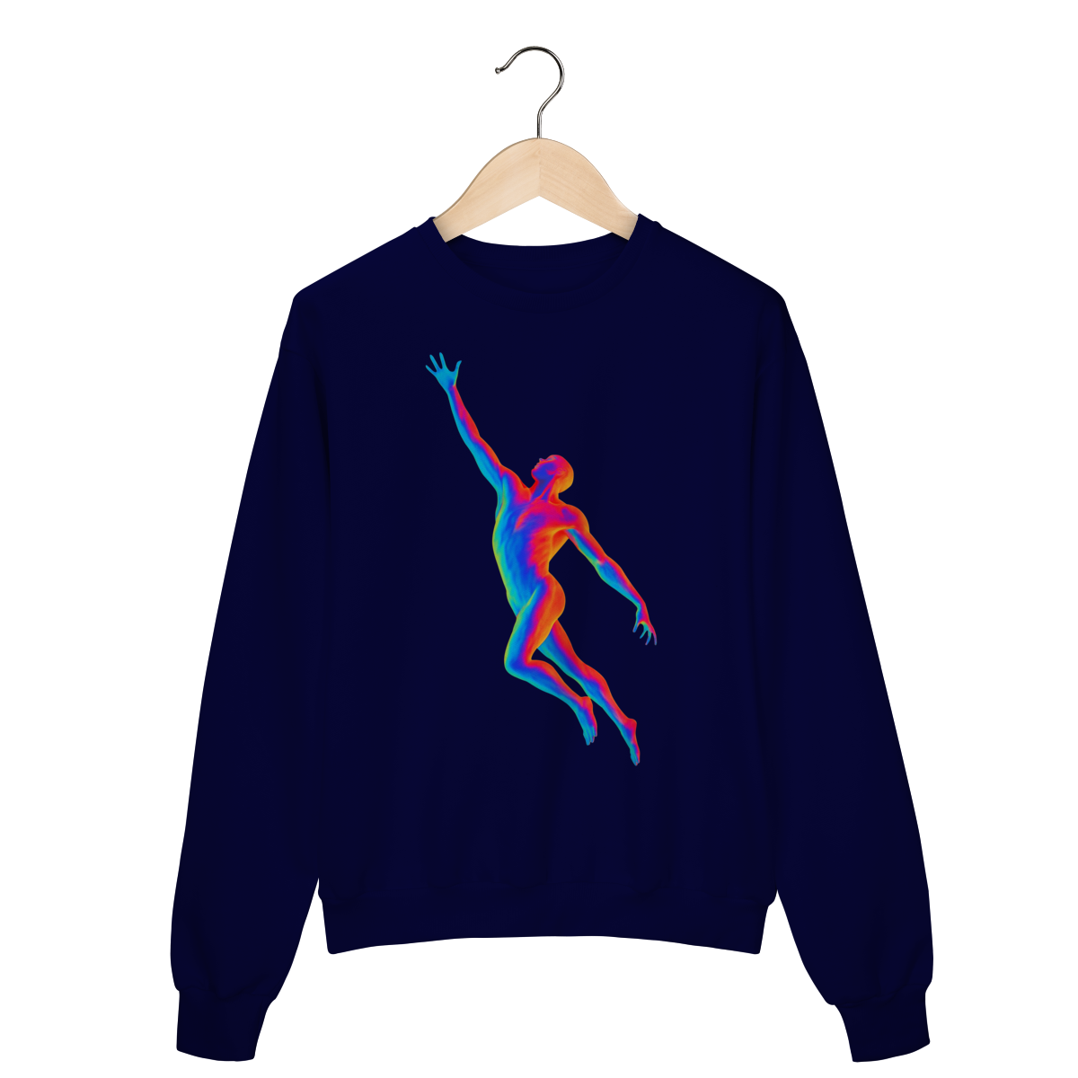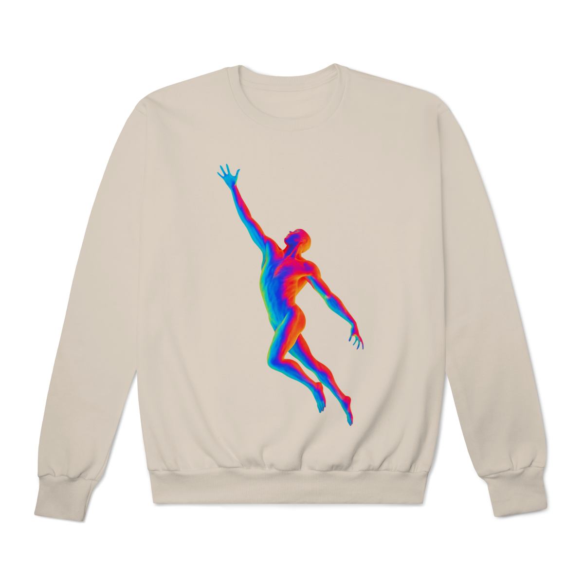 A Ascensão Psicodélica traz uma figura humana em posição de elevação, representada em cores vibrantes que criam um efeito térmico e surreal.