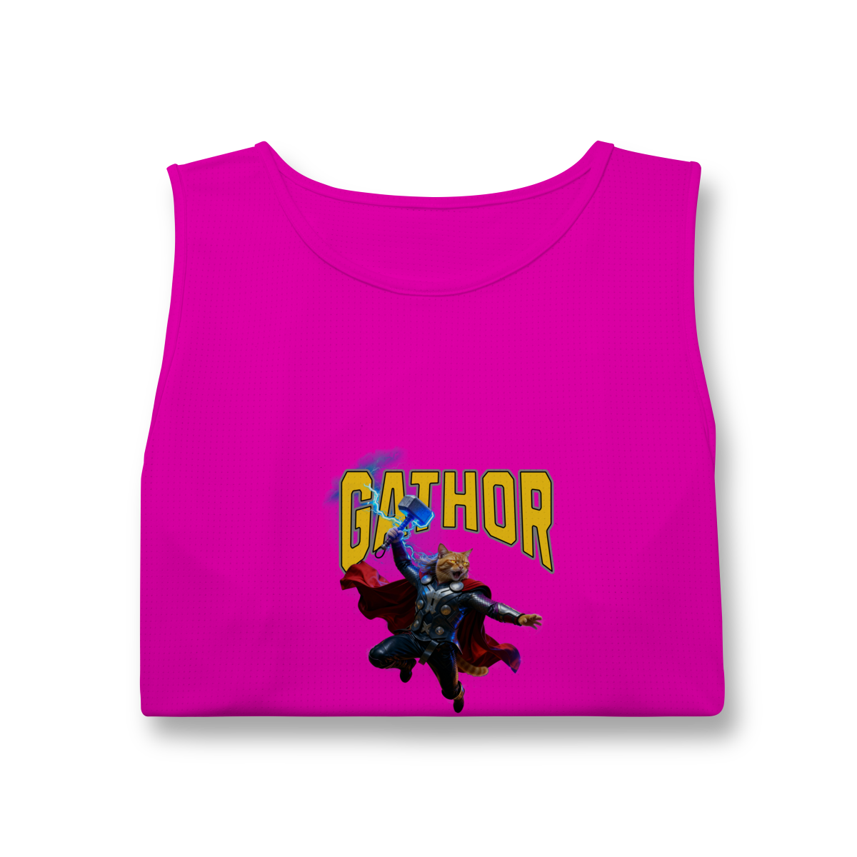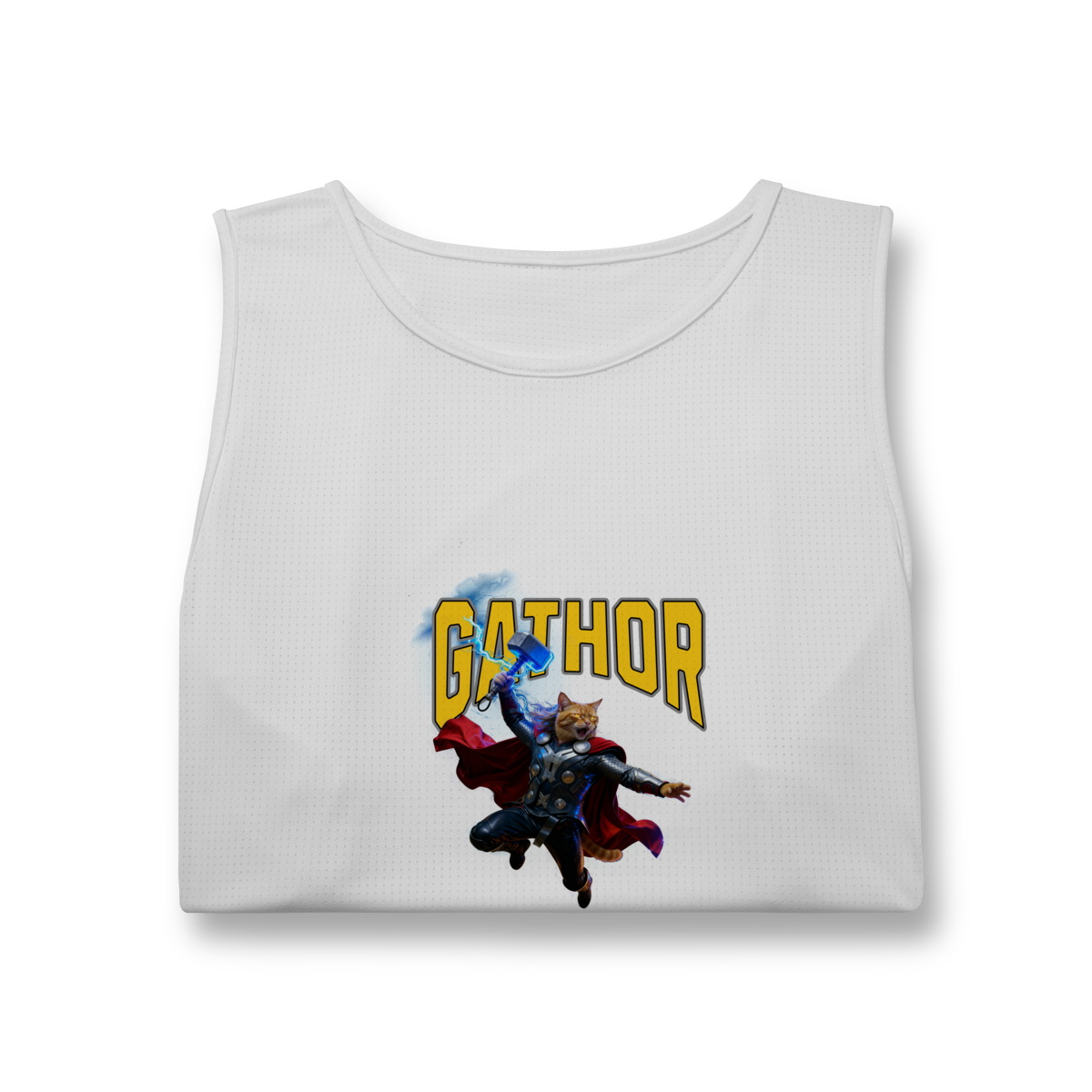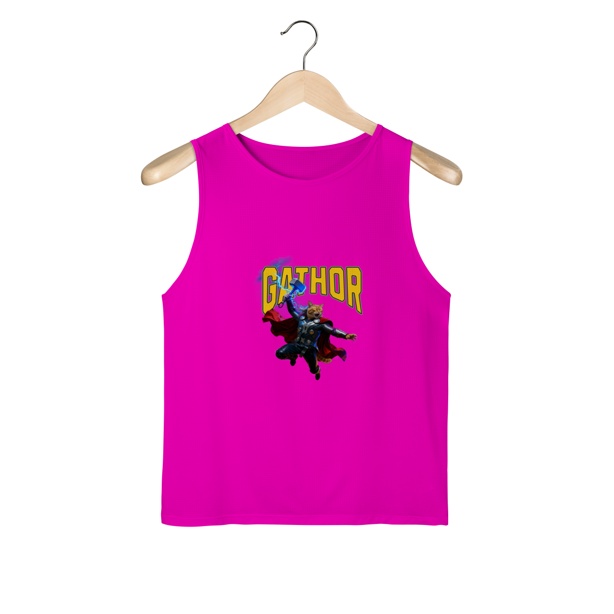 A Regata Gathor traz uma paródia divertida do deus do trovão, agora reimaginado como um gato herói superpoderoso. A estampa é vibrante, cheia de ação e perfeita para quem ama gatos, humor e cultura pop. Confortável e estilosa, é uma ótima opção para usar no dia a dia ou presentear alguém que adora camisetas criativas.