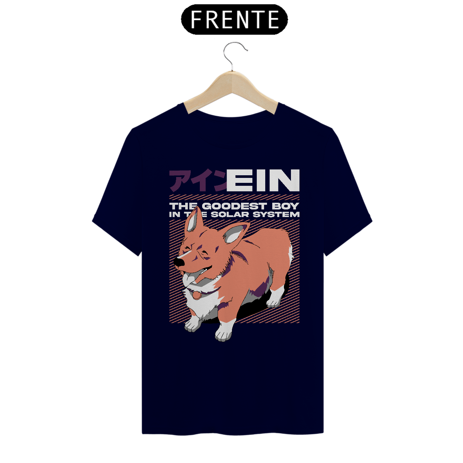 A camiseta Ein: The Goodest Boy in the Solar System é um tributo ao cachorro mais adorável e inteligente de Cowboy Bebop. Com um design inspirado no charme único do corgi mais famoso do universo, essa peça é perfeita para os fãs que amam a combinação de fofura, humor e ficção científica que só Ein pode oferecer.
