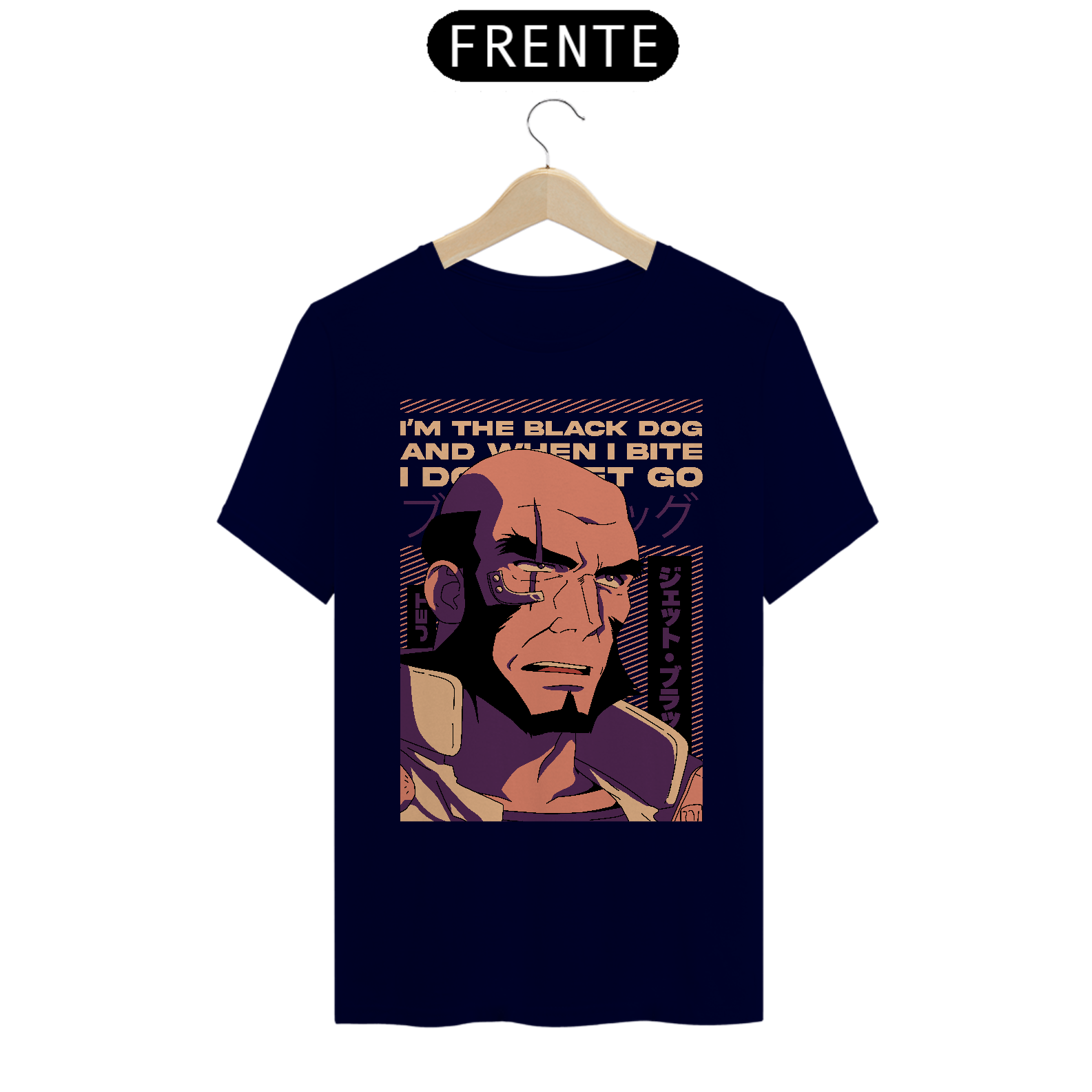 Feita em 100% algodão de alta qualidade, a camiseta oferece o máximo de conforto e resistência, sendo perfeita tanto para o dia a dia quanto para encontros otaku. Se você é fã de Cowboy Bebop e se identifica com a personalidade sólida de Jet Black, essa camiseta é uma escolha imperdível para complementar seu estilo.