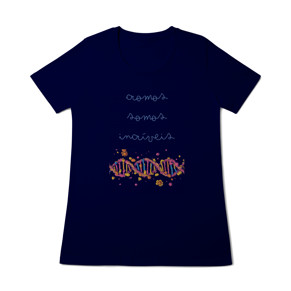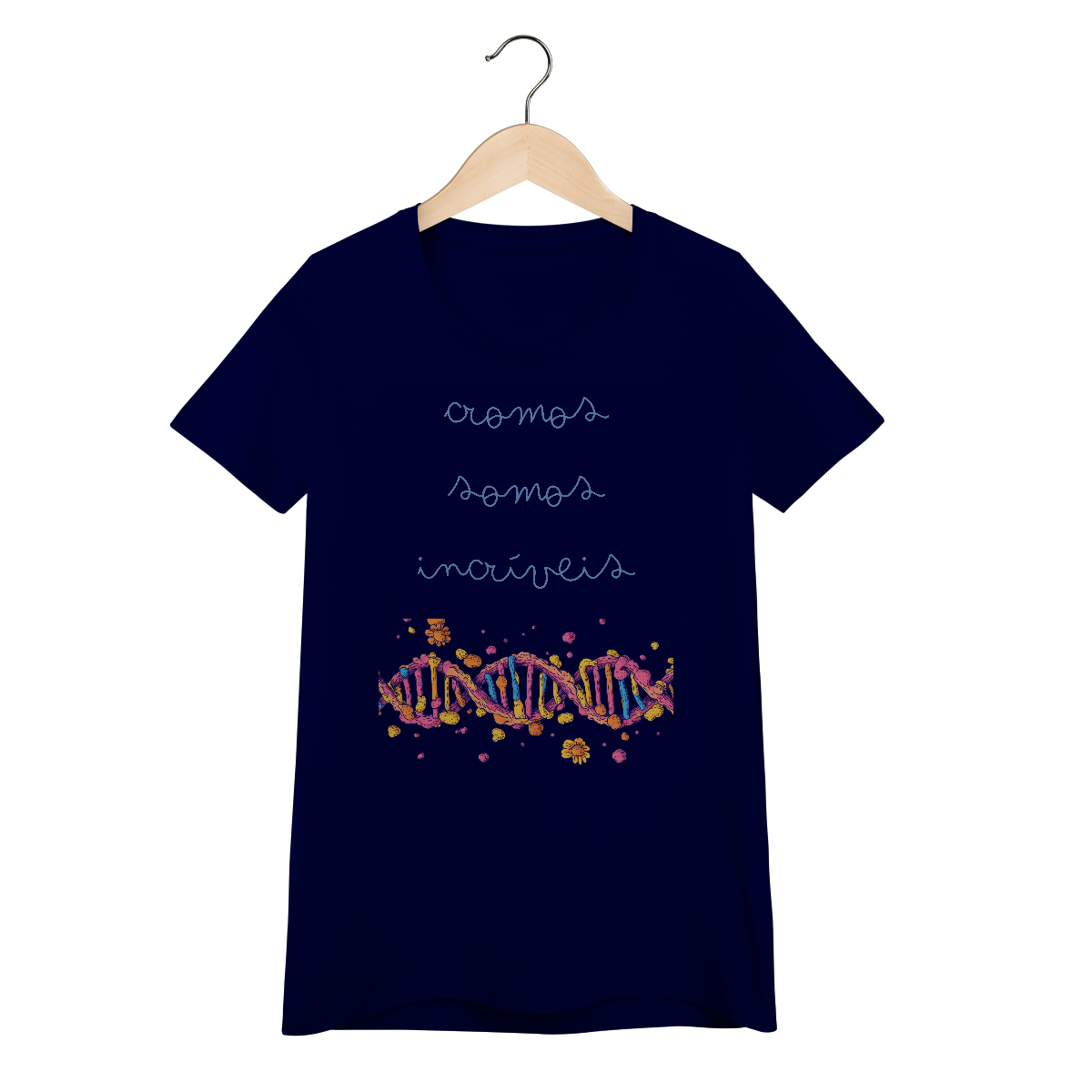 Cores do produto: Como cada tela de computador ou celular tem seu próprio jeito de mostrar cores, então a cor da sua camiseta e da estampa pode ser um pouco diferente do que você viu online.