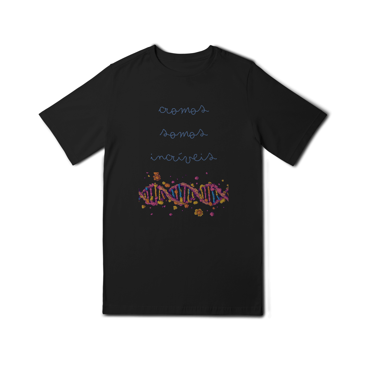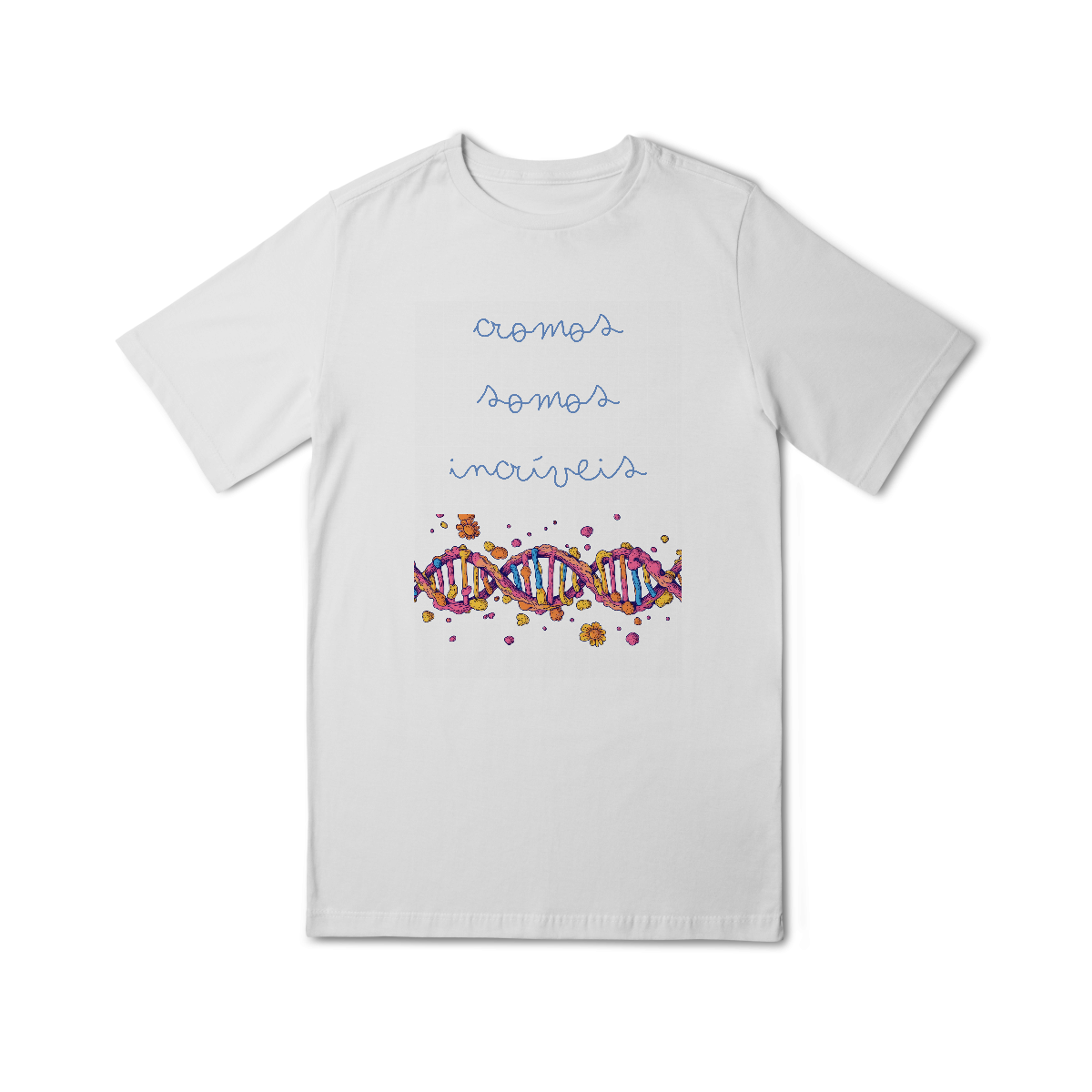 Cores do produto: Como cada tela de computador ou celular tem seu próprio jeito de mostrar cores, então a cor da sua camiseta e da estampa pode ser um pouco diferente do que você viu online.