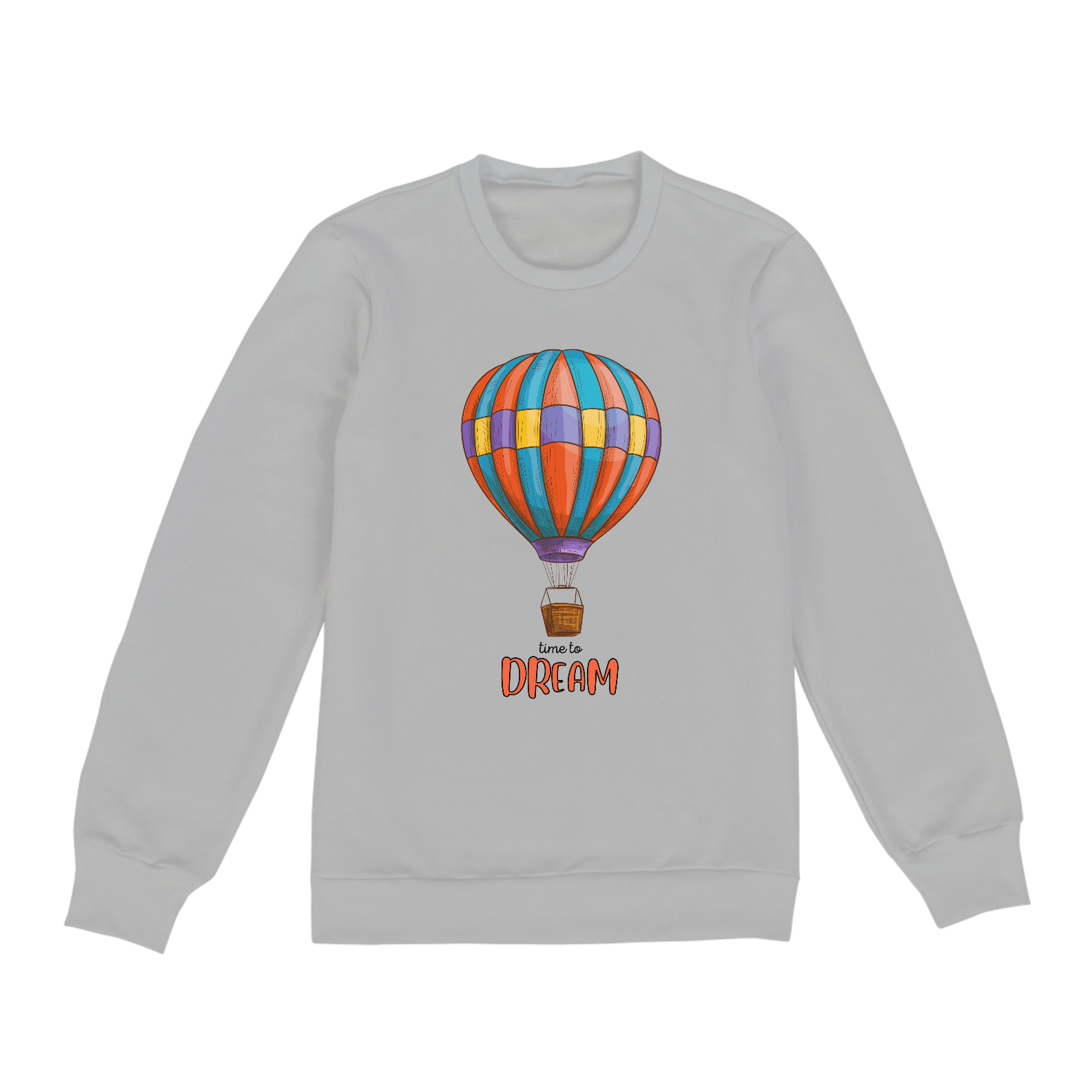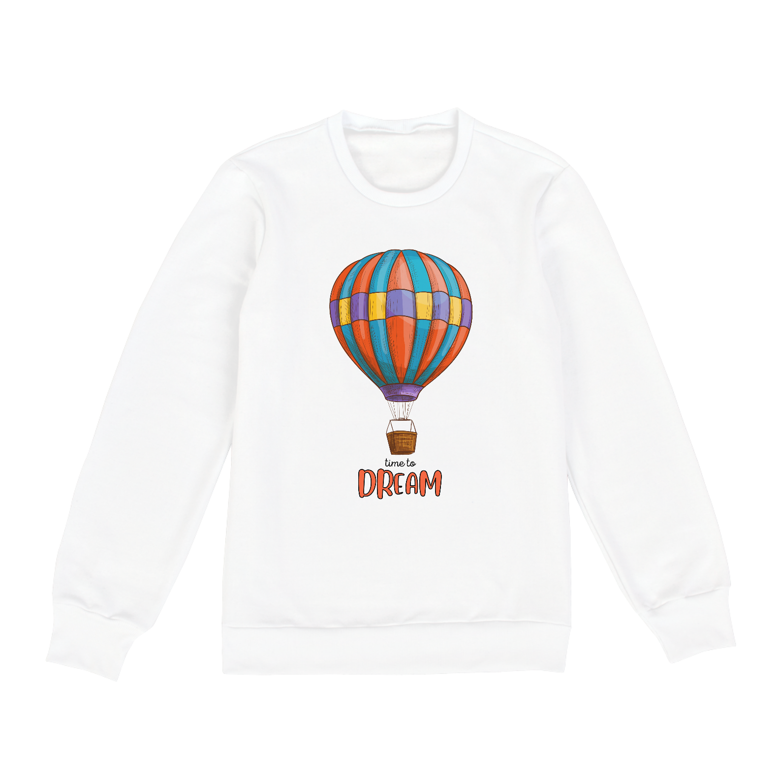 • Design: Desenho colorido de um balão na frente e a frase "Time to Dream".