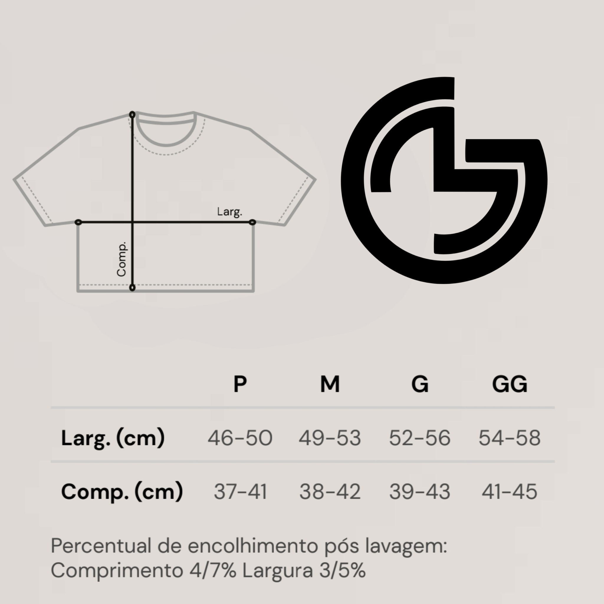 Percentual de encolhimento pós lavagem: Comprimento 4/7% Largura 3/5%.